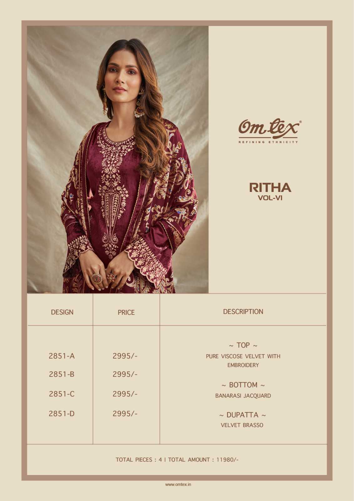 omtex present ritha vol 6 embroidery work winter wear designer dress material