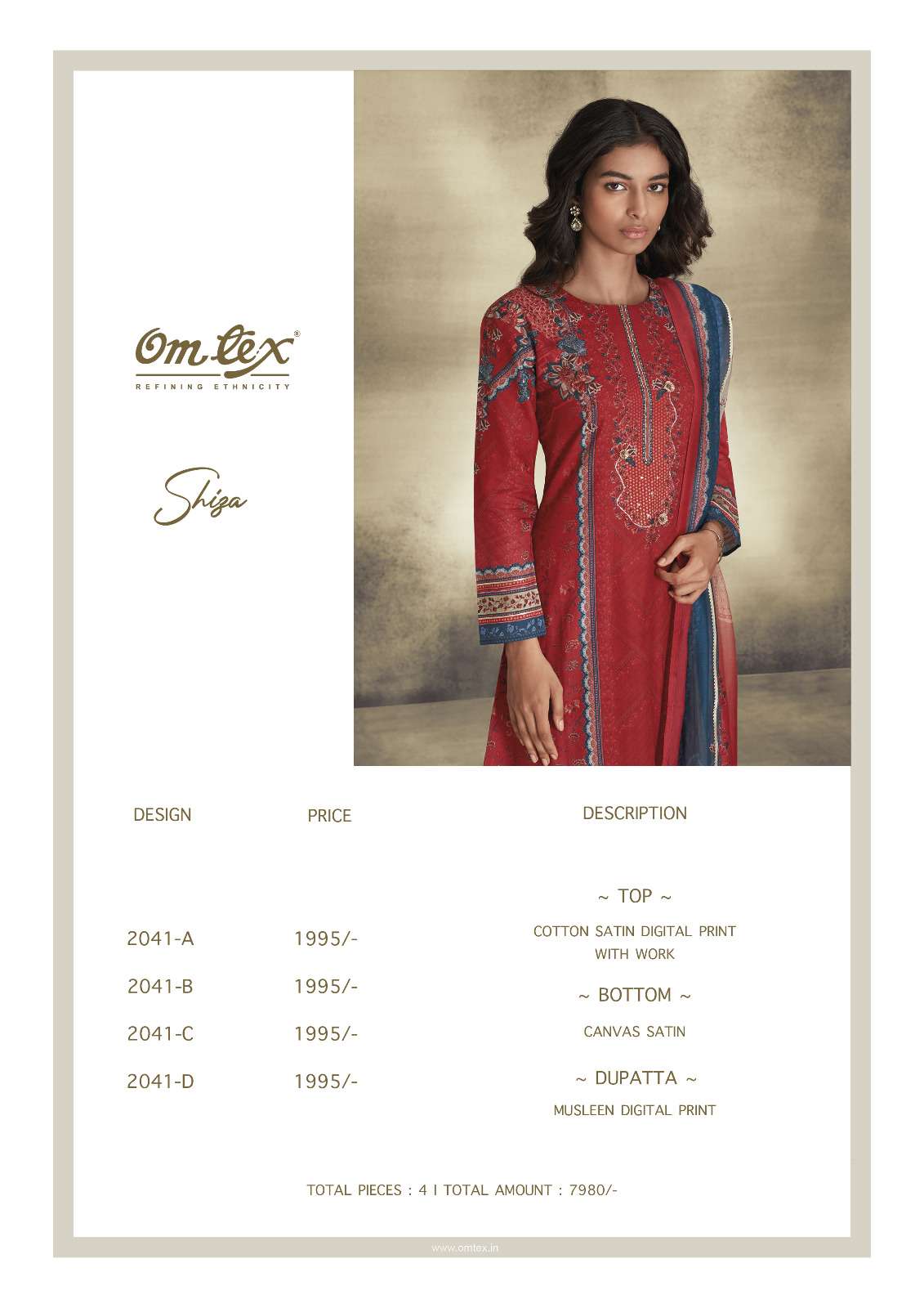 Om Tex Presents Latest Collection Launched on 01-08-2023. Presenting Beautiful collection of 4 PCS with Unstitched .