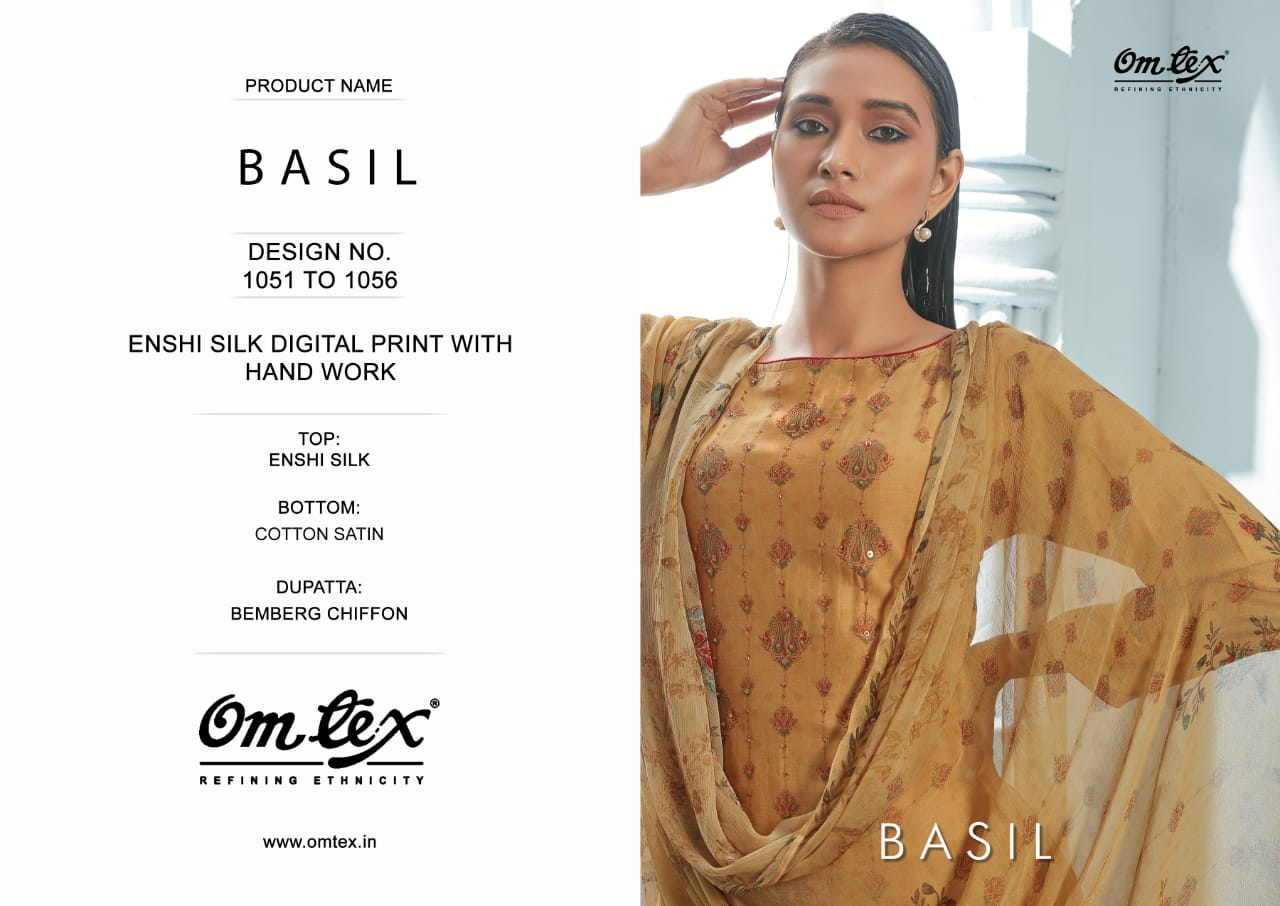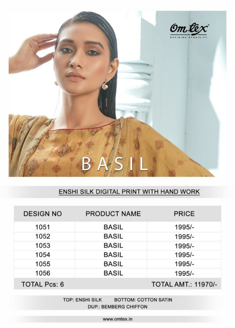 Presents - BASIL TOP-ENSHI SILK DIGITAL PRINT WITH HAND WORK BOTTOM-COTTON SATIN DUPATTA-BEMBERG CHIFFON PRINTED DESIGNS-6 RATE-1995₹ SET TO SET 5%GST EXTRA DELIVERY 2/3 DAYS |