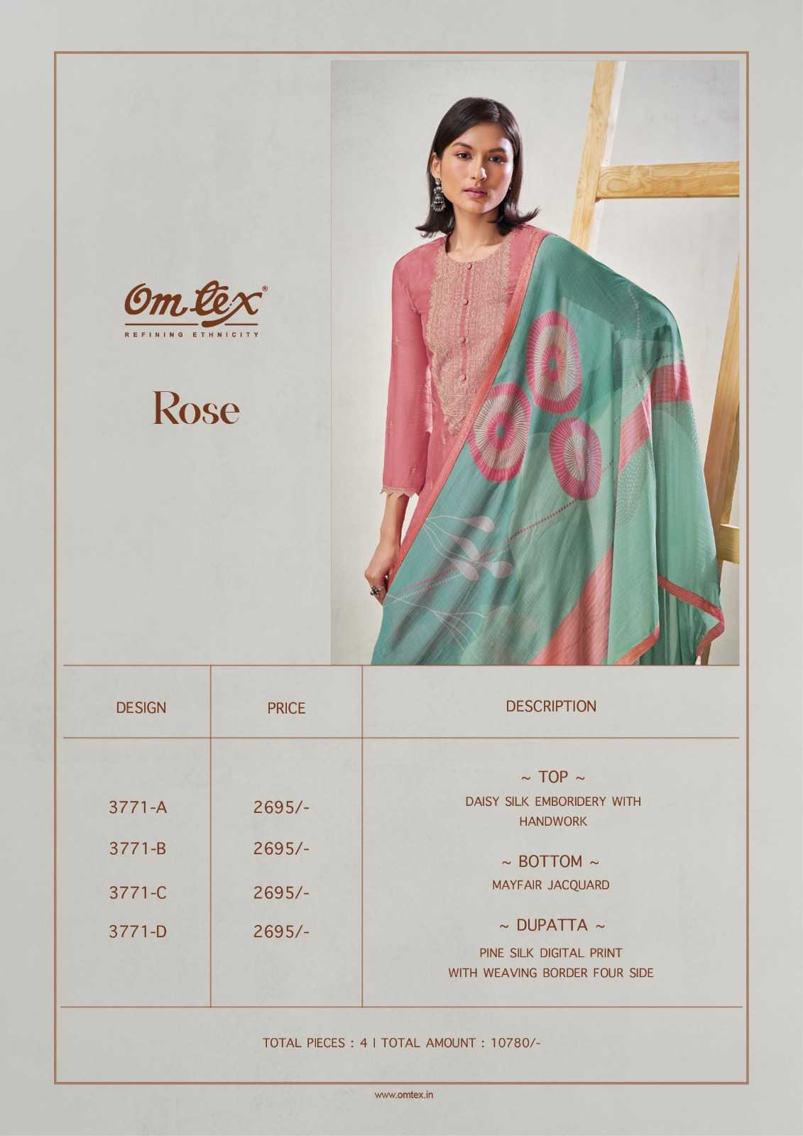 omtex rose beautiful handwork dress material