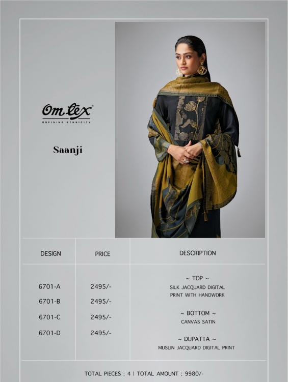 Om Tex Presents Latest Collection Launched on 06-02-2025. Presenting Beautiful collection of 4 PCS with Unstitched .