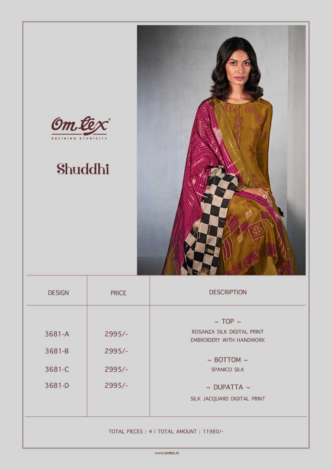 Om Tex Presents Latest Collection Launched on 05-03-2024. Presenting Beautiful collection of 4 PCS with Unstitched .
