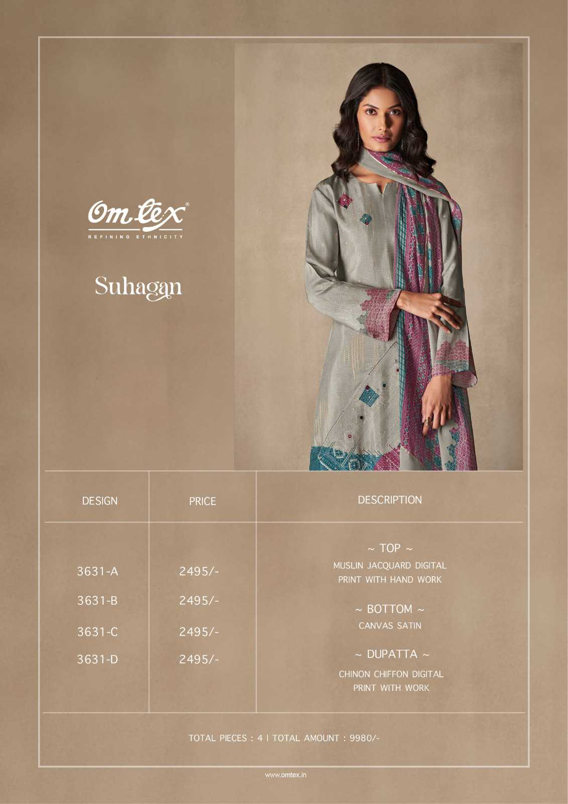 omtex suhagan fancy muslin jacquard digital print handwork unstitch salwar kameez