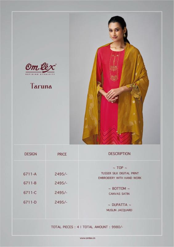 omtex taruna tusser silk digital print embroidery work salwar suit