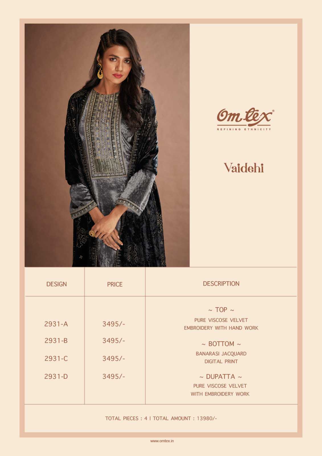 Om Tex Presents Latest Collection Launched on 15-12-2023. Presenting Beautiful collection of 4 PCS with Unstitched .