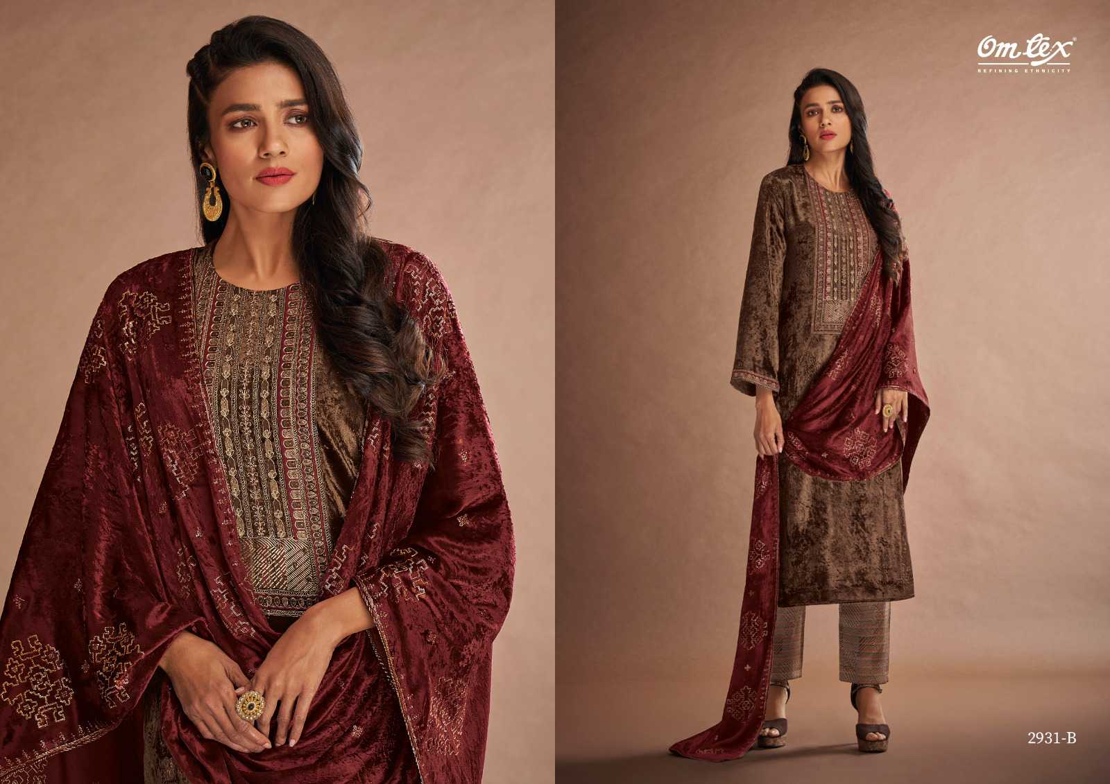 omtex vaidehi designer velvet winter wear embroidery with handwork dress material trader