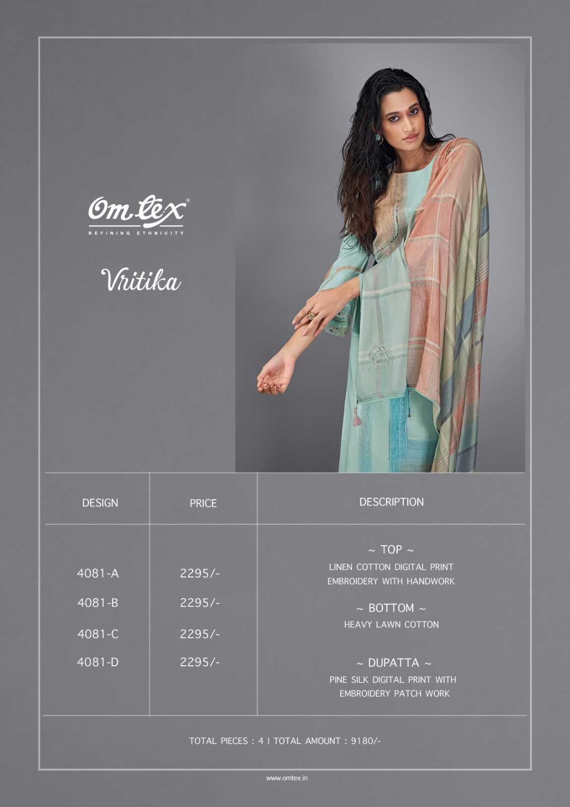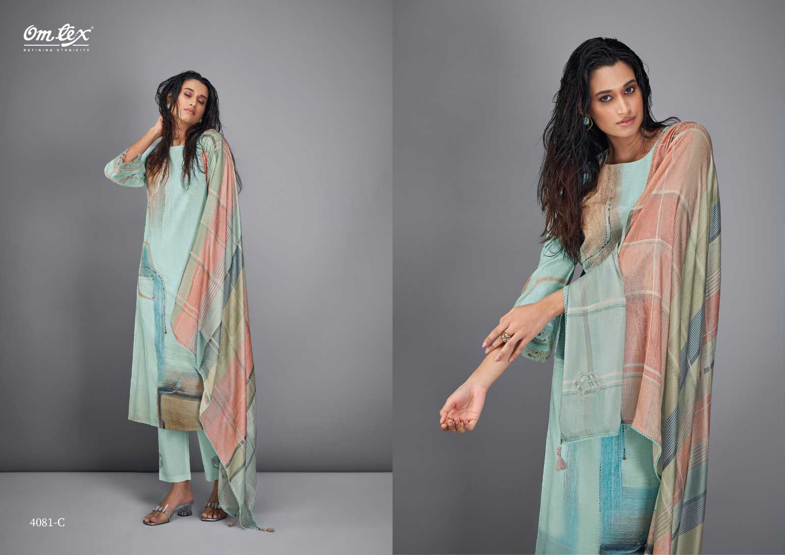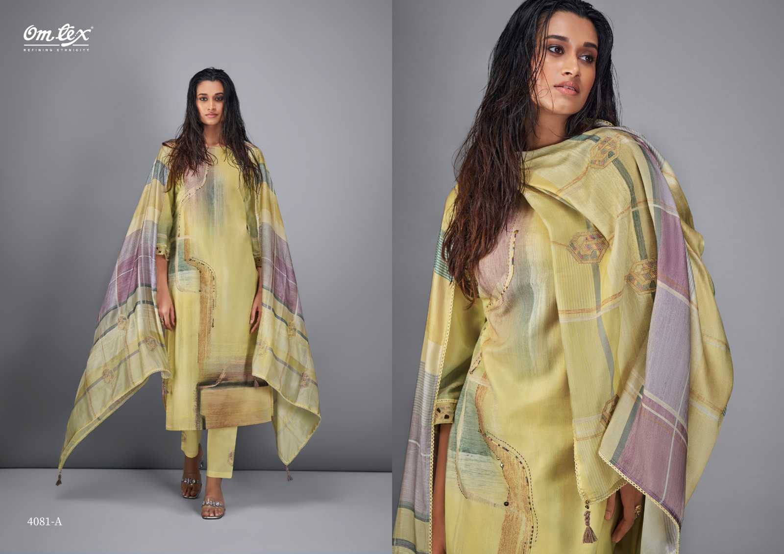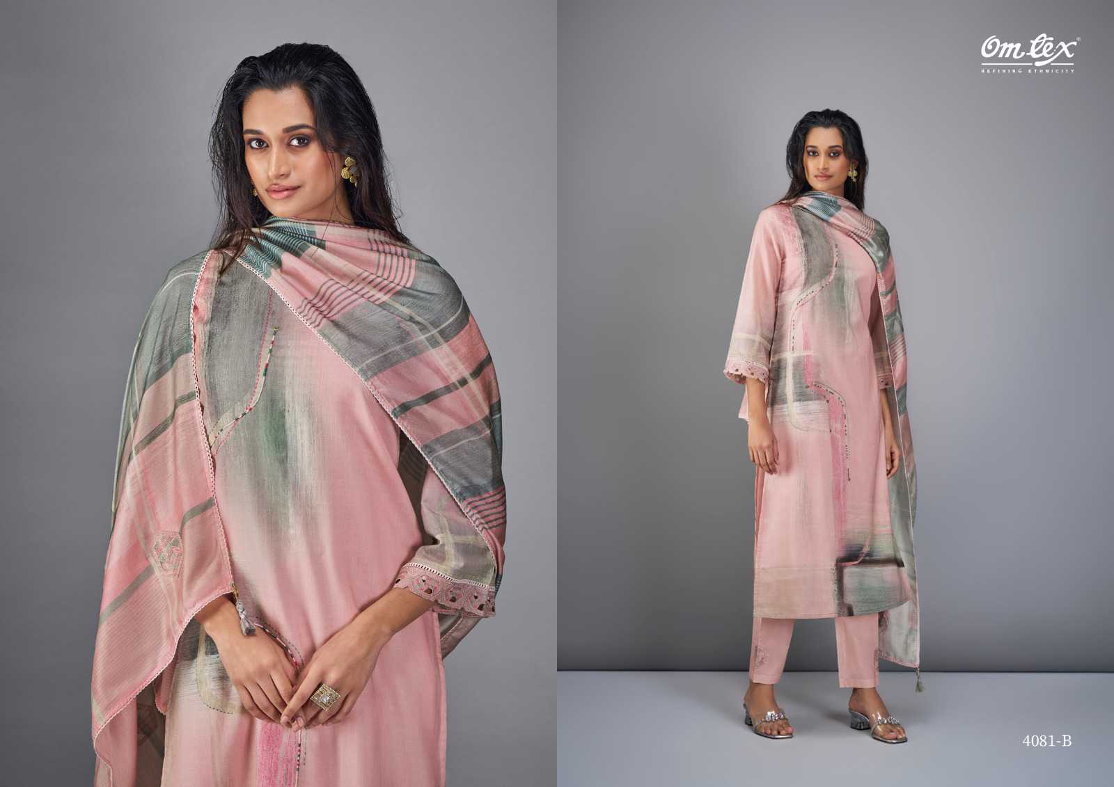 Om Tex Presents Latest Collection Launched on 08-04-2024. Presenting Beautiful collection of 4 PCS with Unstitched .