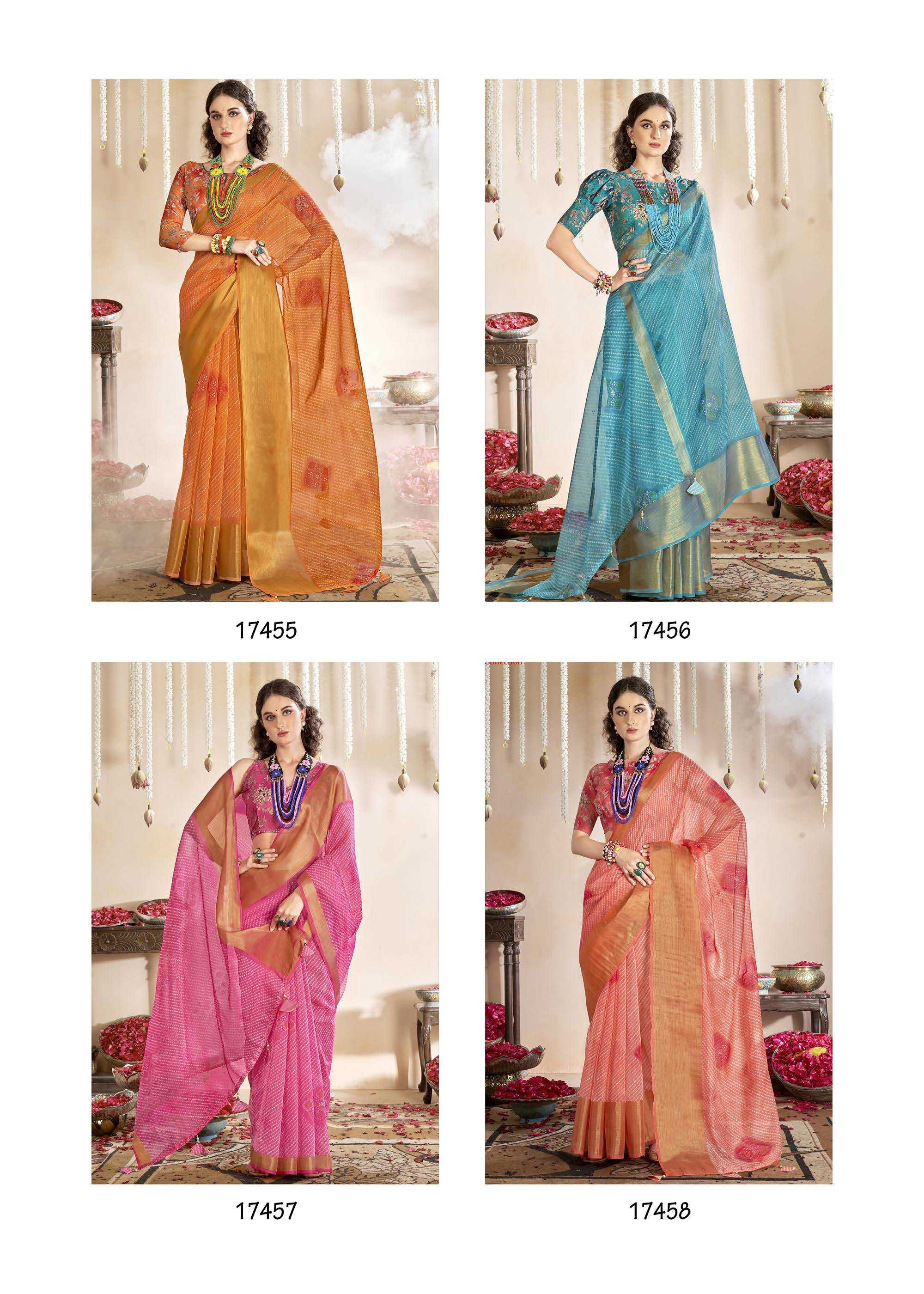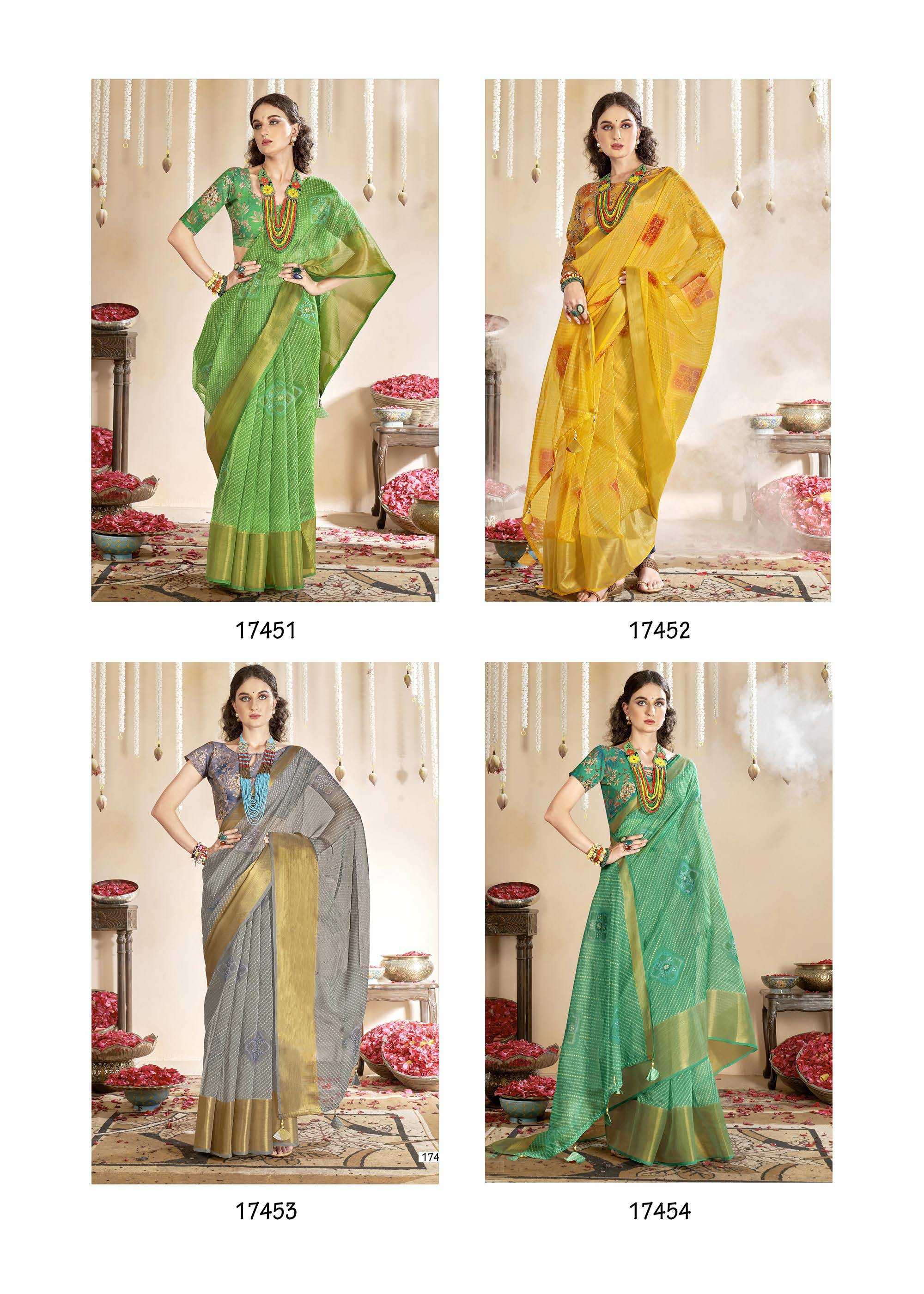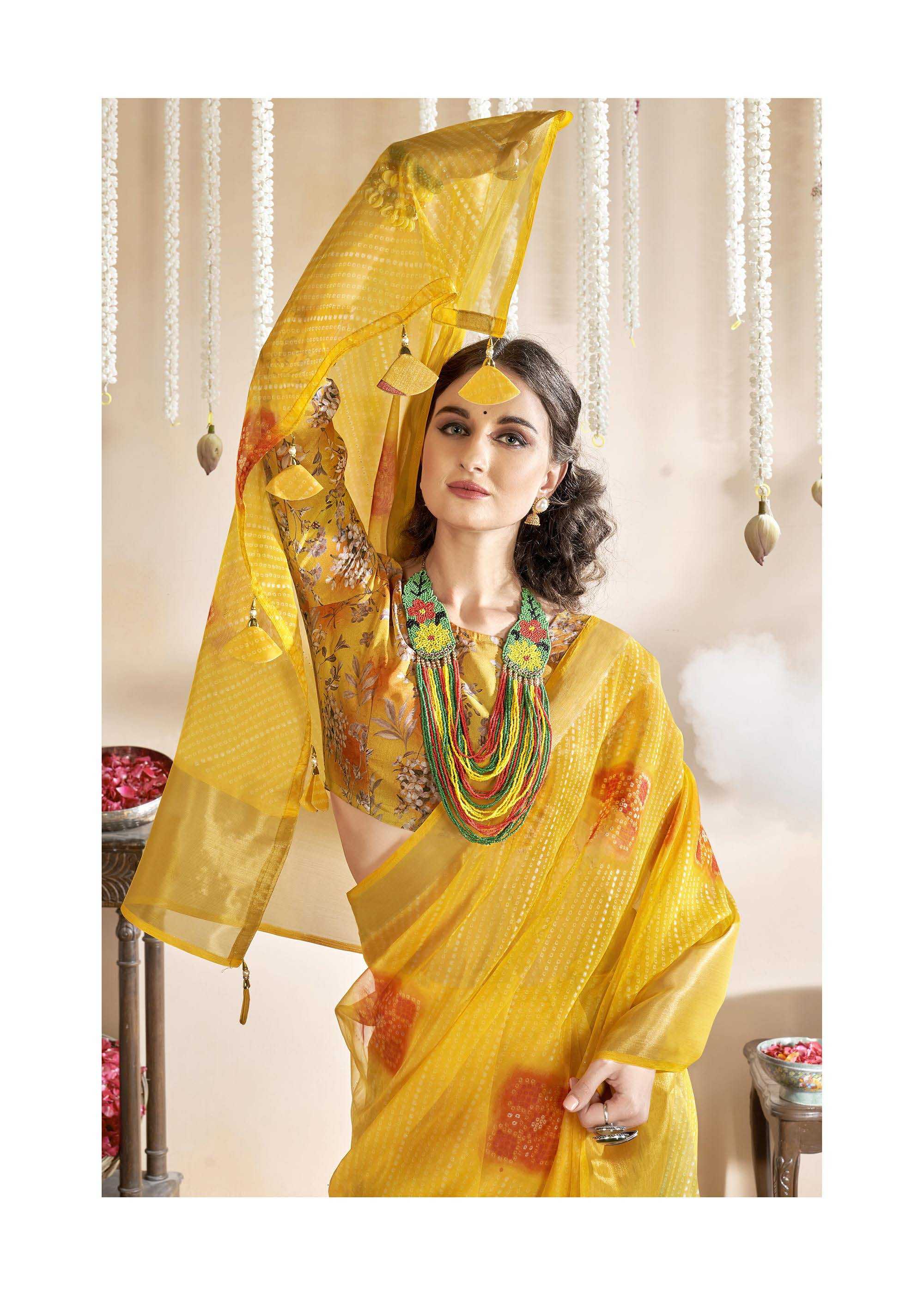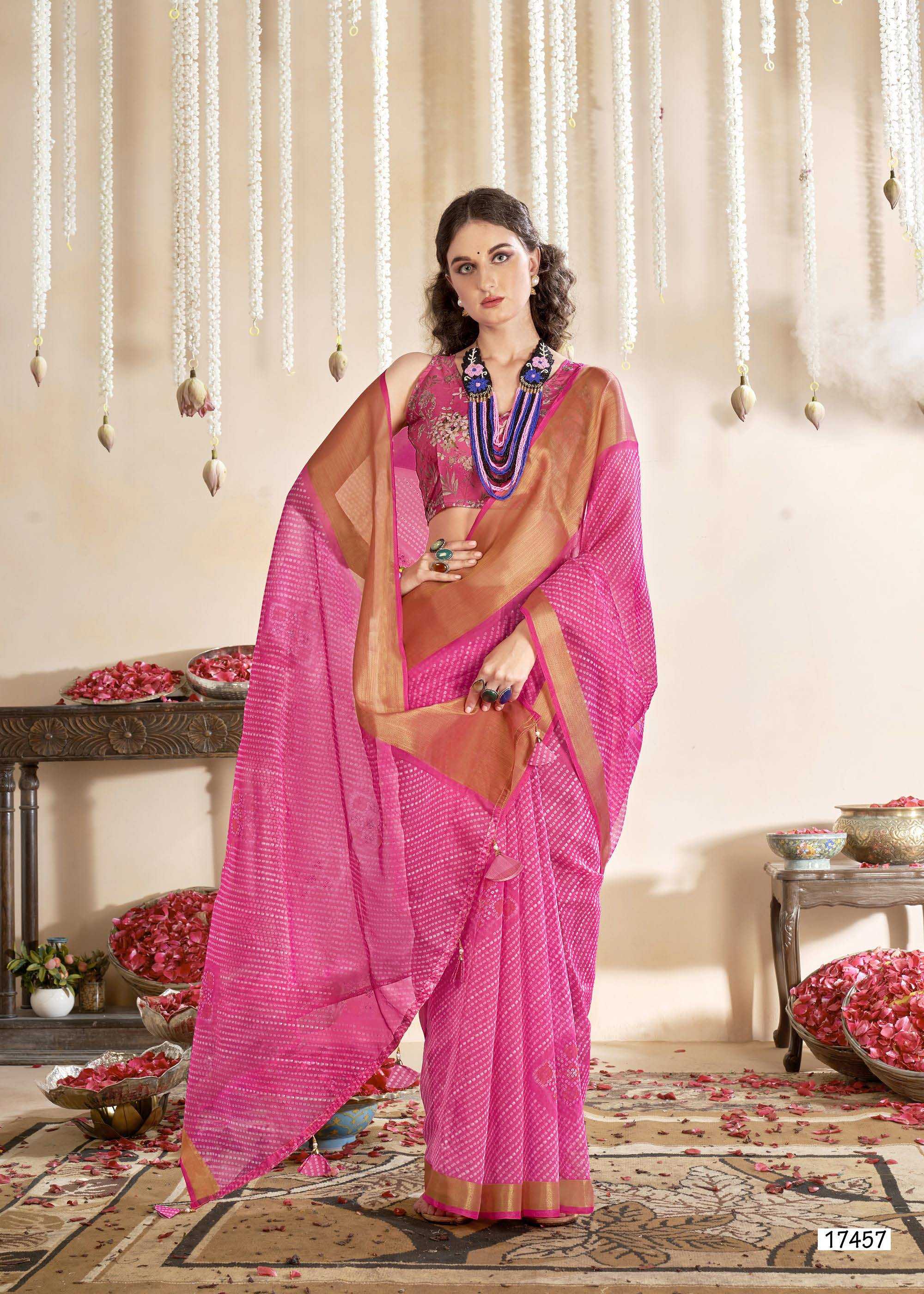 onica by triveni 17451-17458 series new launch fancy organza saree supplier