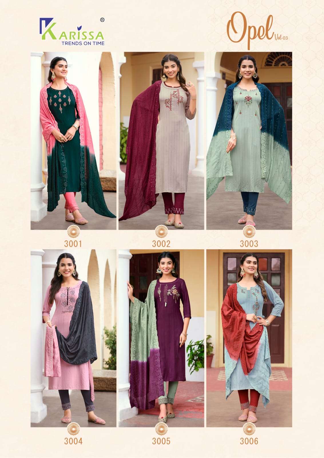 opel vol 3 by karissa fancy classy look readymade 3pcs suits