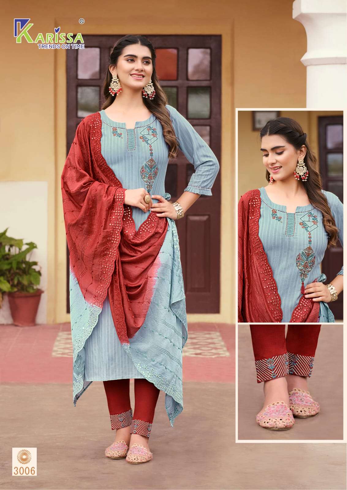 Brand - Karisaa TOP PANT WITH DUPATTA 🔖 WITH LIVA TAG 🔖 Brand : KARISSA Size : S(36) M(38),L(40),XL(42),XXL(44),3XL(46) Rate : Rs. 1045/- +5% GST CLASSY AND FABULOUS BOUTIQUE COLLECTION Book Your Order Now |