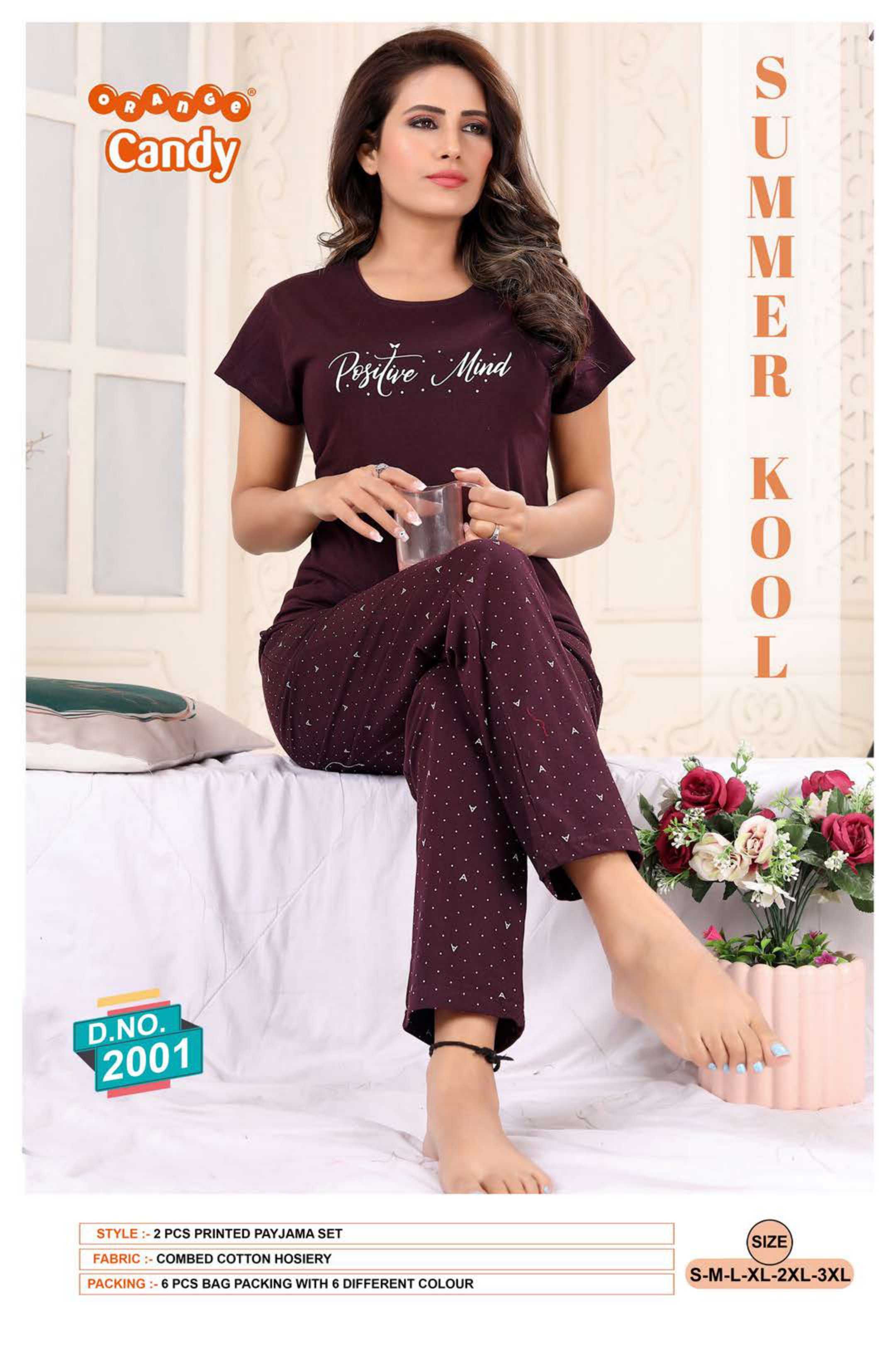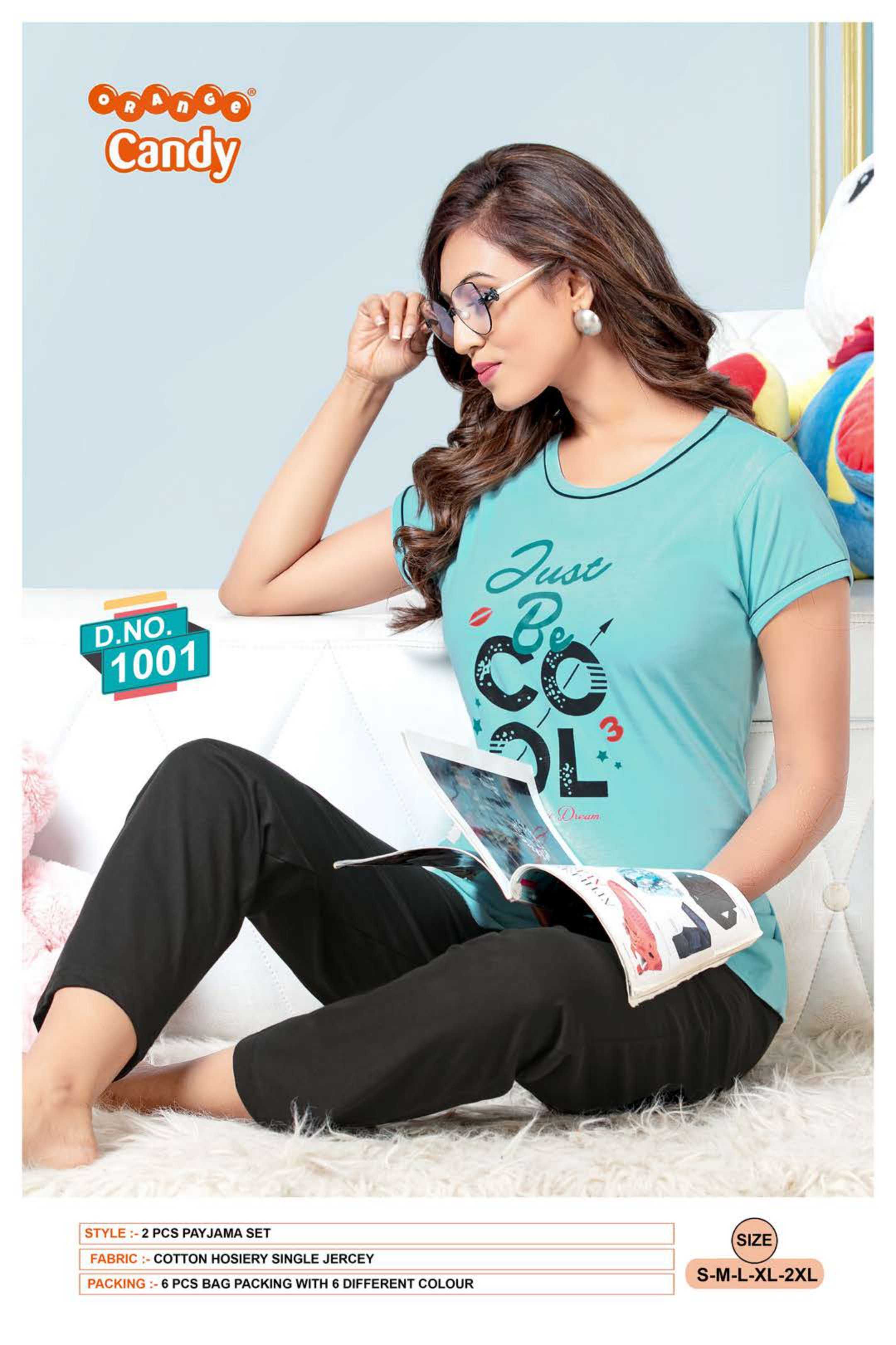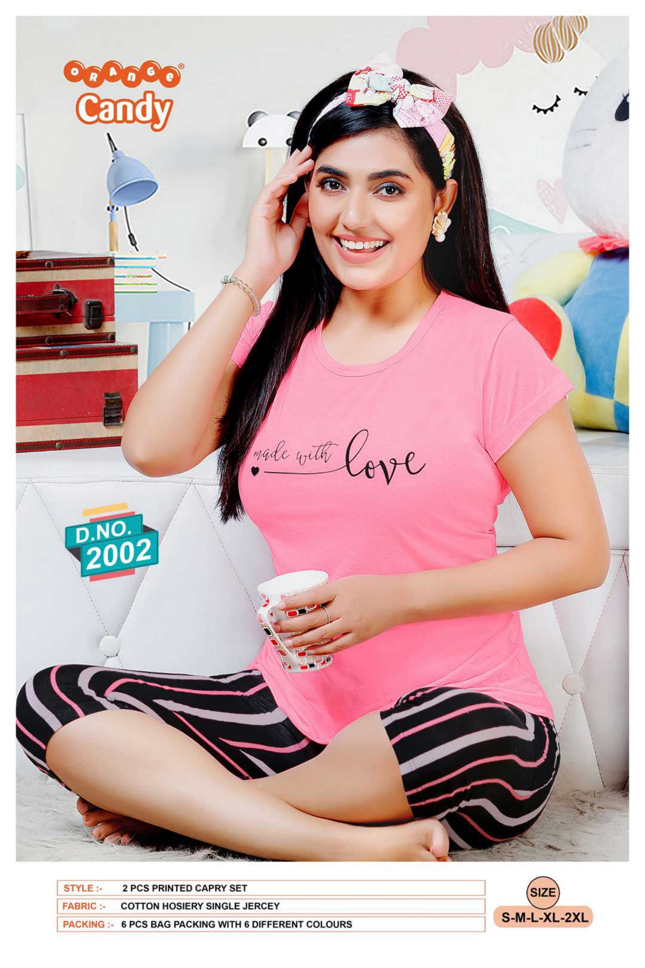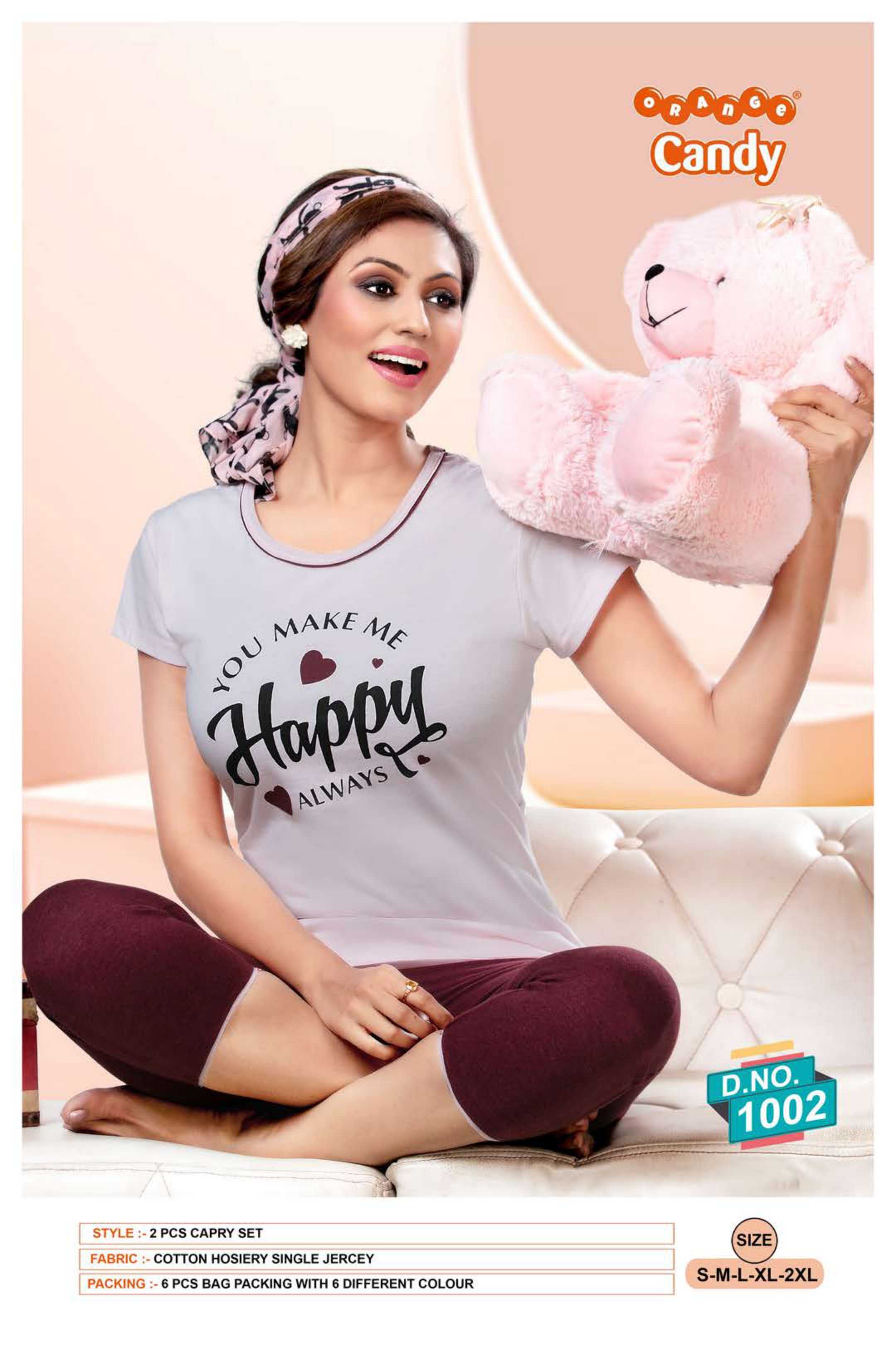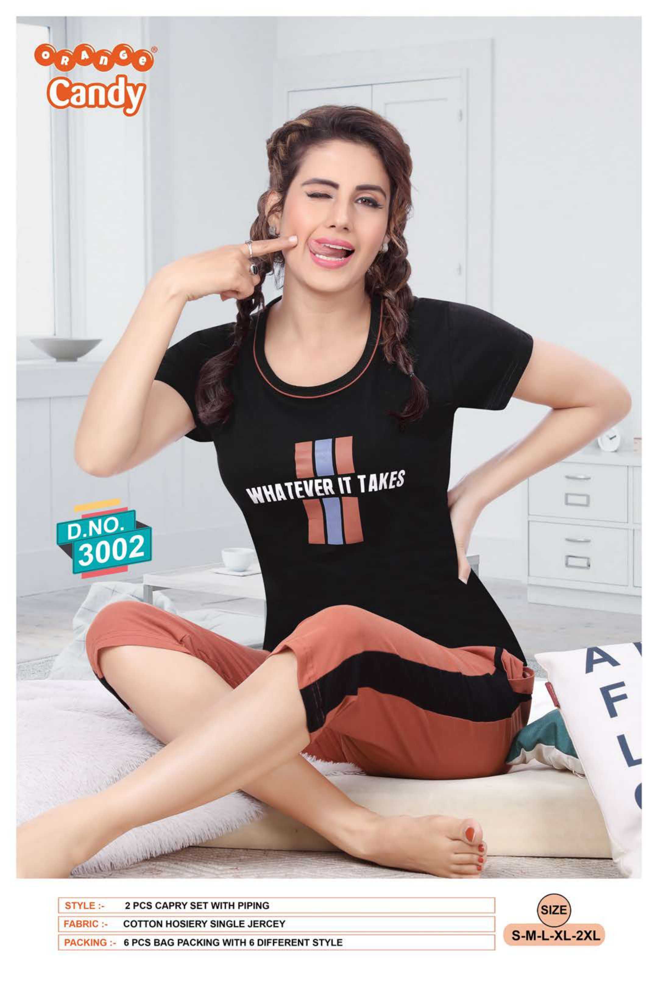 orange candy ladies premium nightwear paijama set capri night suit nighty wholesaler in surat