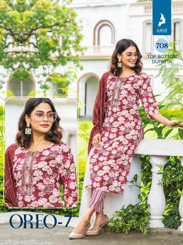 oreo vol 7 by kaya beautiful print rayon readymade plus size 3pcs dress