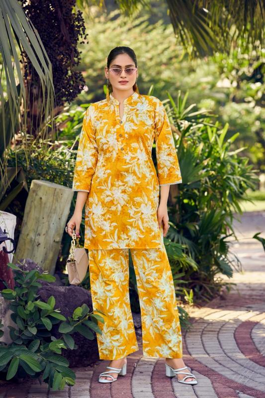 👏🏻👏🏻 Catalouge : 💃 COTTON BEATS Vol 02 💃 CO-ORD SET COLLECTION Fabric in Top : Premium Cotton Foil Print Sleeves type : 3/4th Rate : 545 + GST 5%