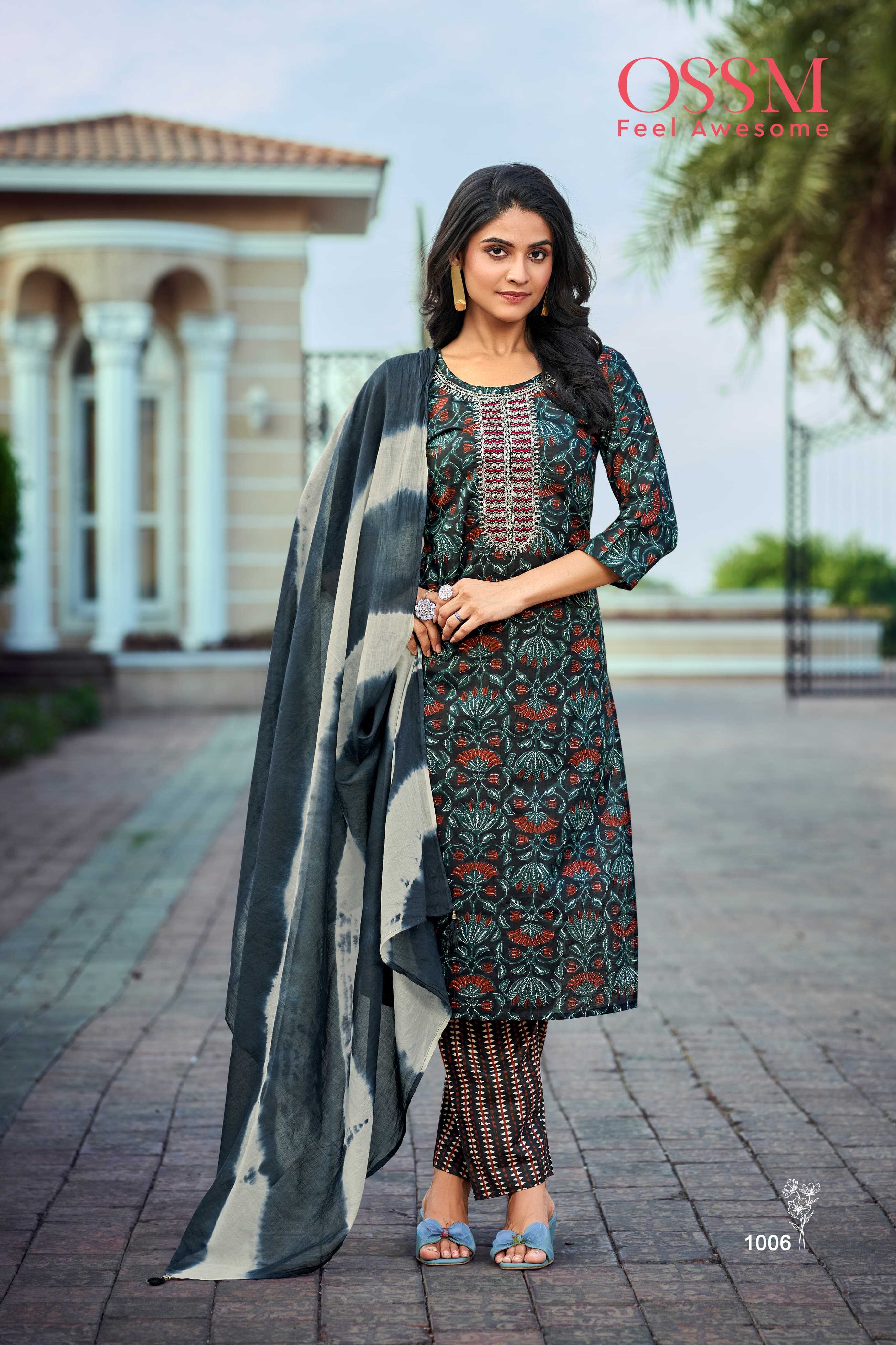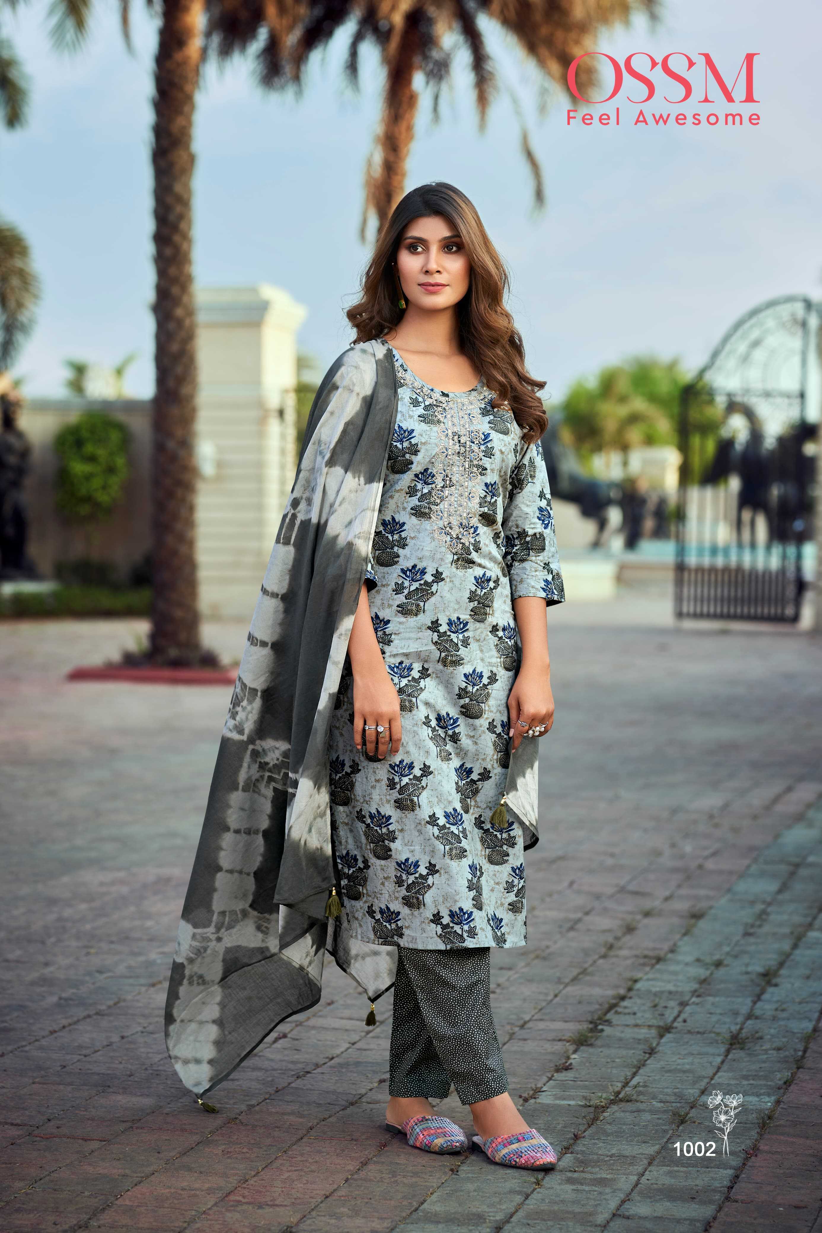 ossm cotton culture fancy wear readymade kurti pant dupatta