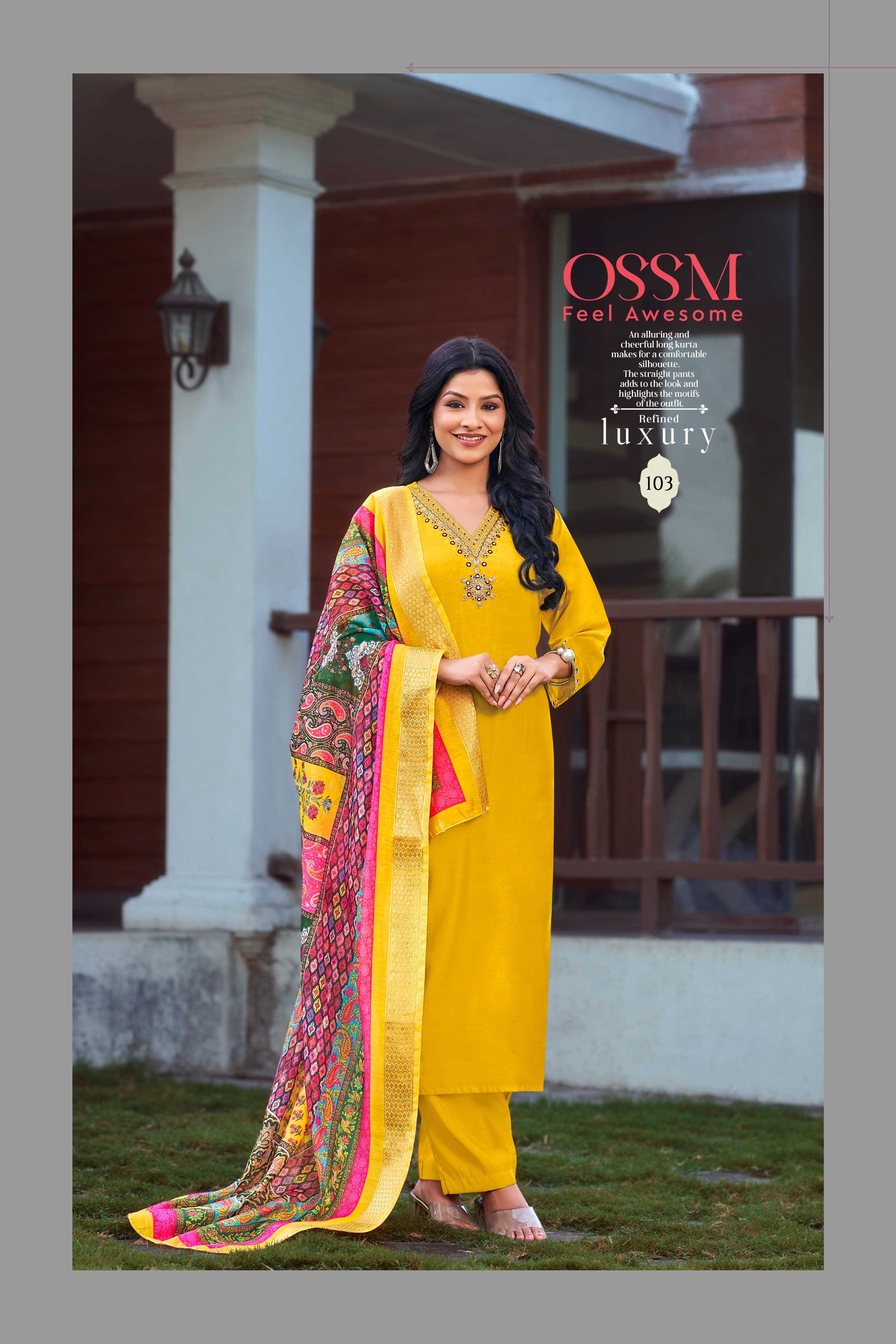 ossm launch noorie vol 3 readymade fancy viscose roman silk salwar kameez