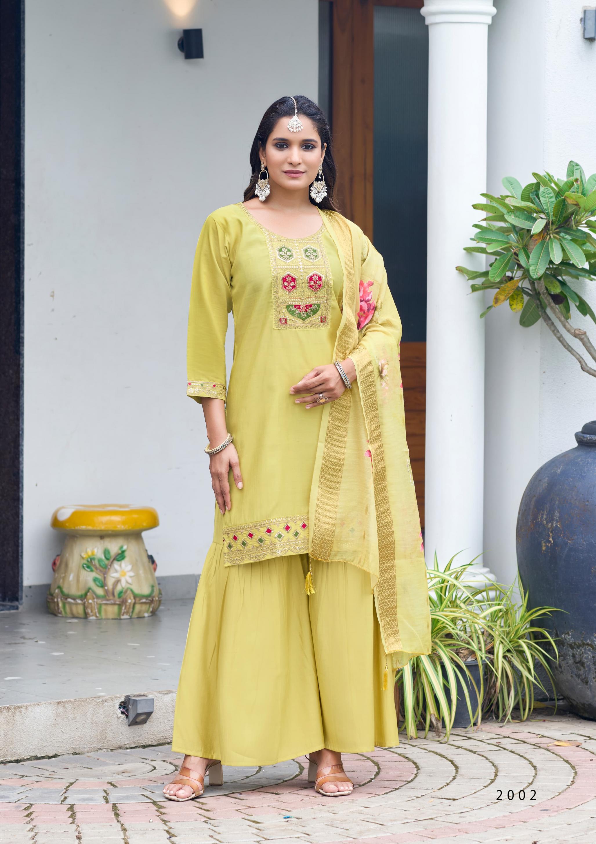 👏🏻👏🏻 Catalouge : 💃 MANNAT Vol 02 💃 Sharrara Collection Fabric in Top : Viscos Roman Silk Sleeves type : 3/4th Rate : 875/- + GST 5%
