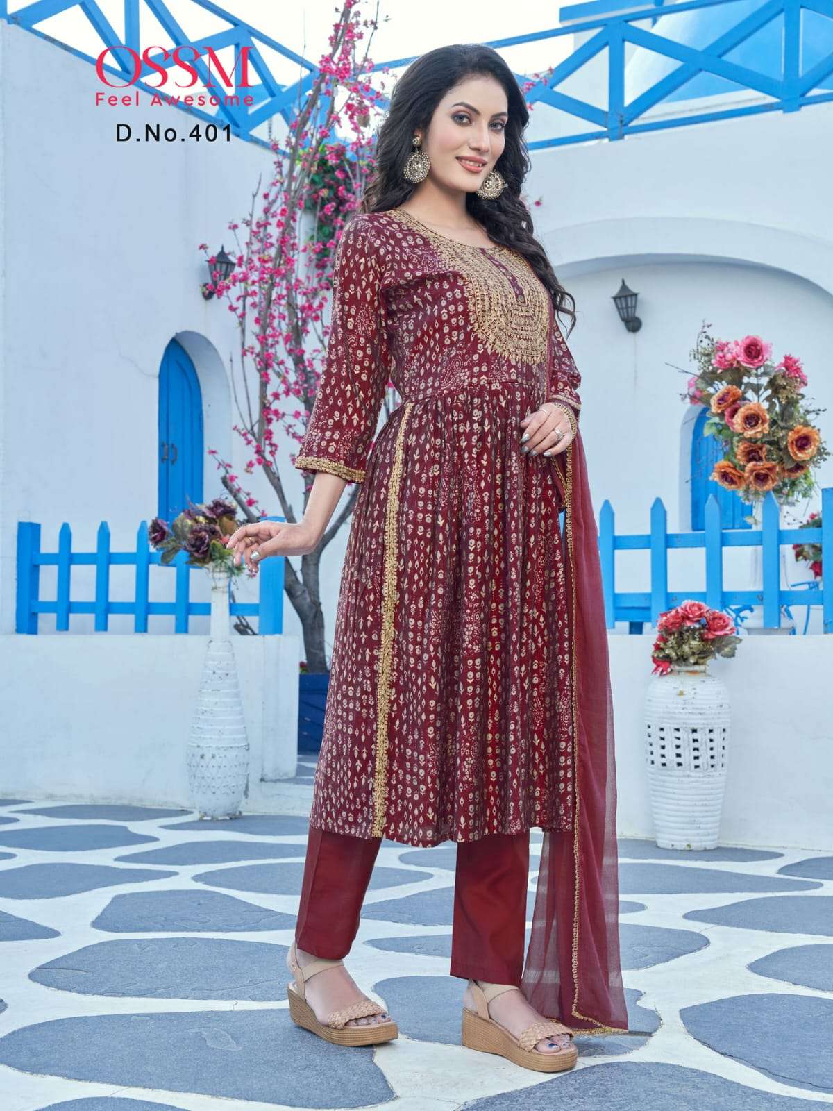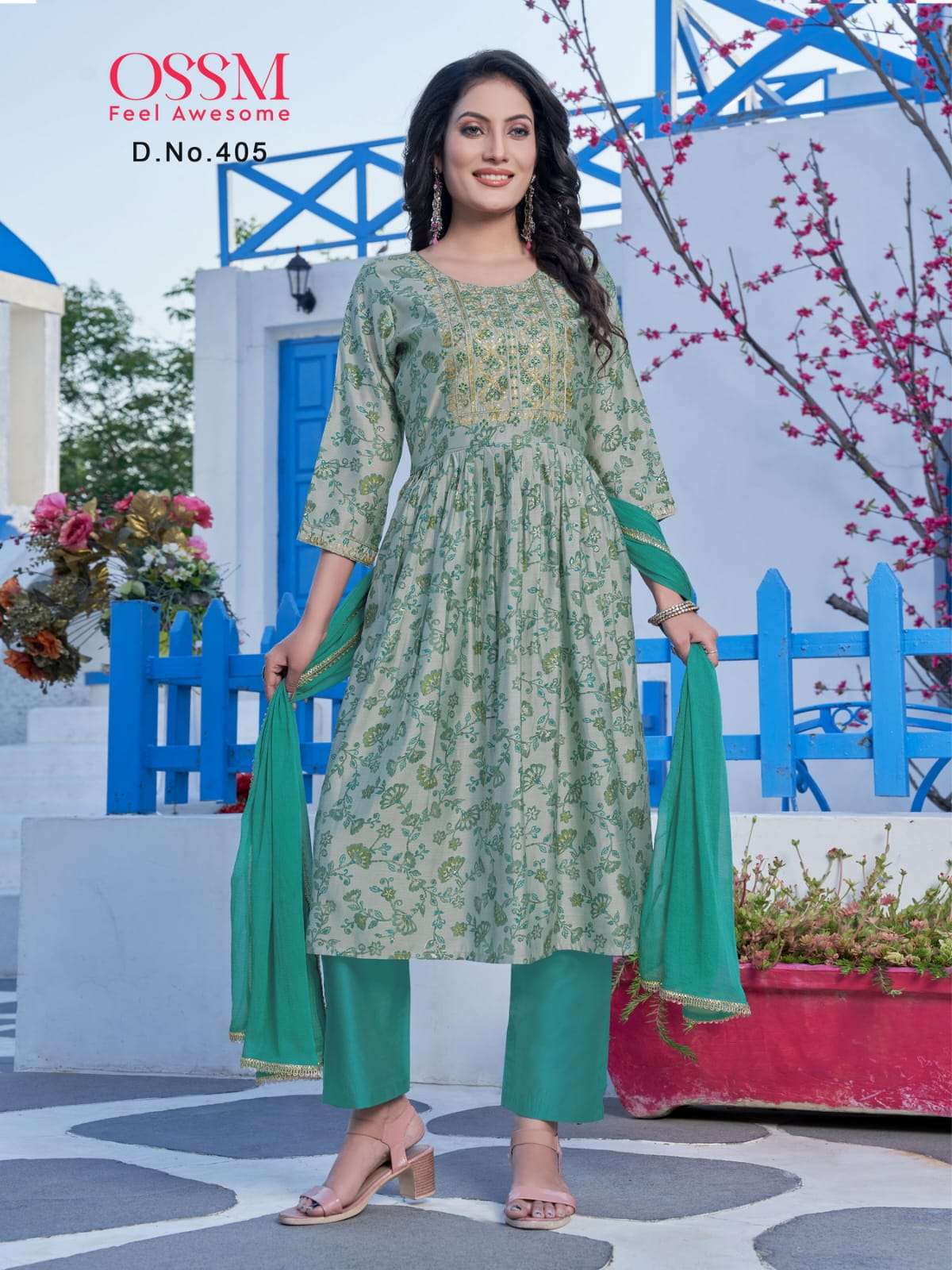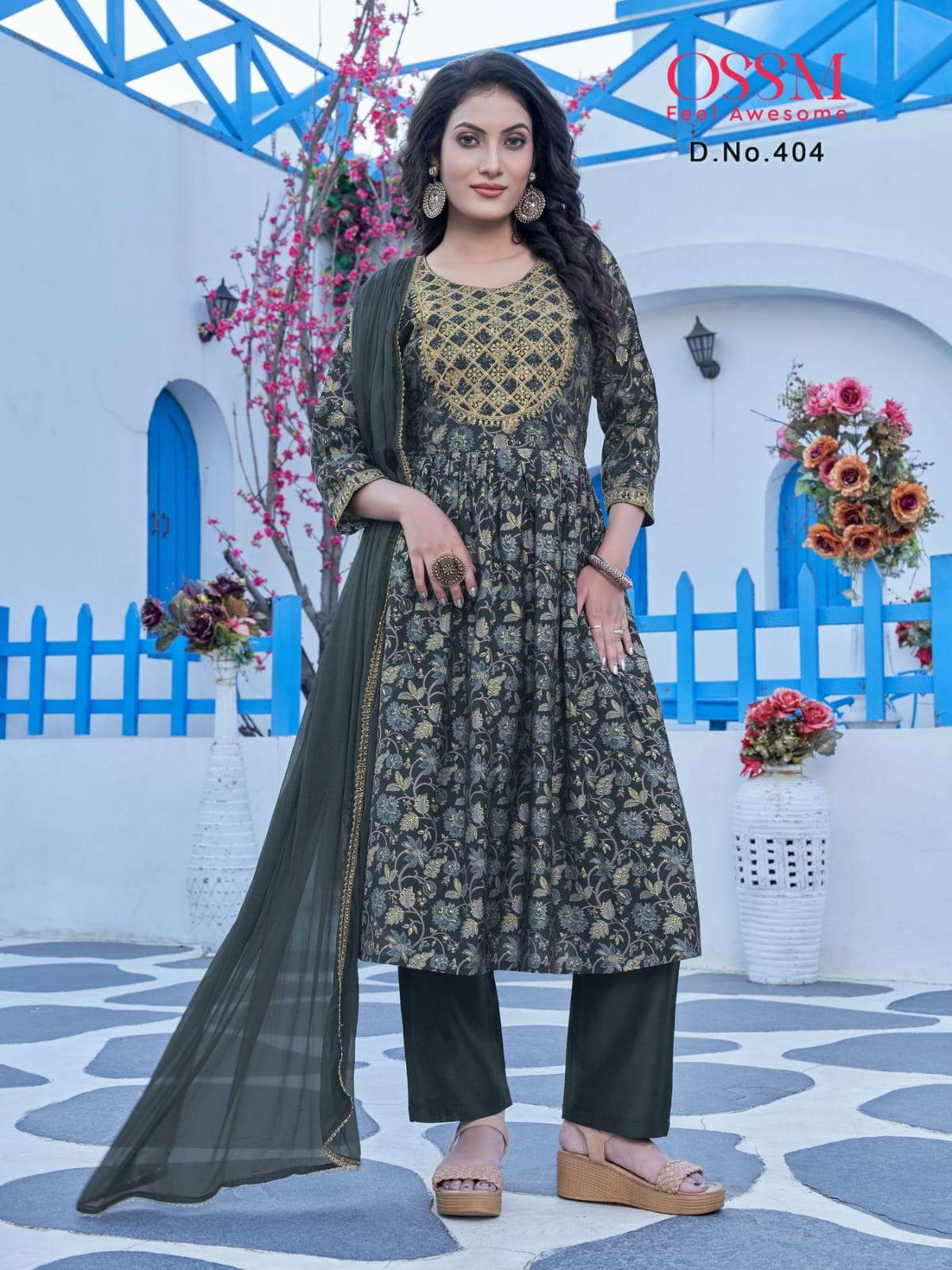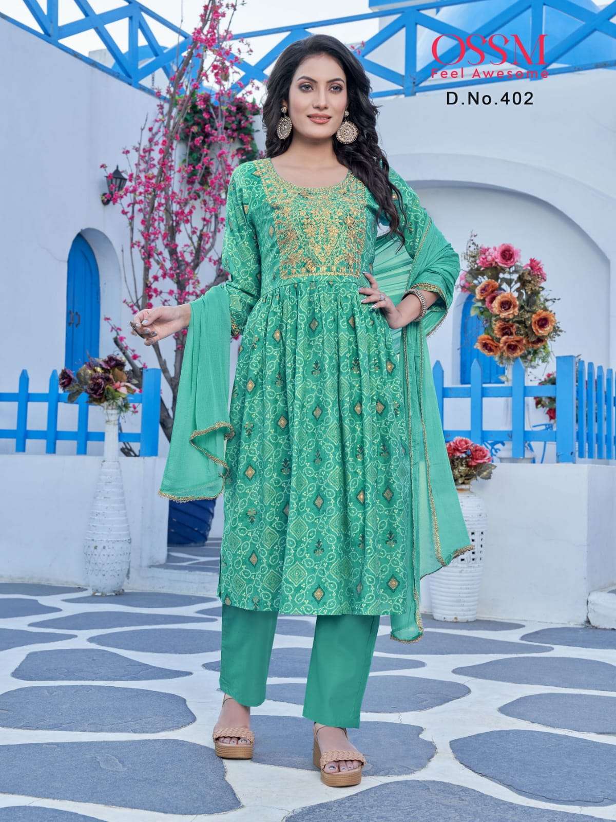 ossm mannat vol 4 nyra cur kurti with pant and dupatta set