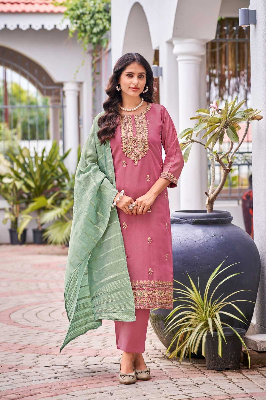 ossm mishu embroidery work roman simmer fully stitch casual 3pcs suit