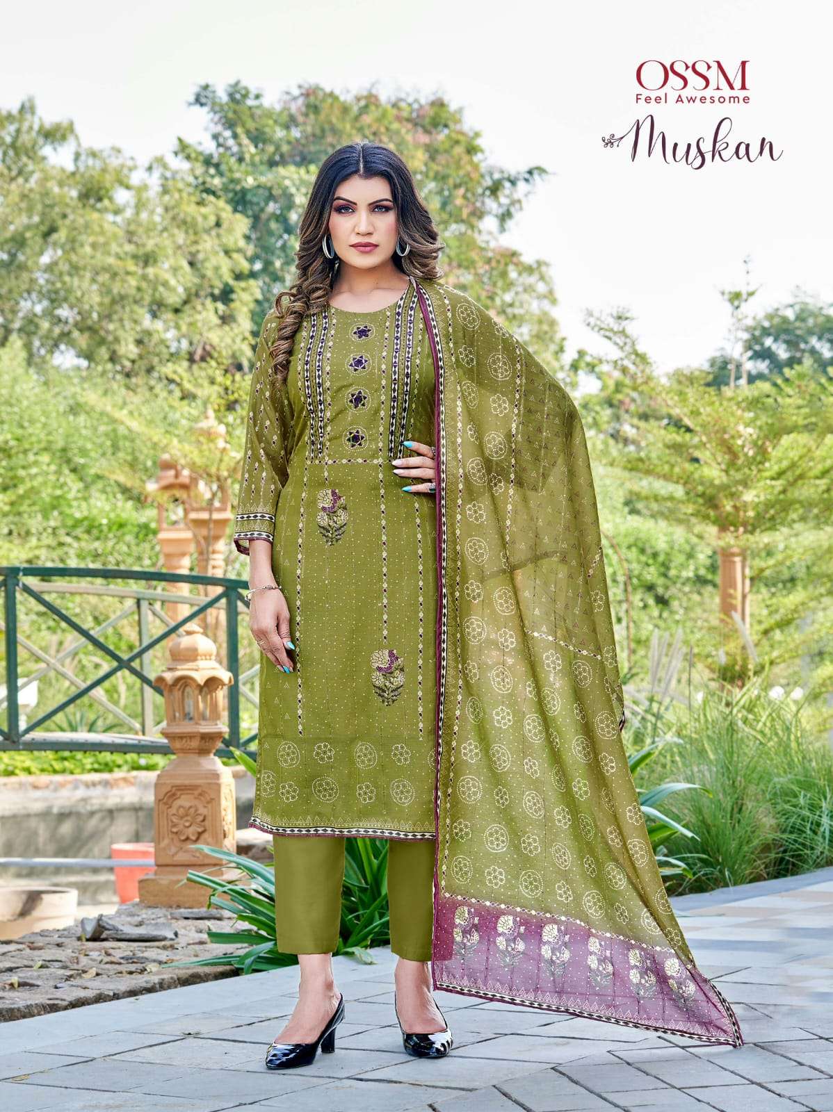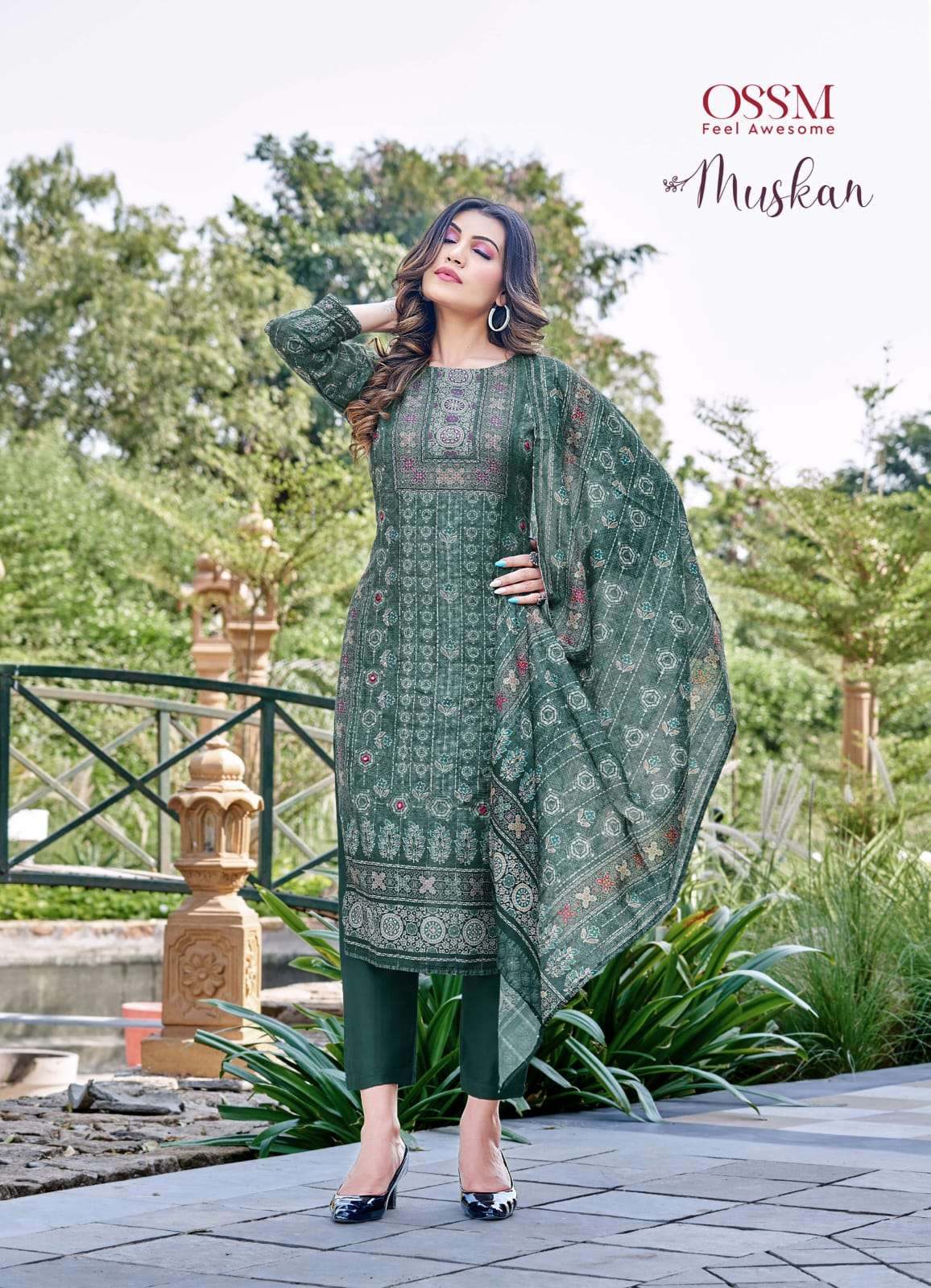 OSSM Catalouge : 💃 MUSKAN 💃 Party Wear Collection 3pc Fabric in Top : Viscos Silk Sequence Digital Print with astar Sleeves type : 3/4th Rate : 845 + GST 5%