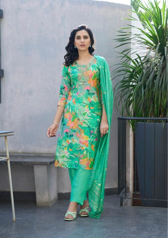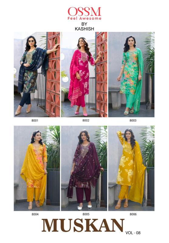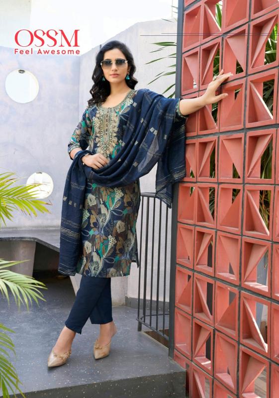 ossm muskan vol 8 chanderi modal fully stitch classic 3pcs dress