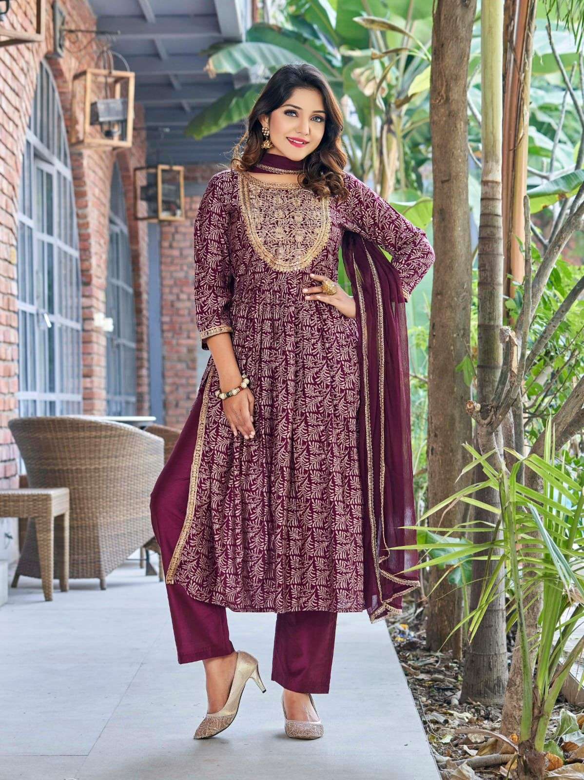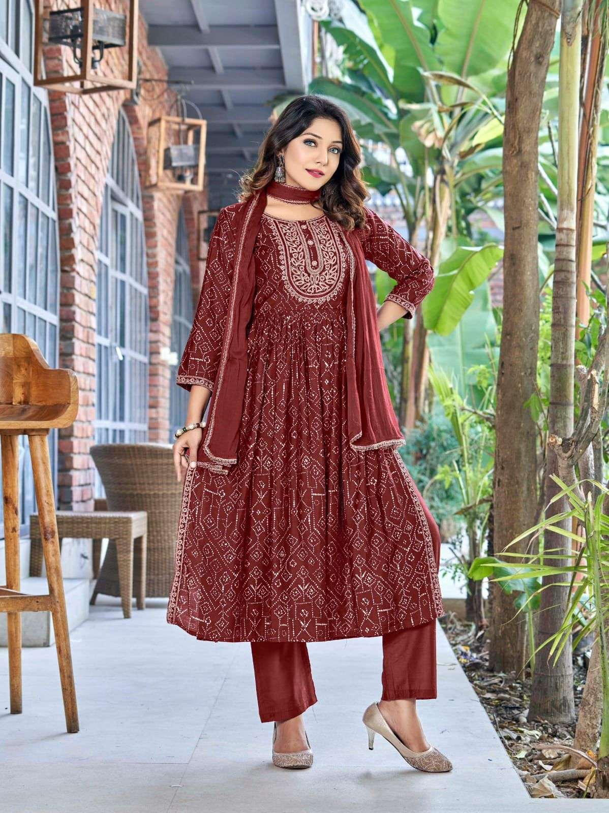 OSSM Catalouge : 💃 MANNAT 💃 NYRA Collection Fabric in Top : Premium Chanderi Modal Foil Print Sleeves type : 3/4th |