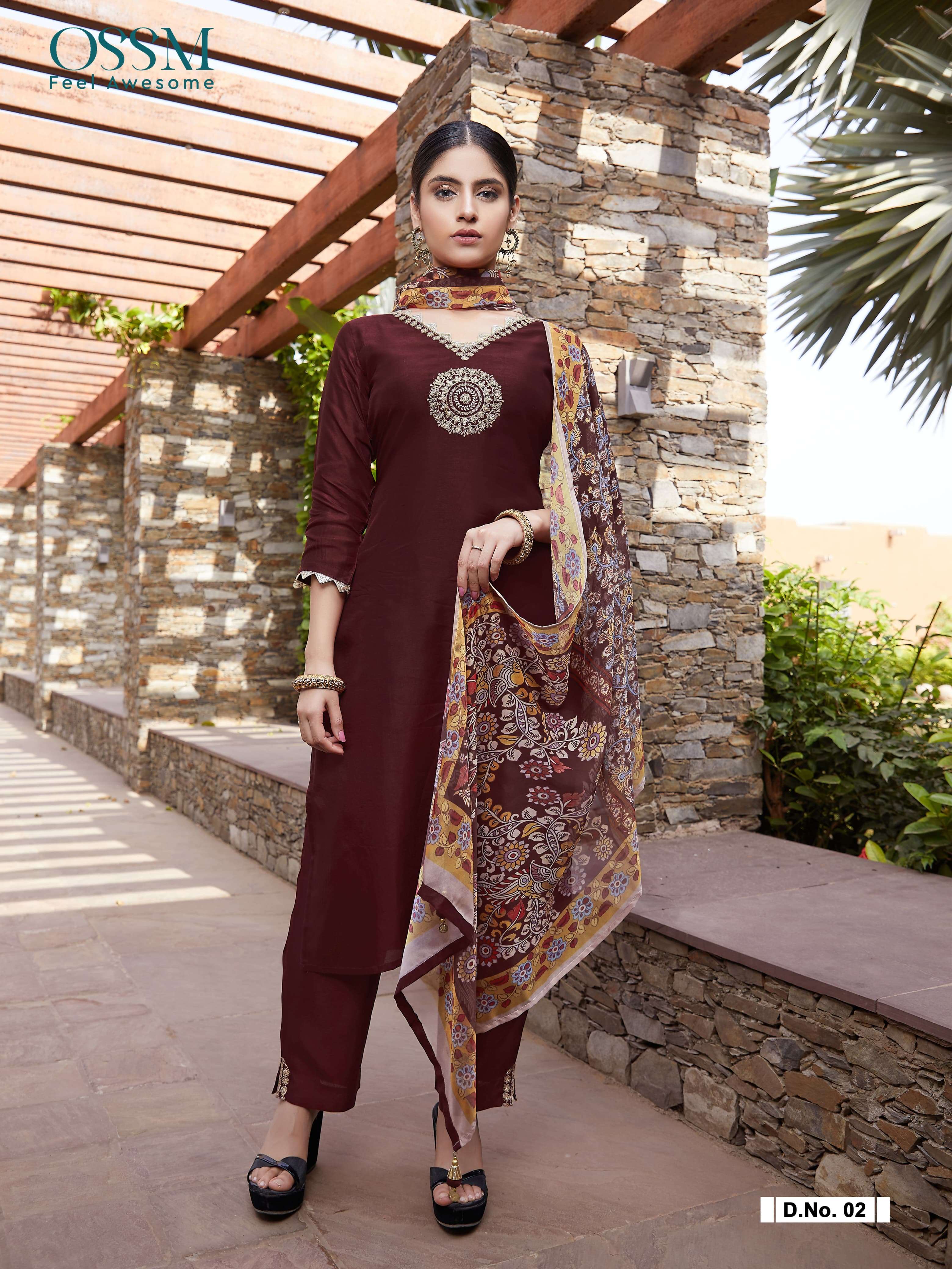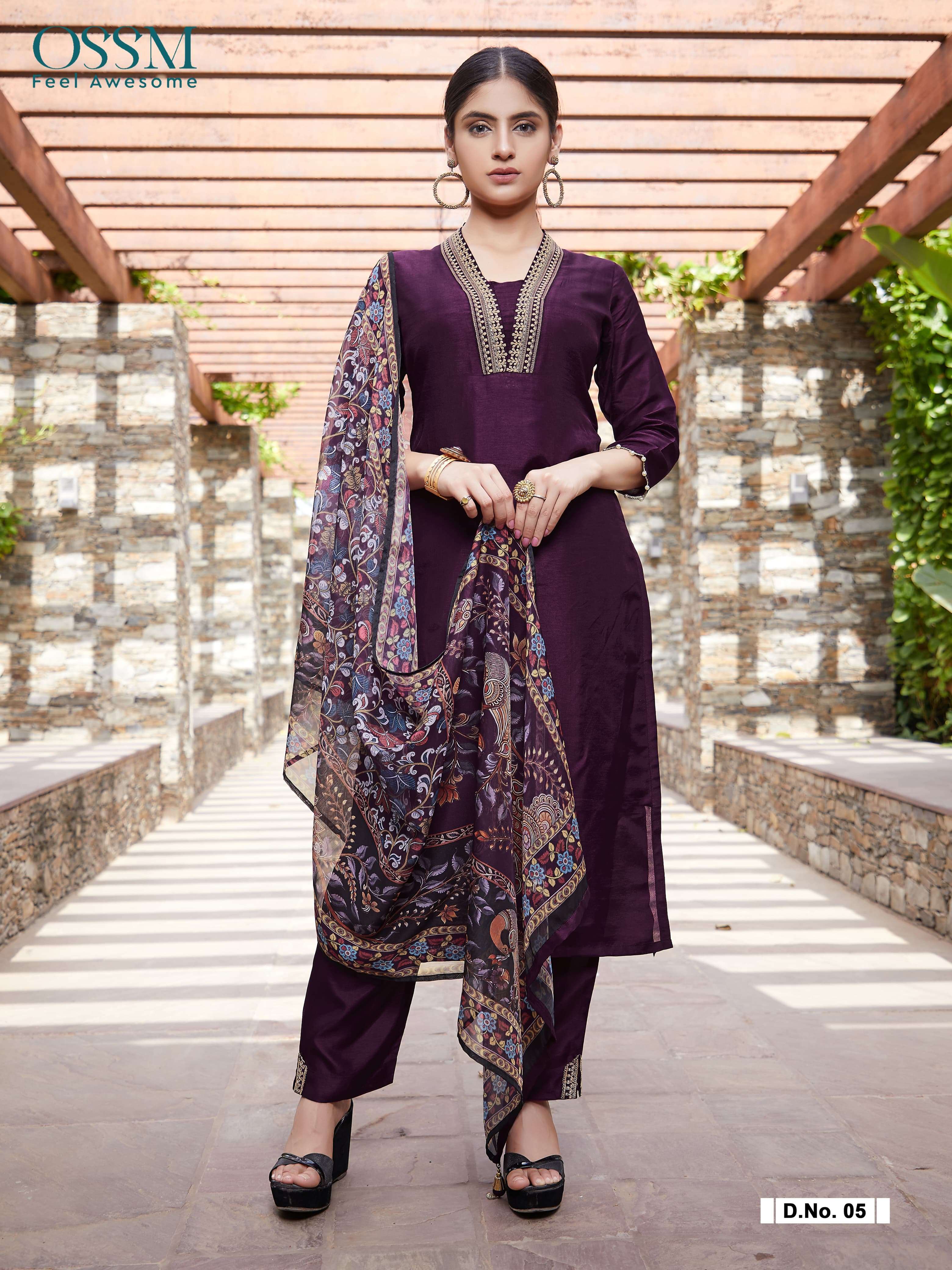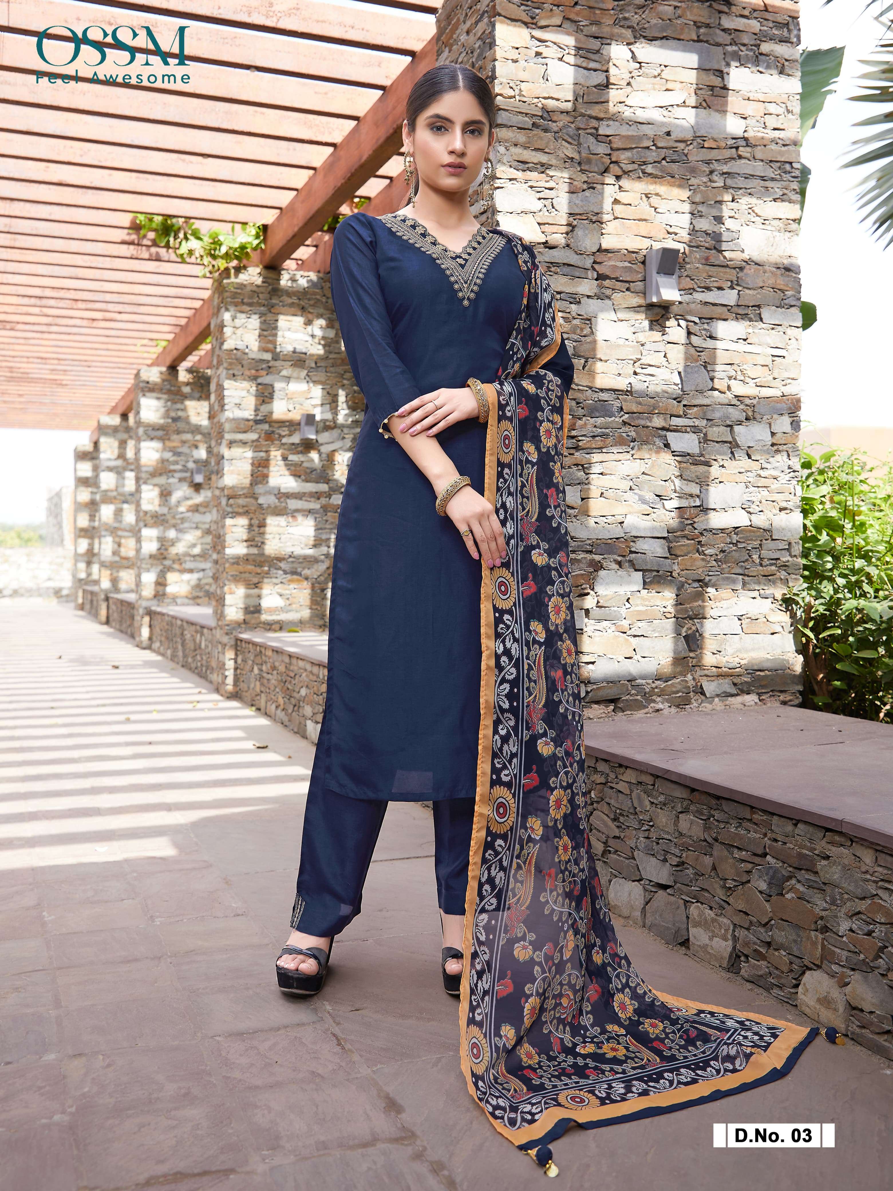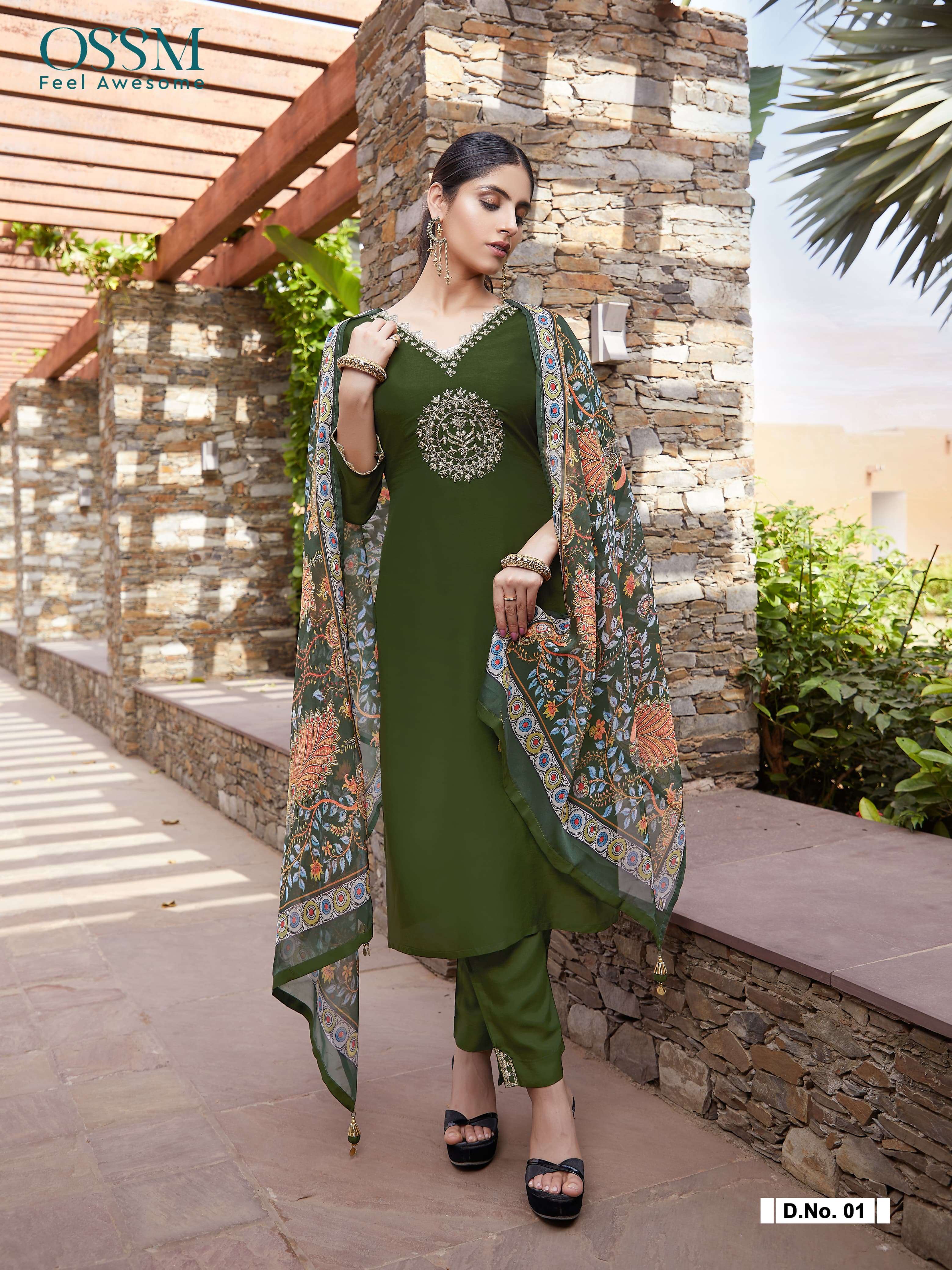 ossm present noorie fancy work kurti with pant and digital silk dupatta
