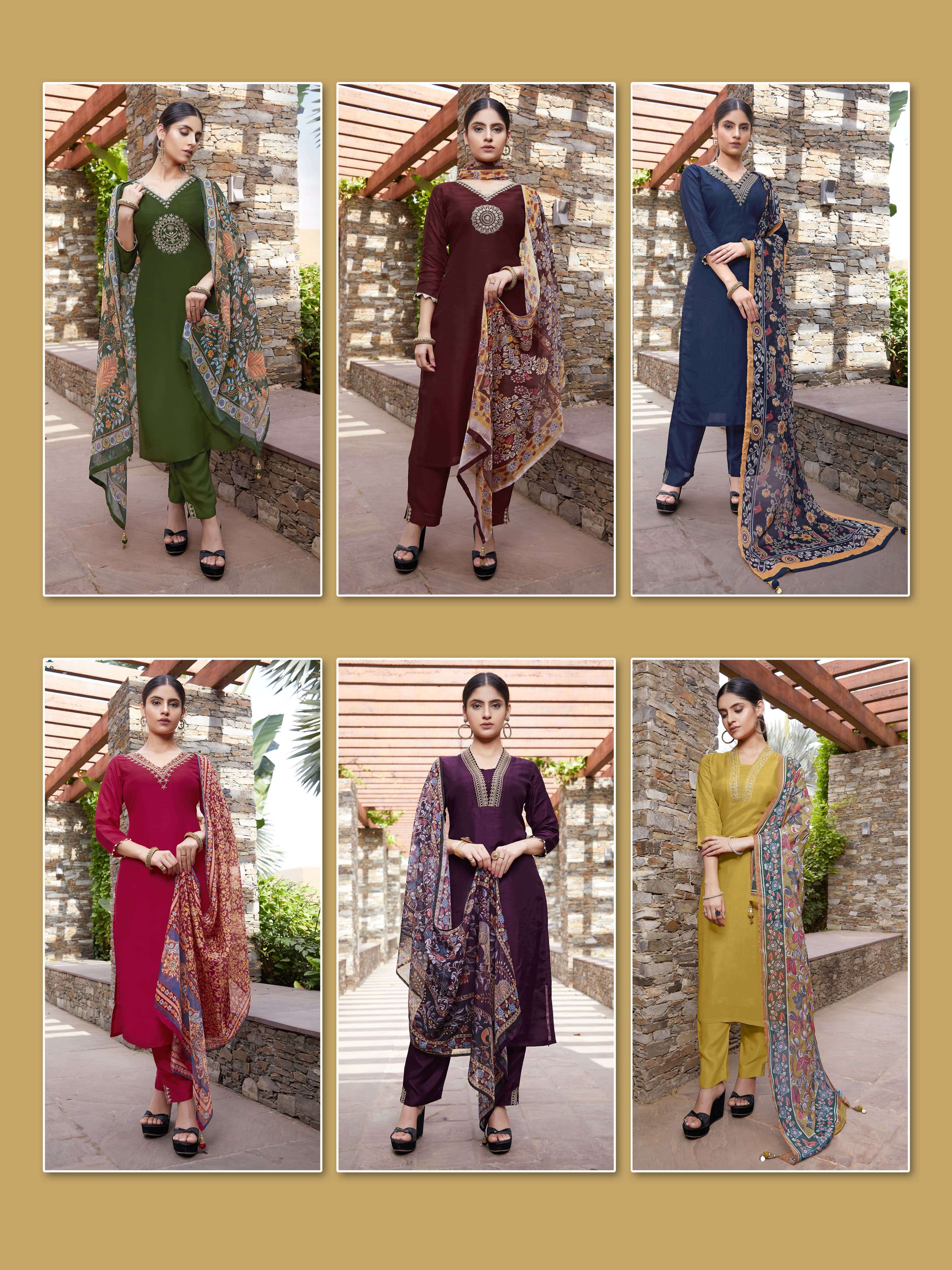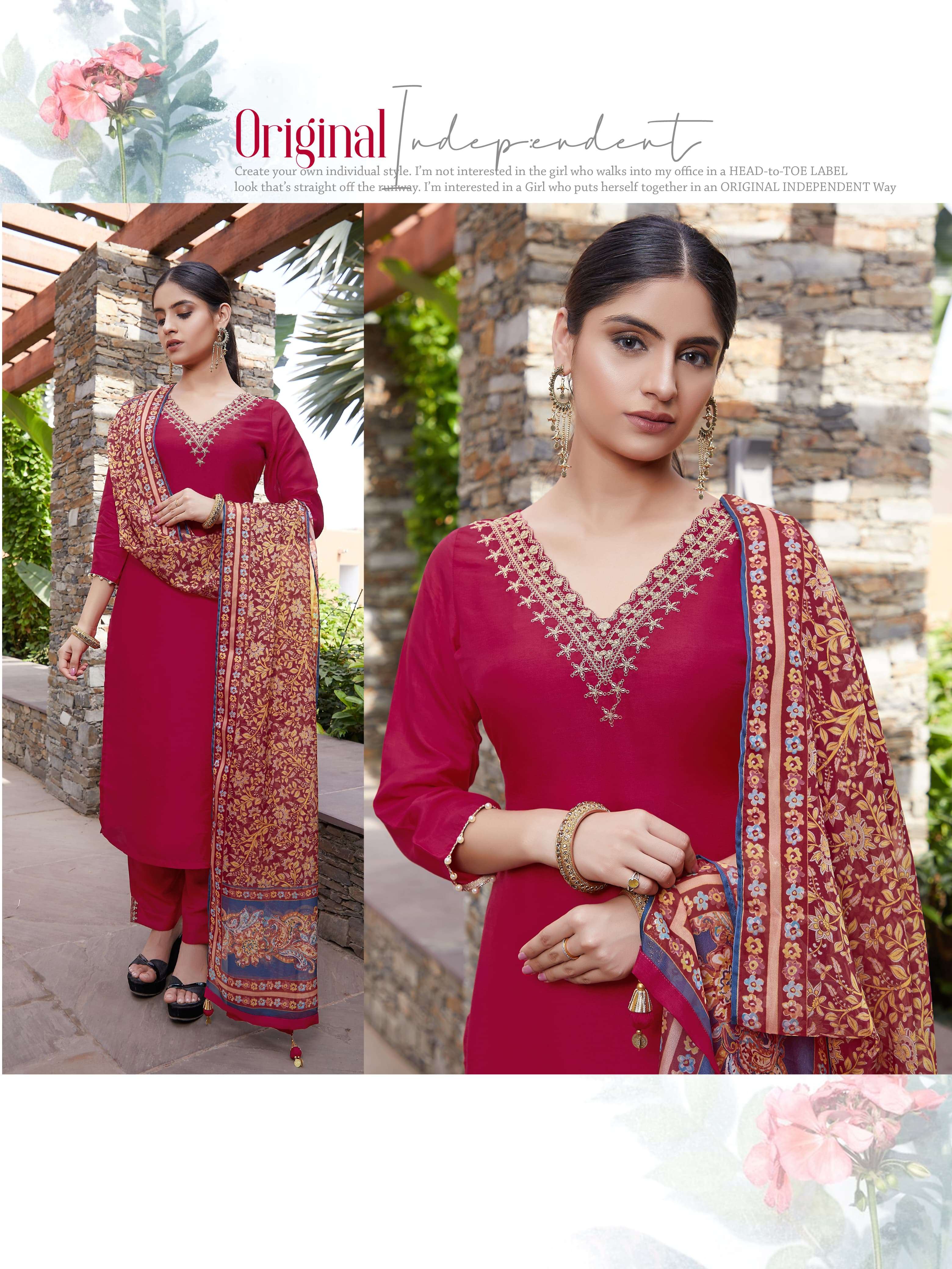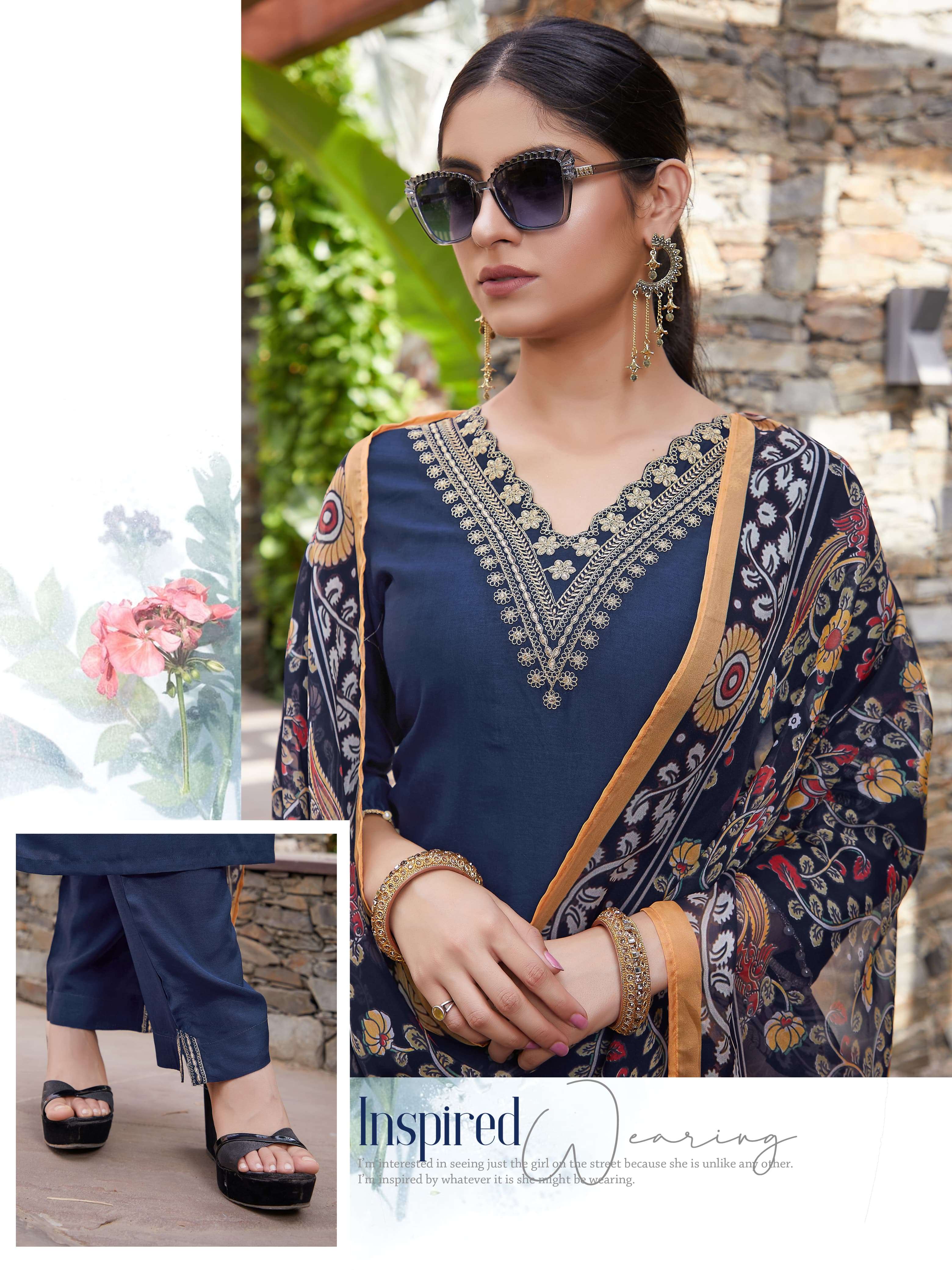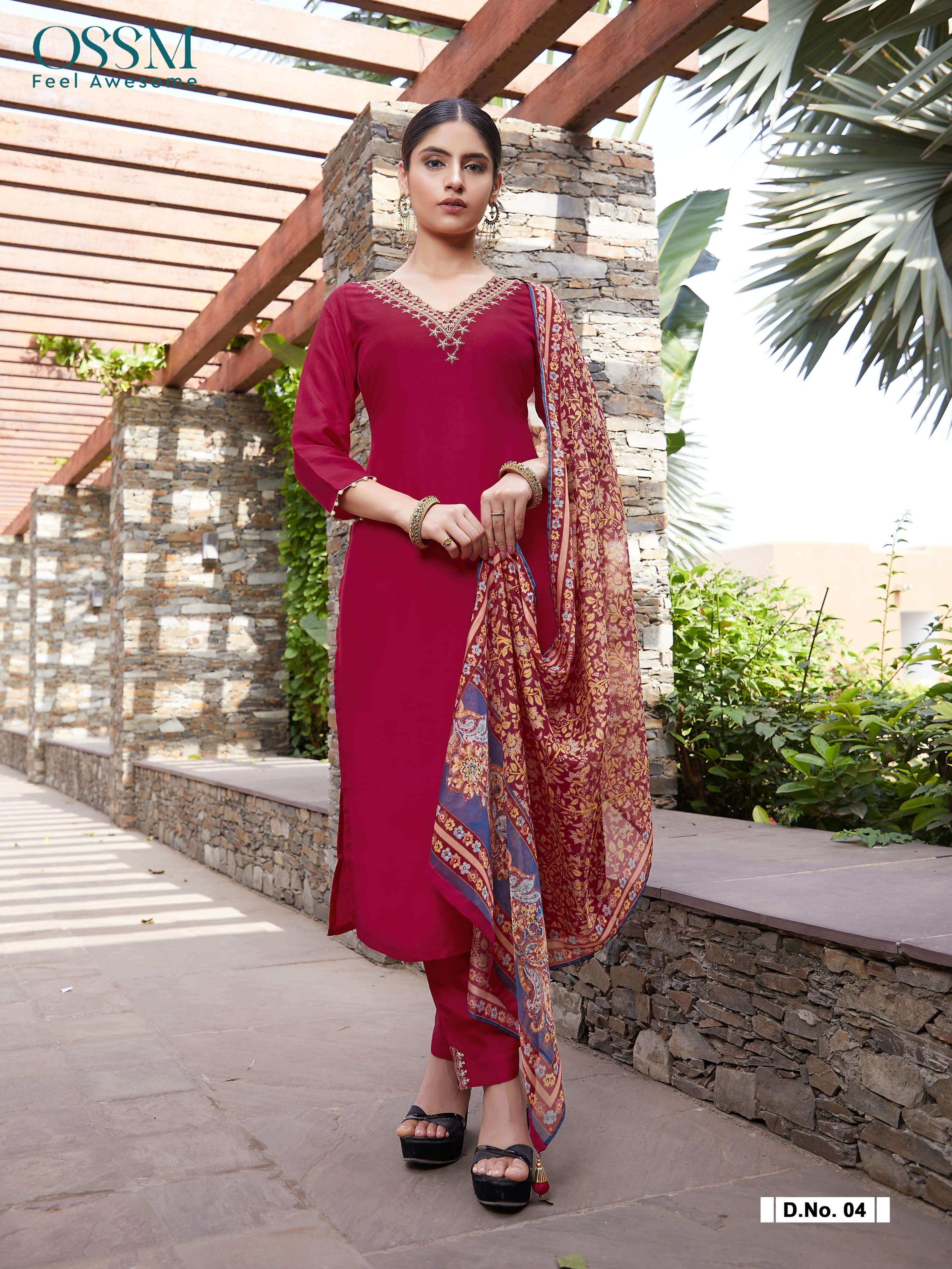 ossm present noorie fancy work kurti with pant and digital silk dupatta