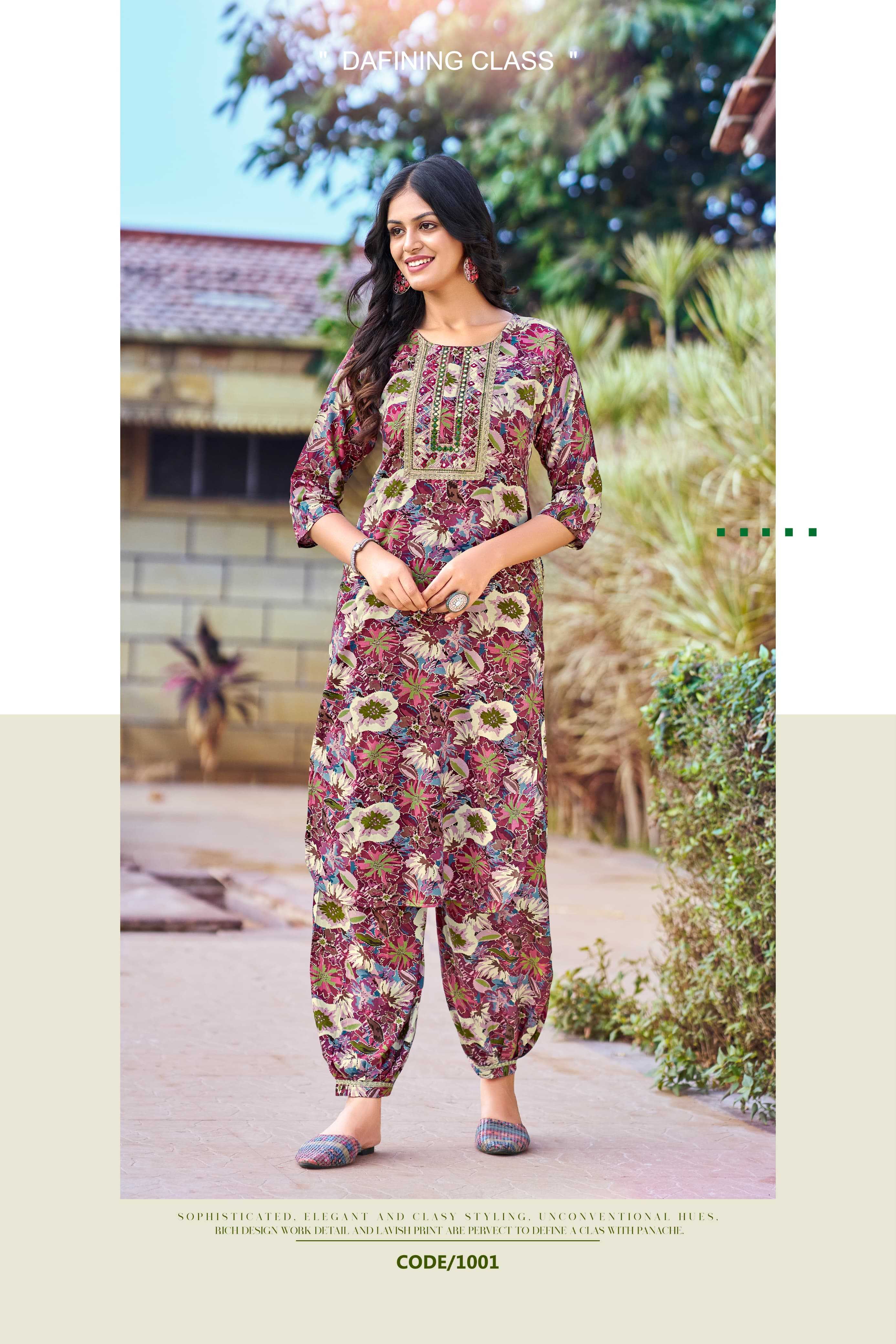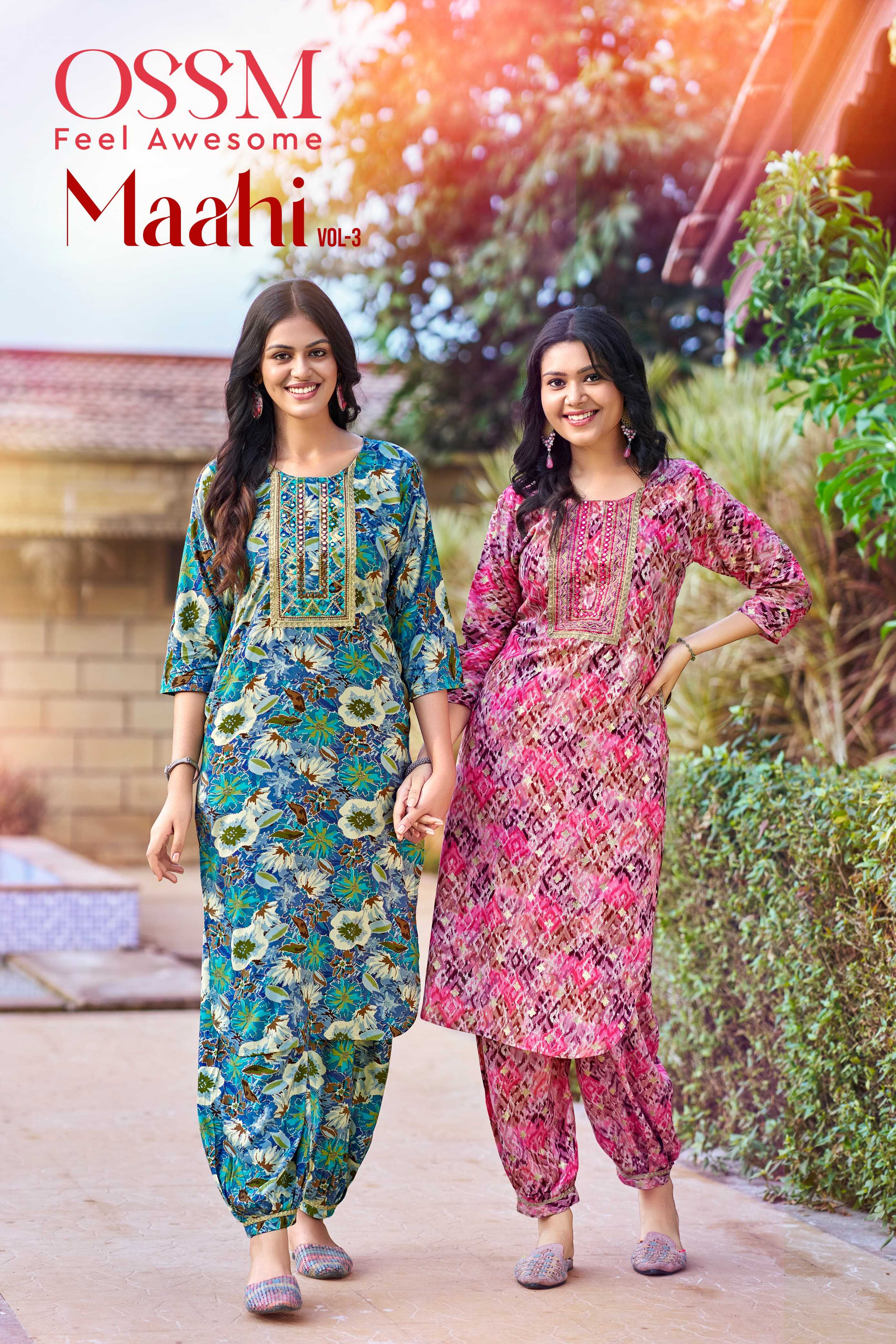 🙏🏻🙏🏻 Catalouge : 💃 MAAHI Vol 03 💃 CO-ORD Set Collection Fabric in Top : Premium Reyon 16kg Print Sleeves type : 3/4th Rate : 710/- + GST 5%