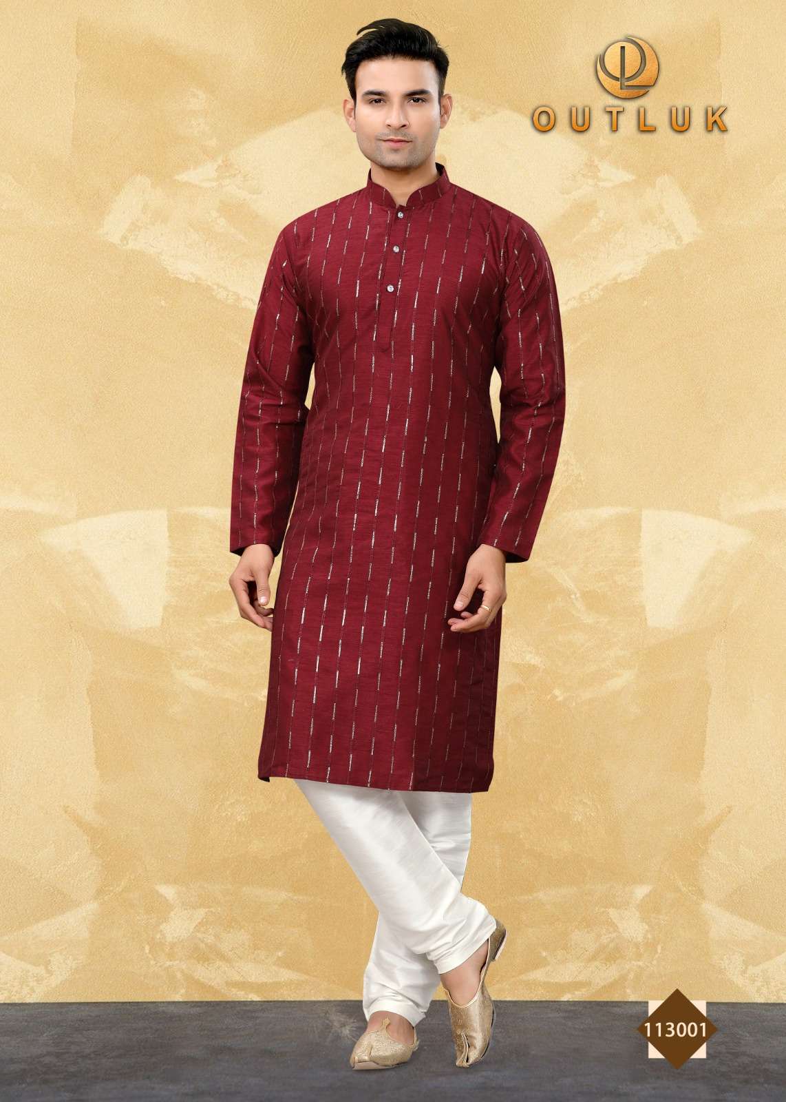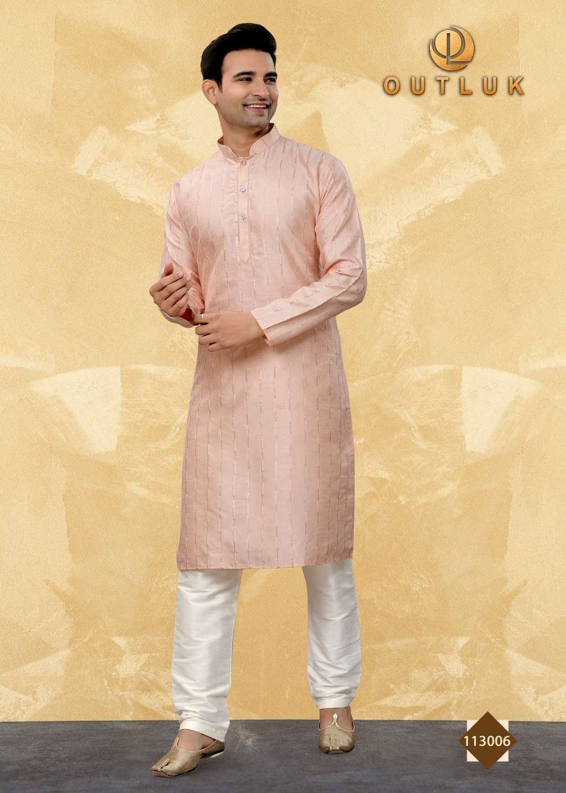 outluk vol 113 readymade mens art silk sequence work kurta and pajama