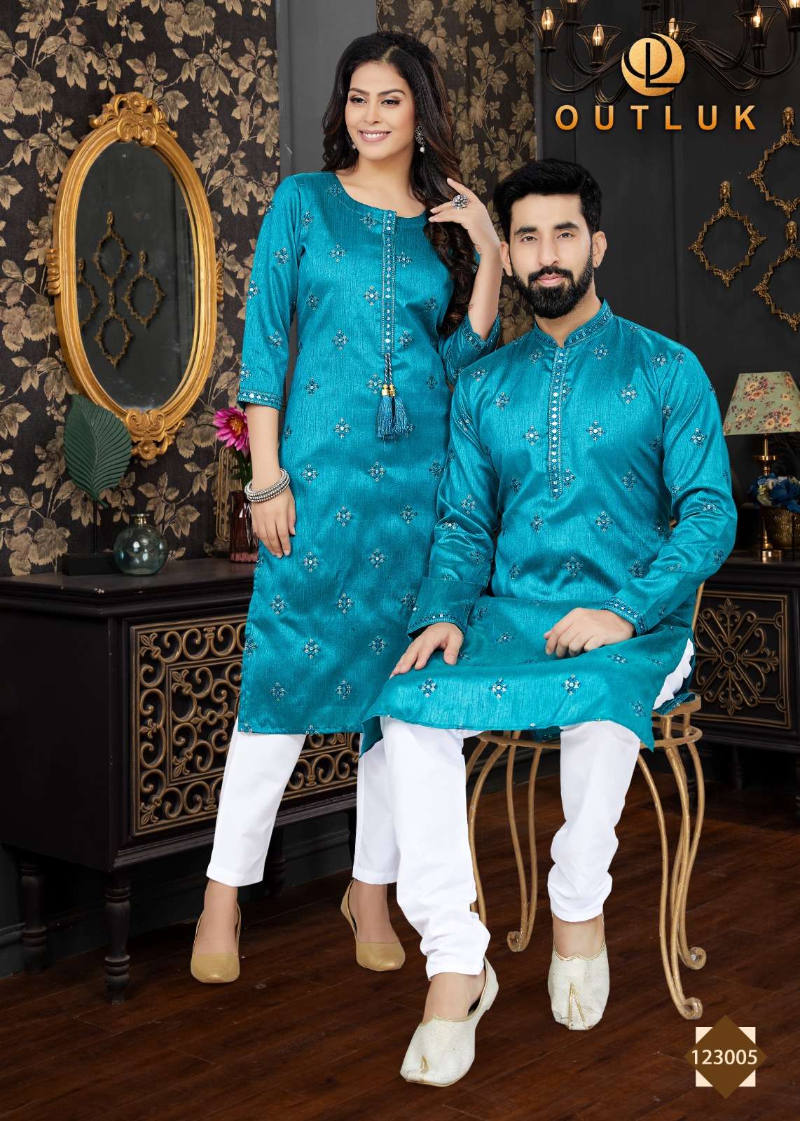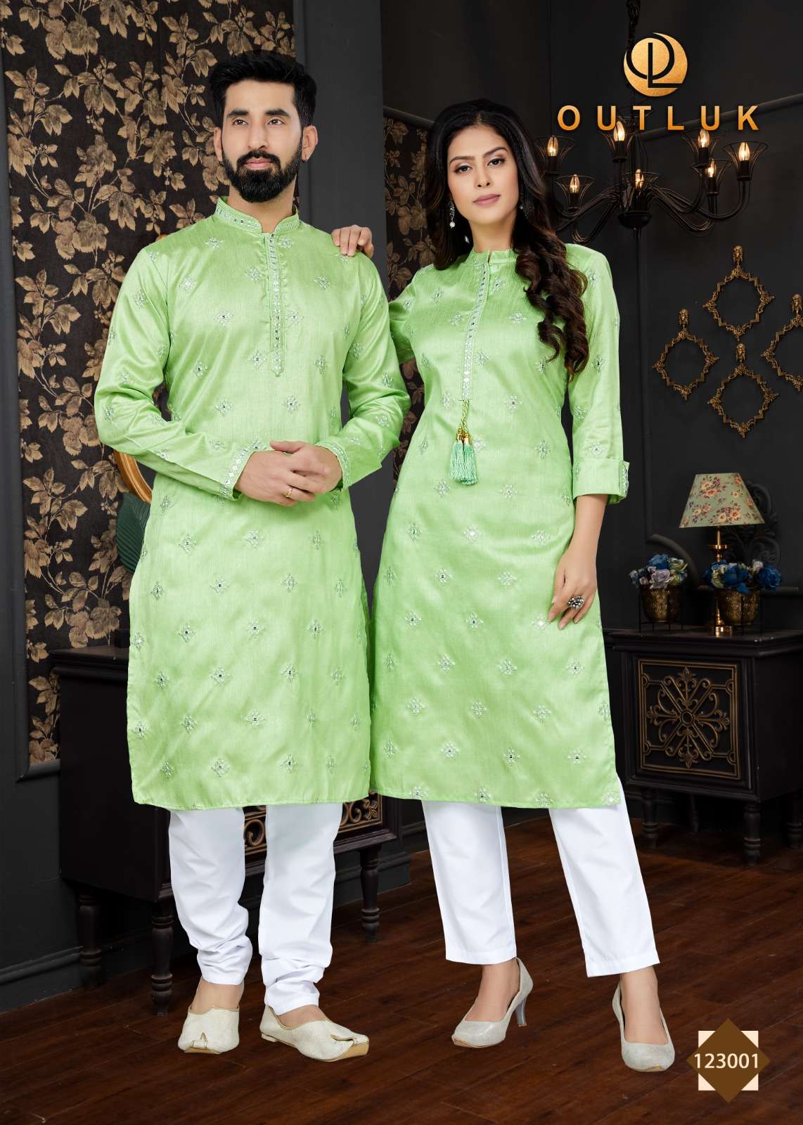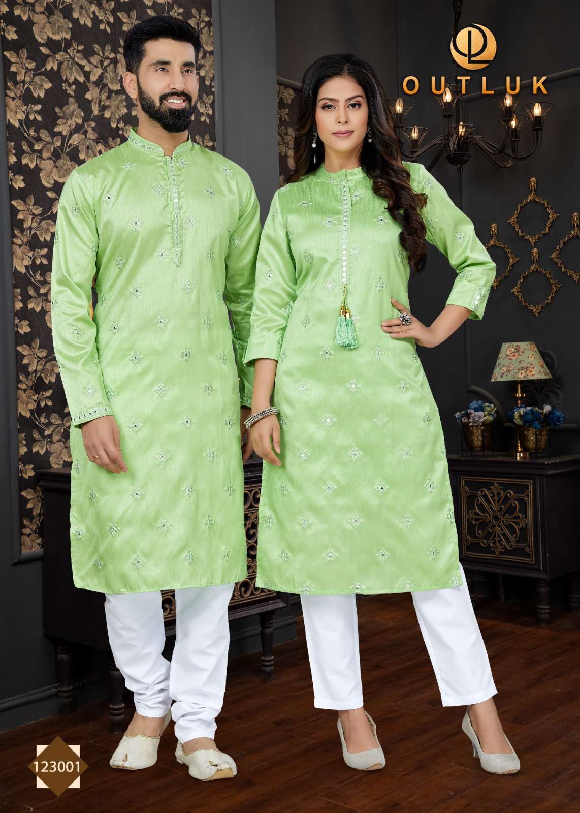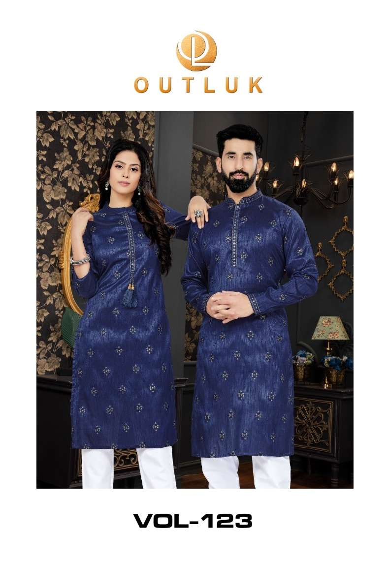 outluk vol 123 couple combo mens kurta with payjama and womens kurti with pants