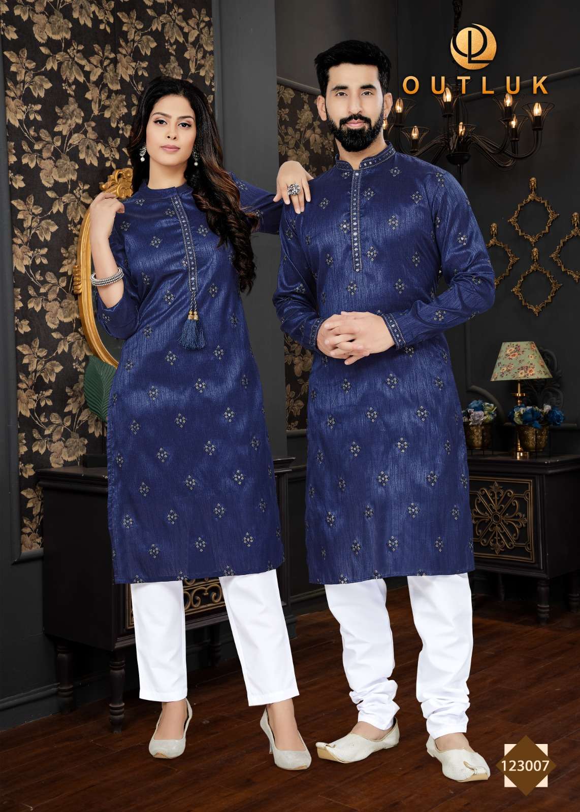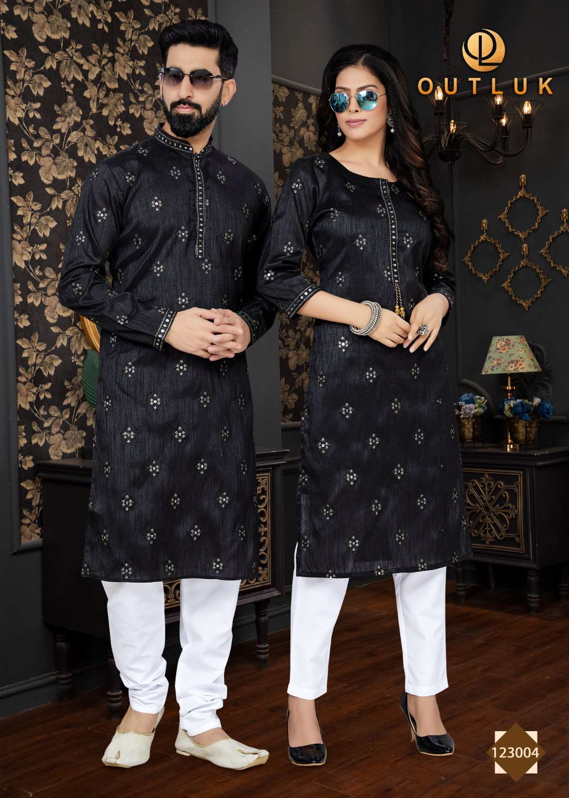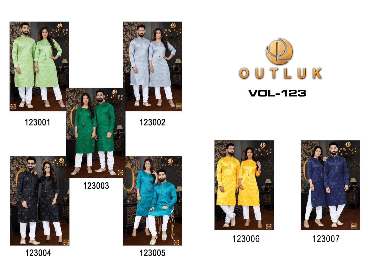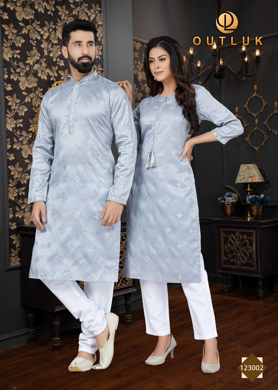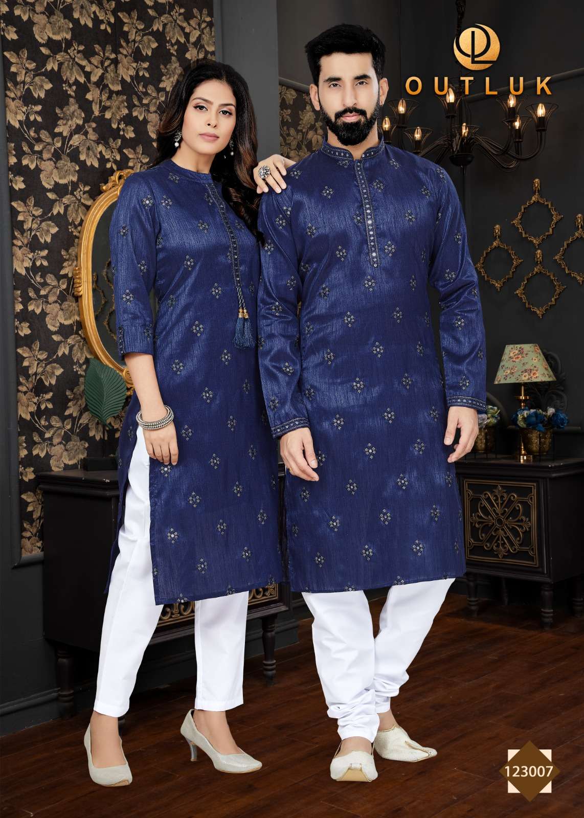 outluk vol 123 couple combo mens kurta with payjama and womens kurti with pants