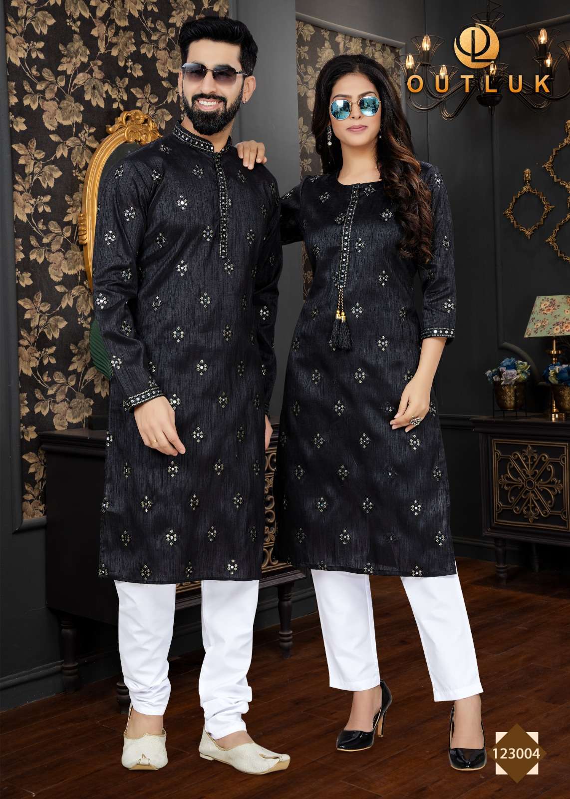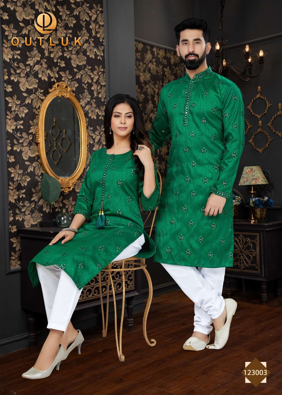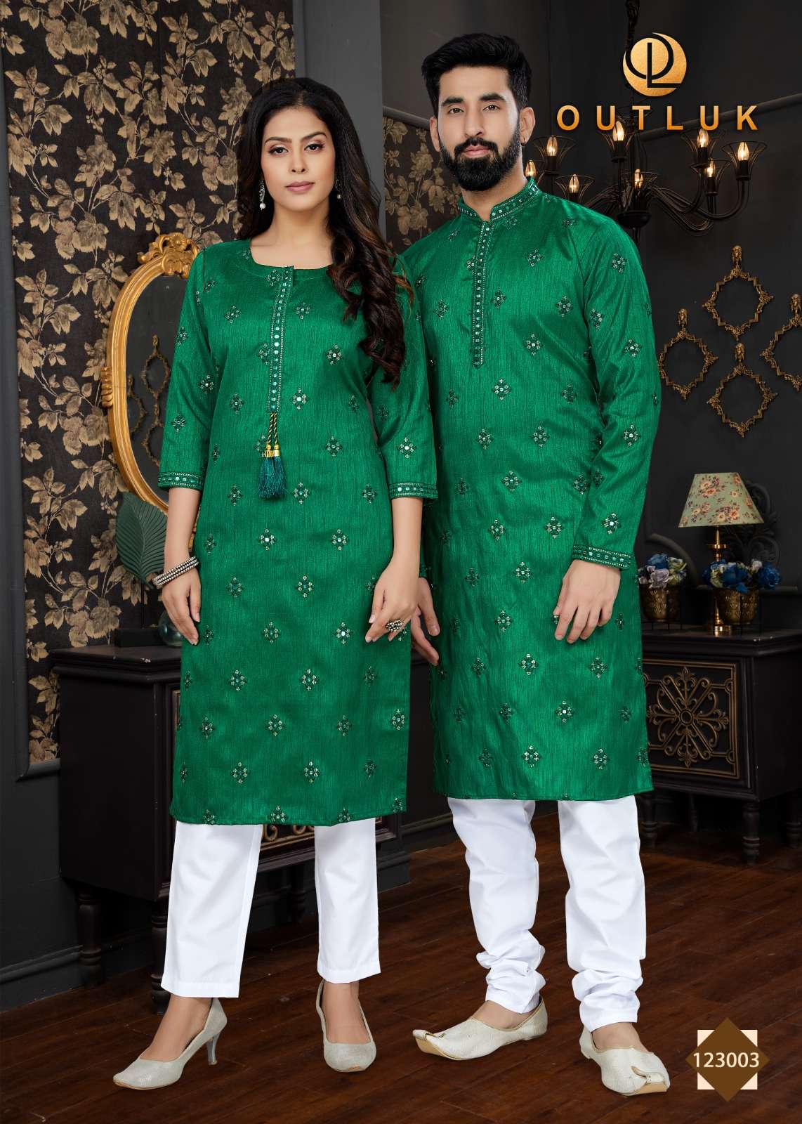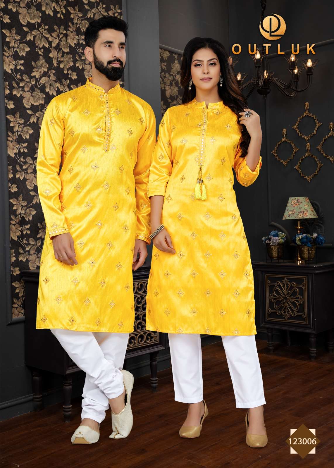 outluk vol 123 couple combo mens kurta with payjama and womens kurti with pants