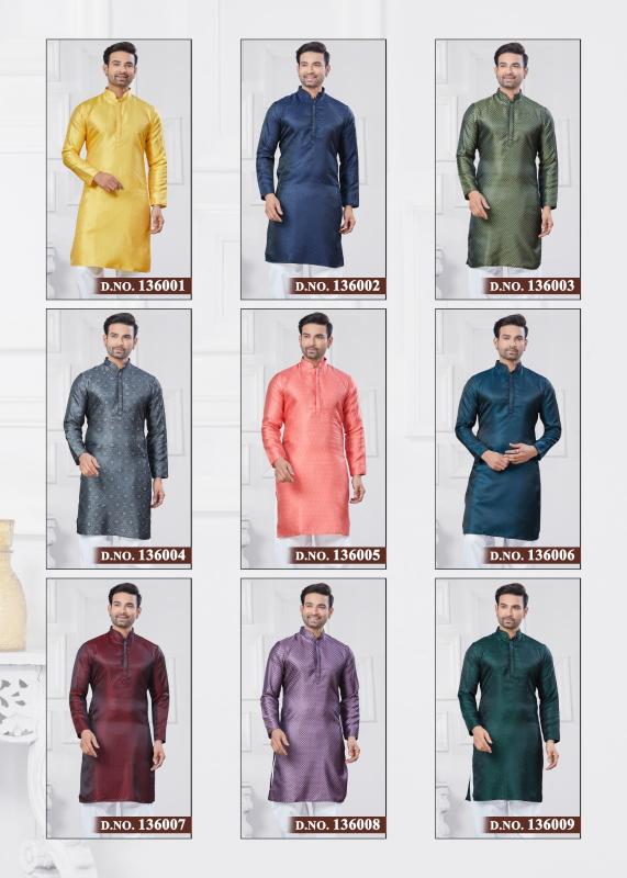 Outluk Added Kurta Pajama Collection Series with Pathani Bottom Catalog Name: Outluk Vol 136 Work : Jacquard Weaving Work 🔸 Fabric Details 🔸 ▪Kurta Fabric: - Jacquard Silk ▪Pajama Fabric: - Pathani Style Bottom in Cotton Fabric ▪Total Design: - 9 pcs ▪Size: - 36,38,40,42,44 📝Booking started from now... Delivery: Ready To Ship |