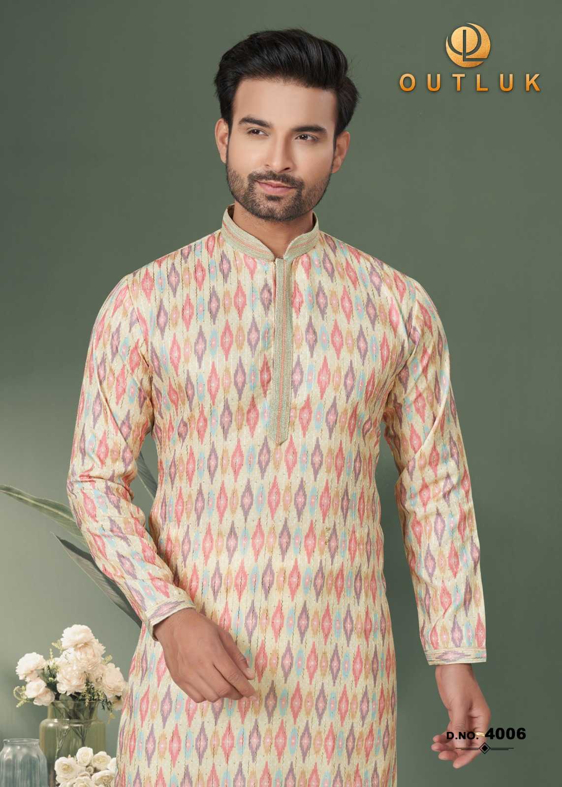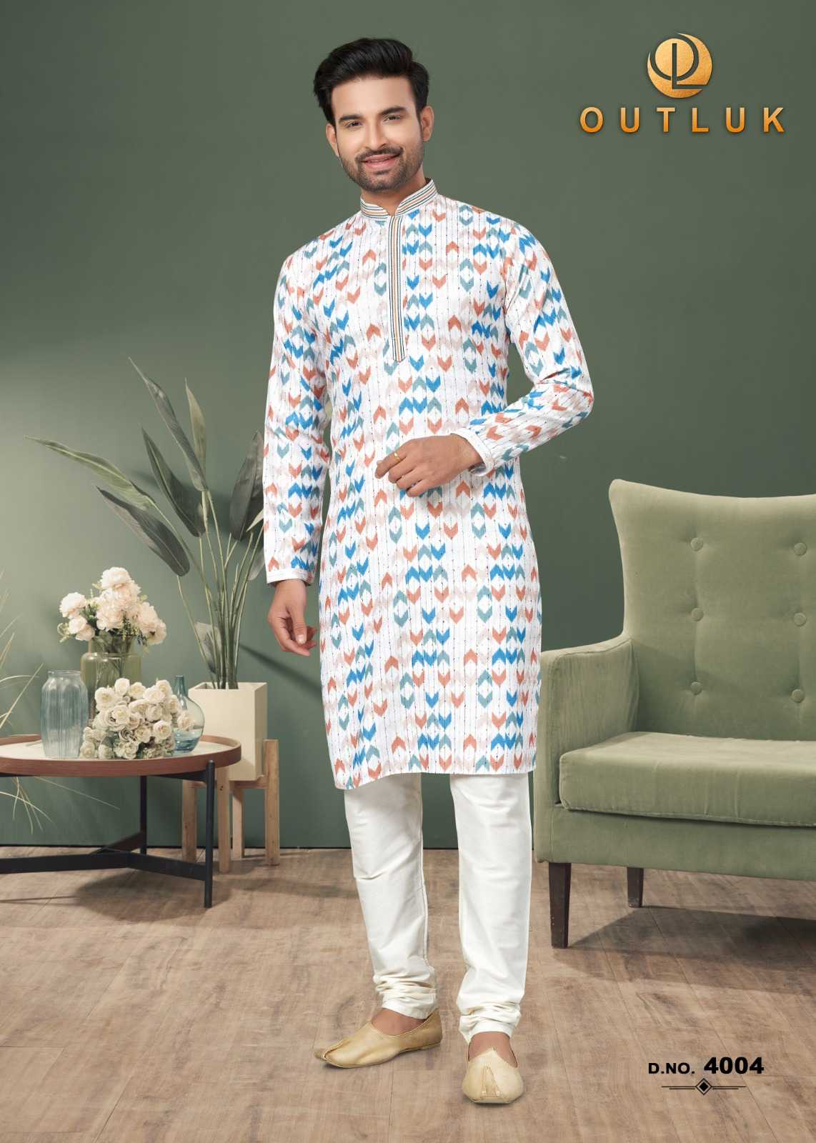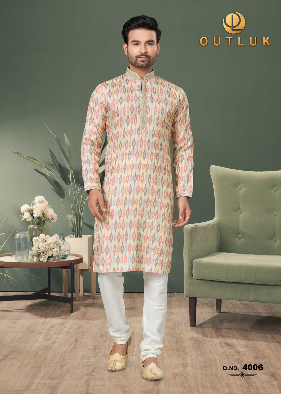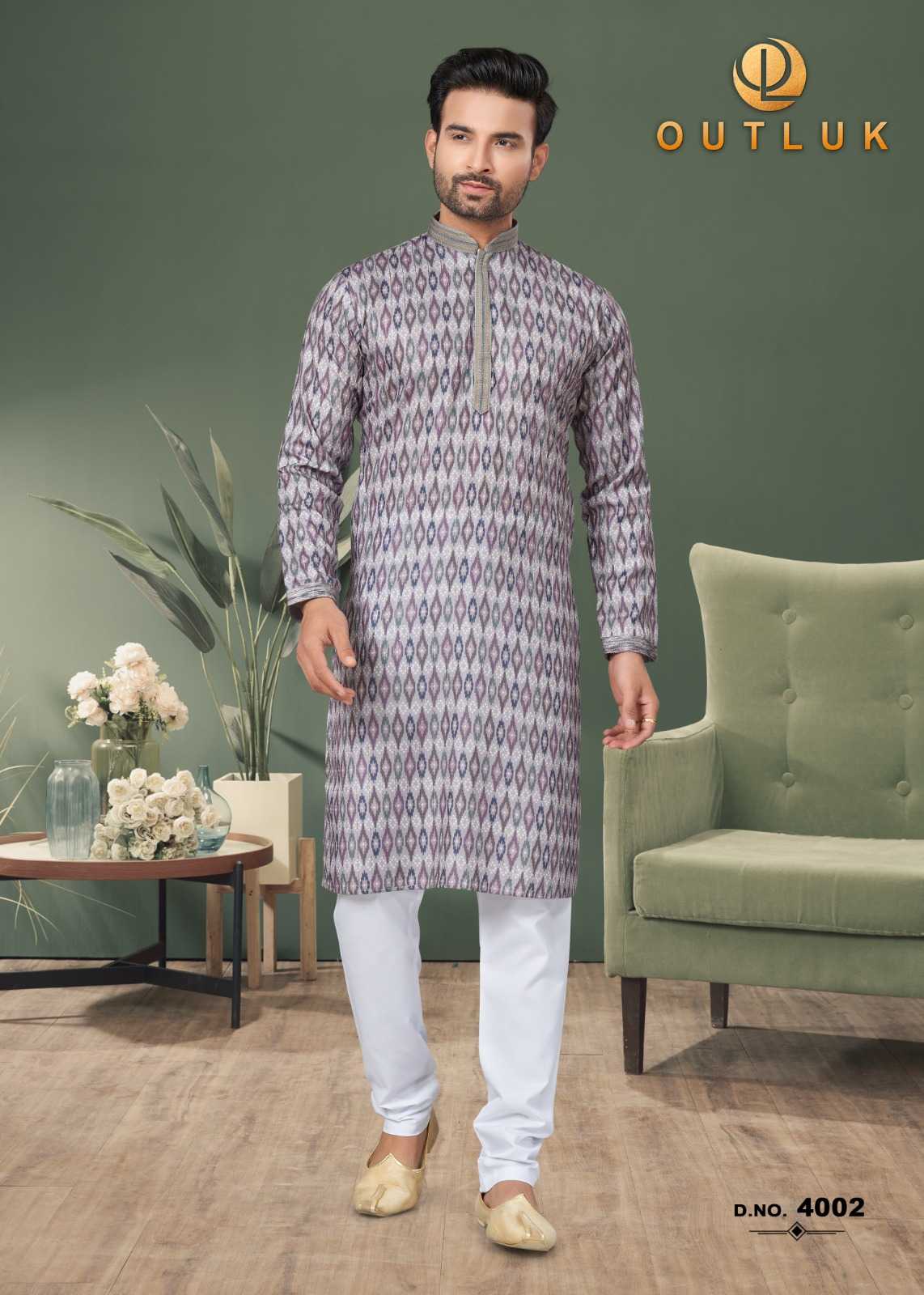 outluk wedding collection vol 4 readymade digital print cotton kurta with silk pajama for men