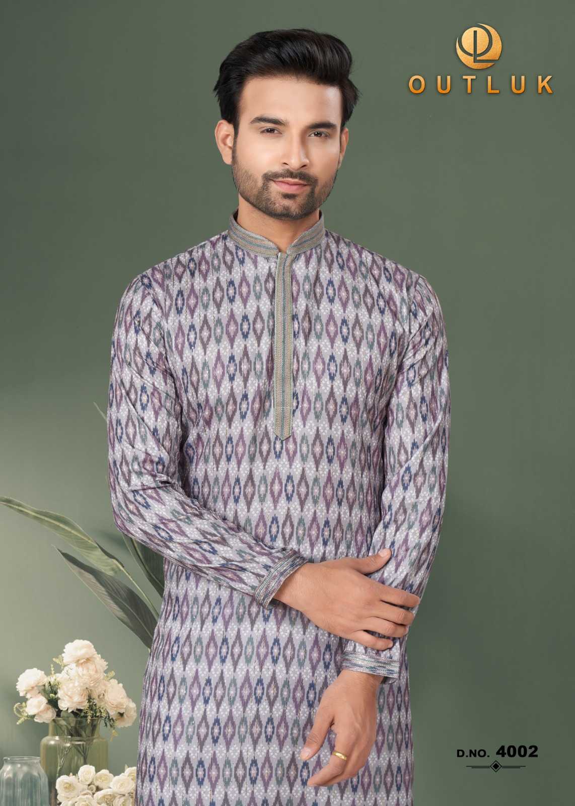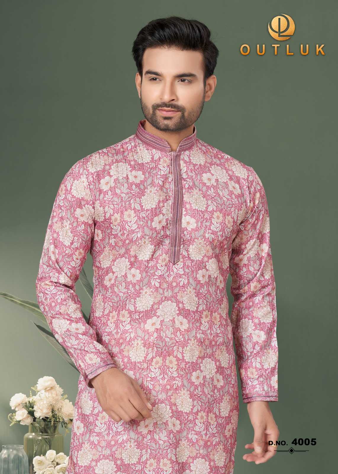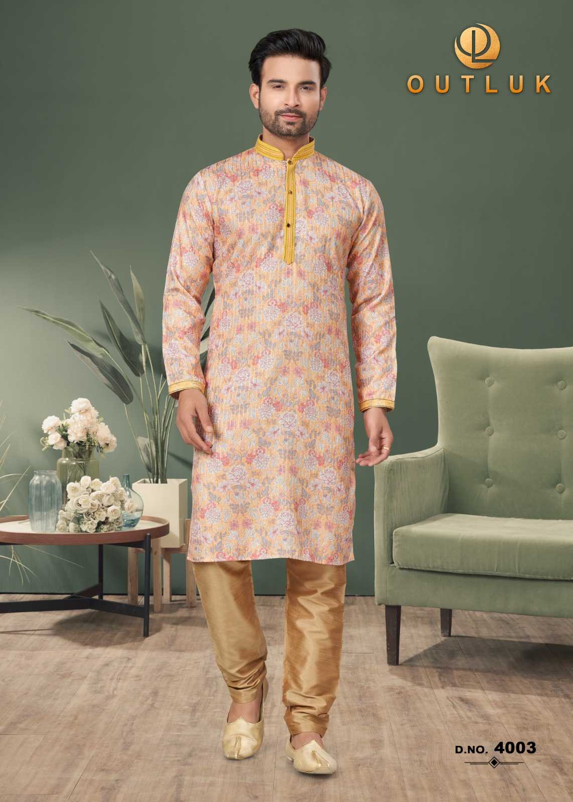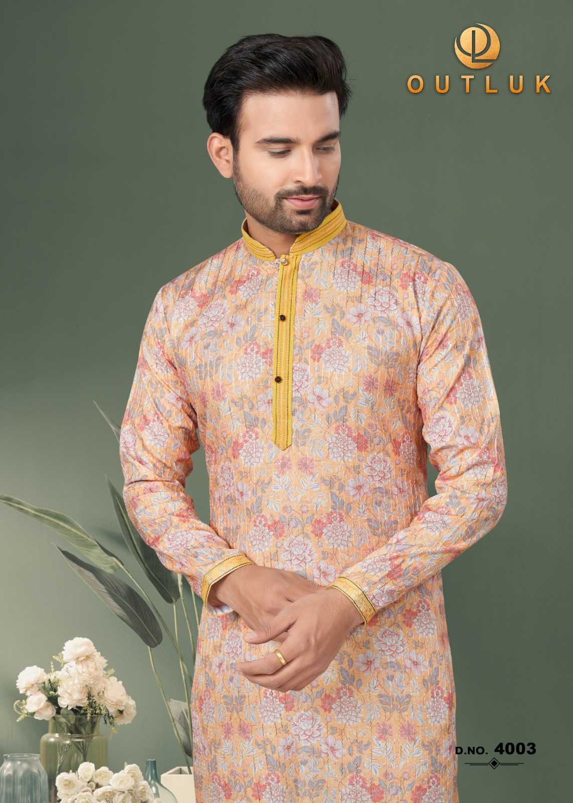 outluk wedding collection vol 4 readymade digital print cotton kurta with silk pajama for men