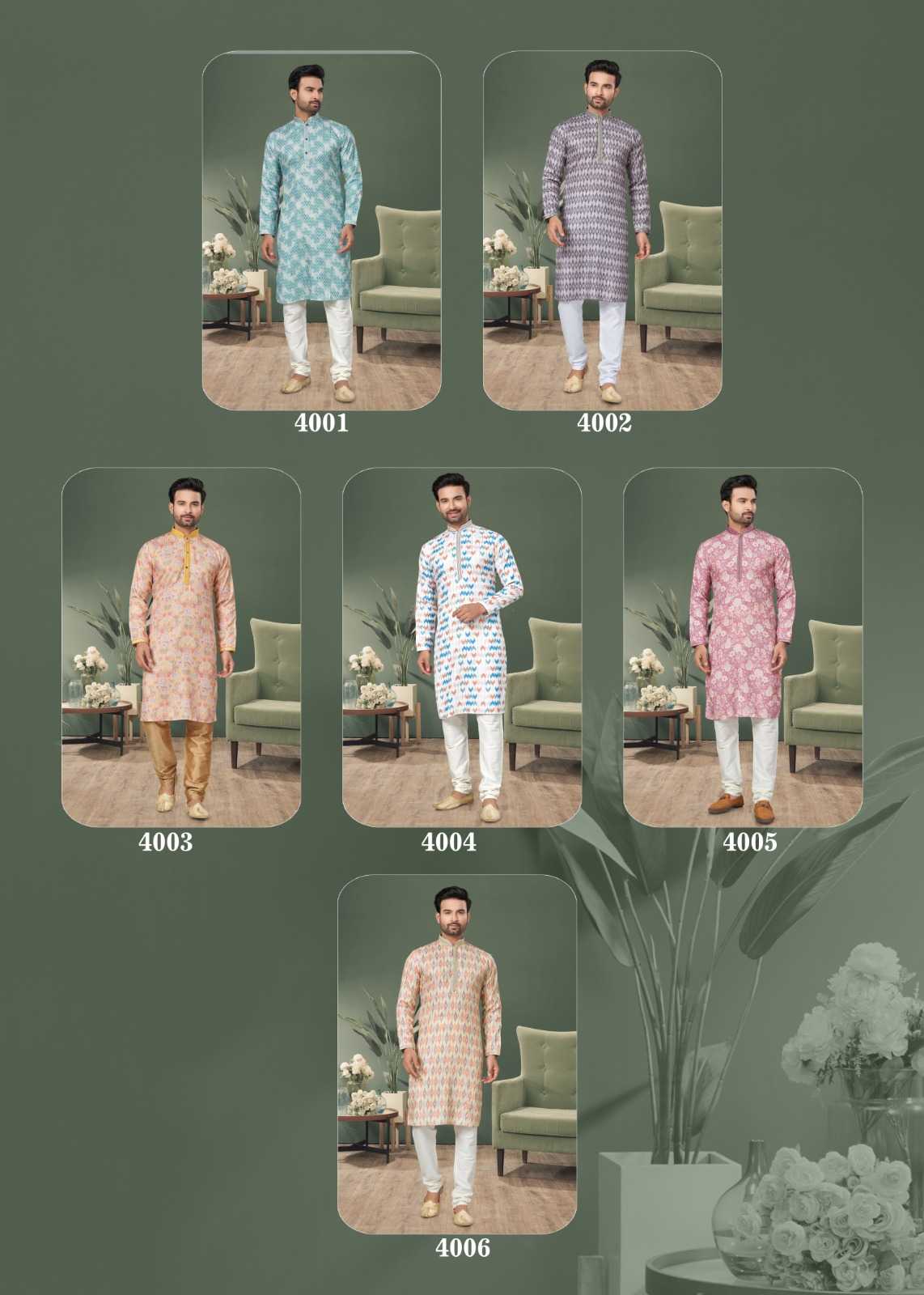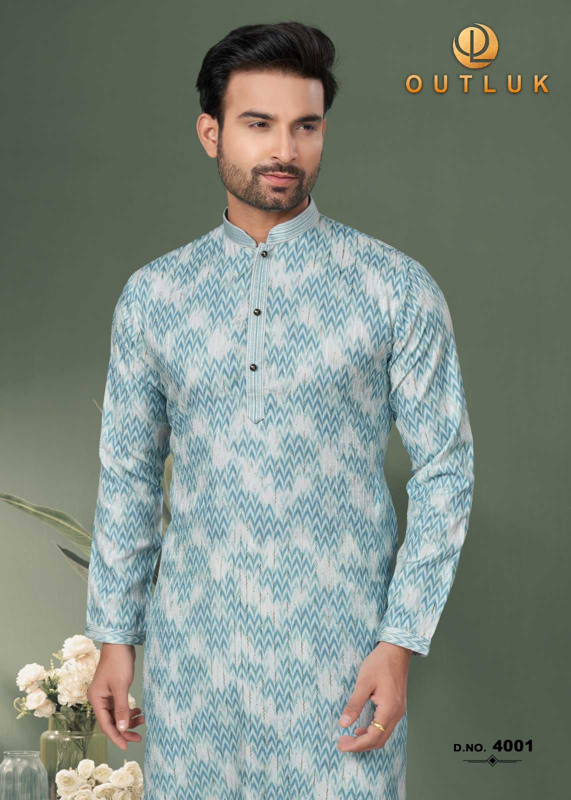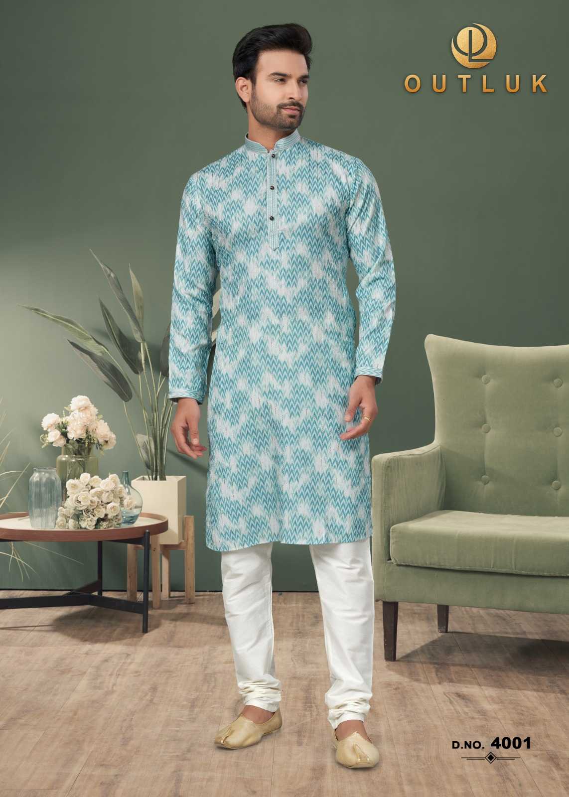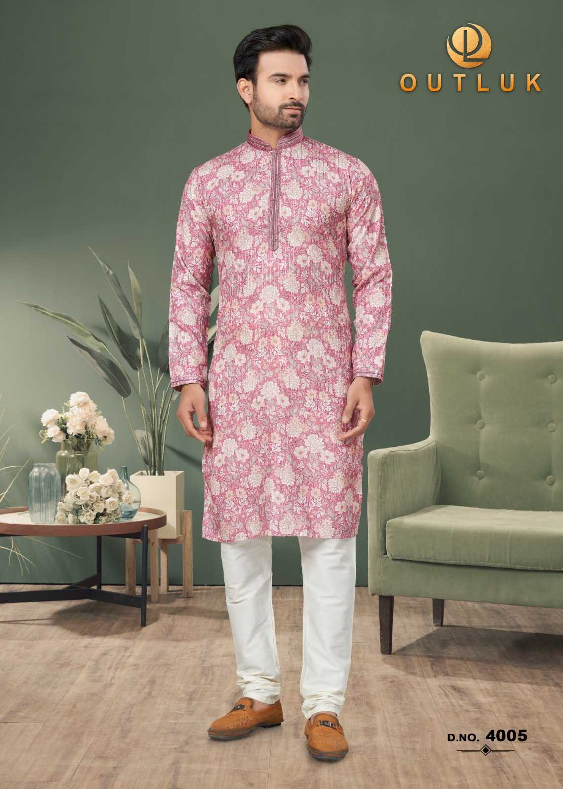 outluk wedding collection vol 4 readymade digital print cotton kurta with silk pajama for men