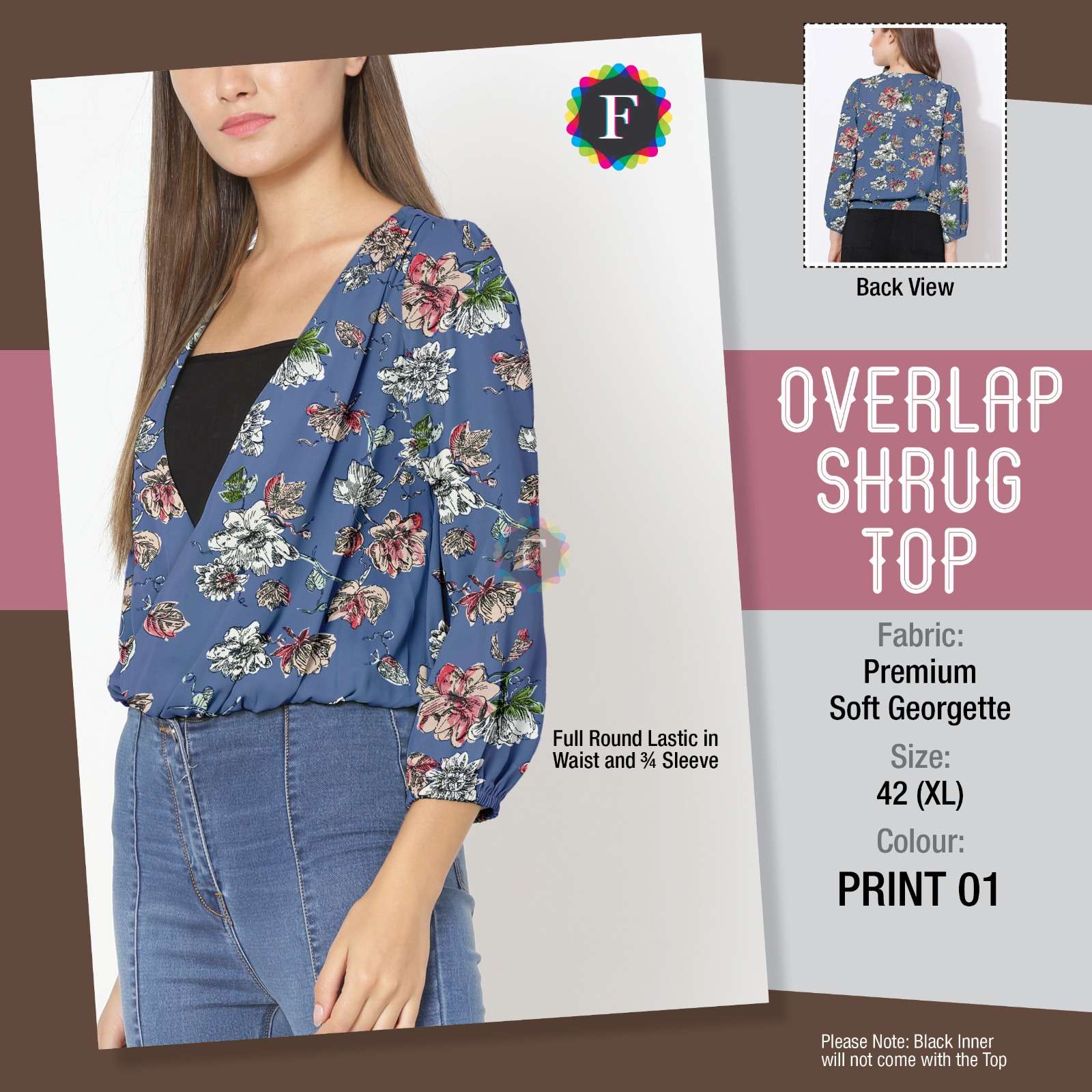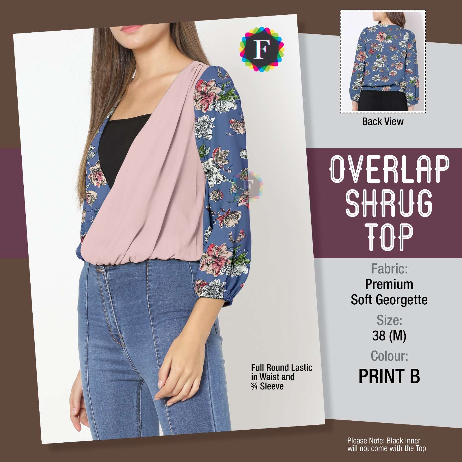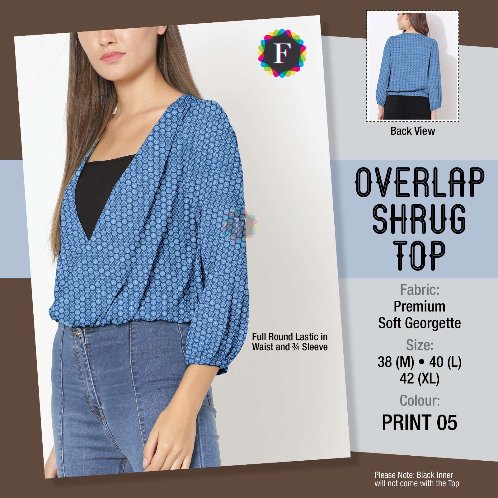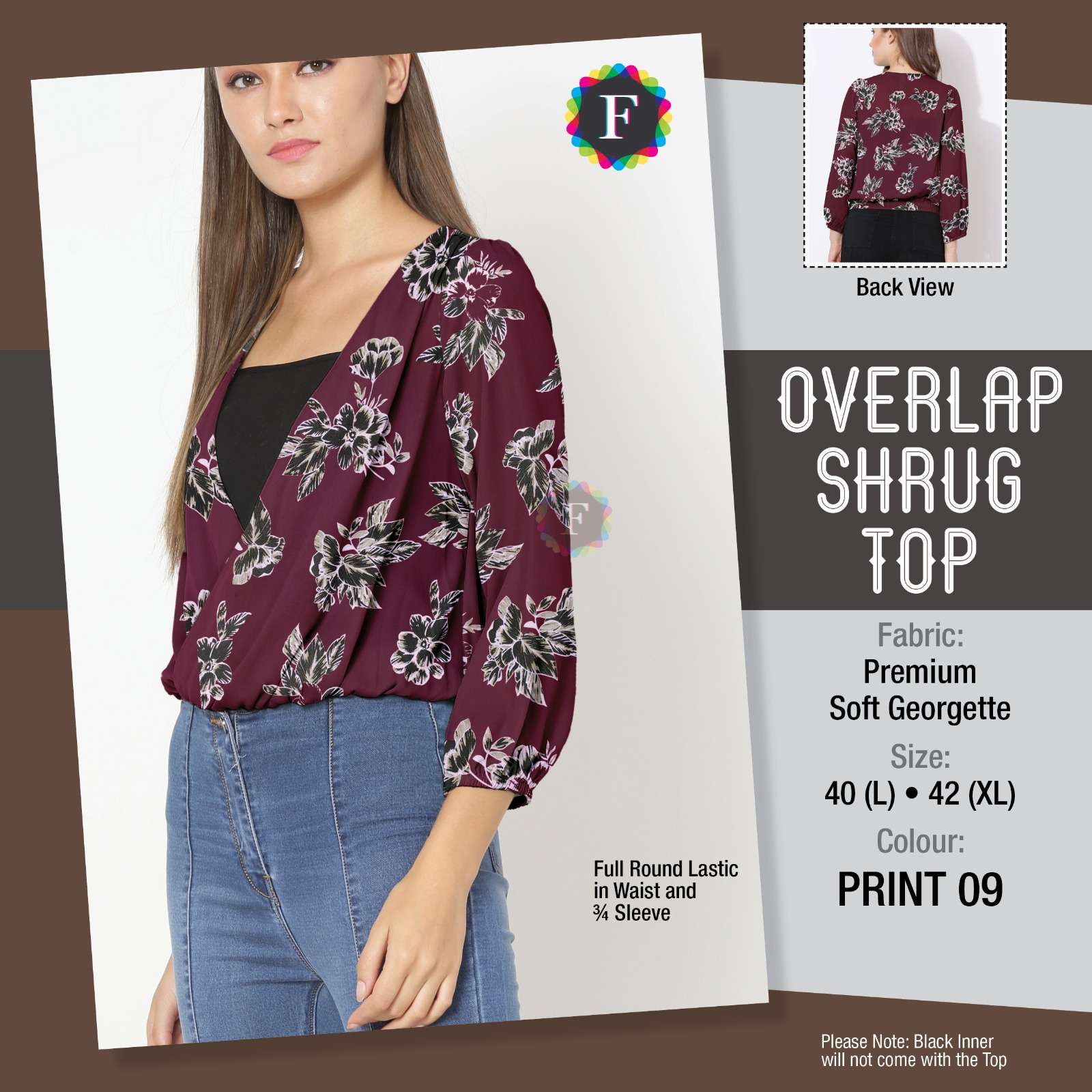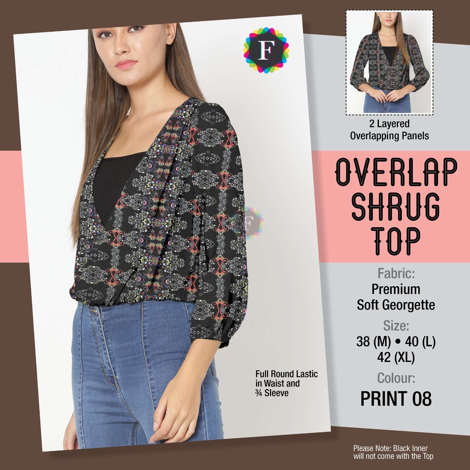 BOOK CATALOGUE OVERLAP SHRUG TOP ON KRISHNA CREATION. CALL ON +91-8866778727.