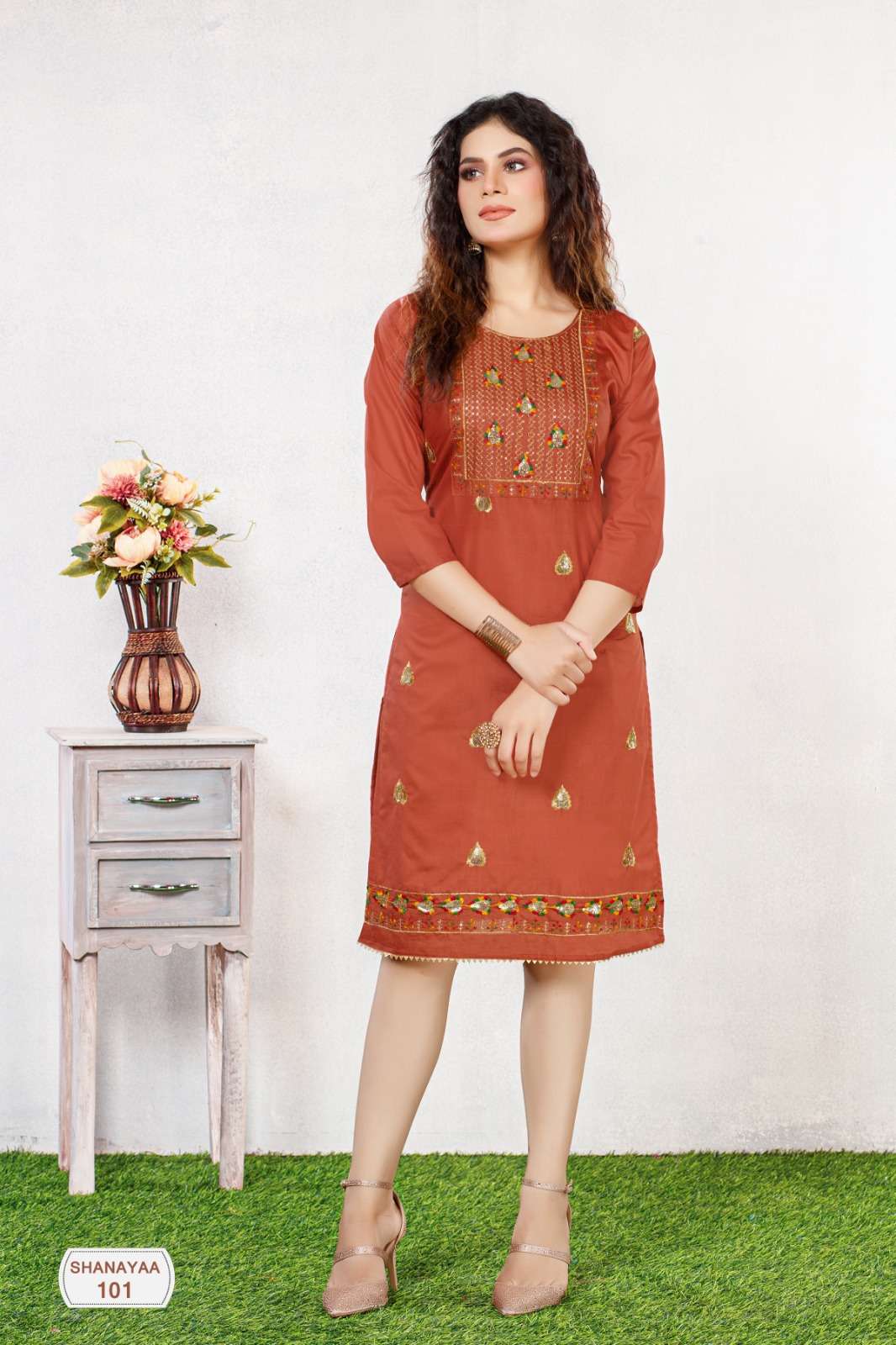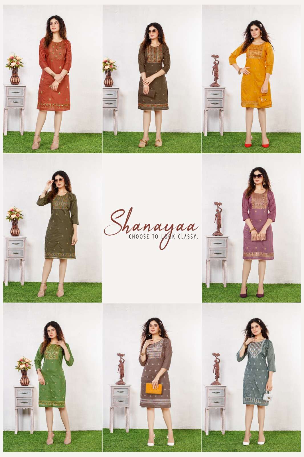 p r clothing shanayaa chanderi silk with malai crape full stitched kurtis