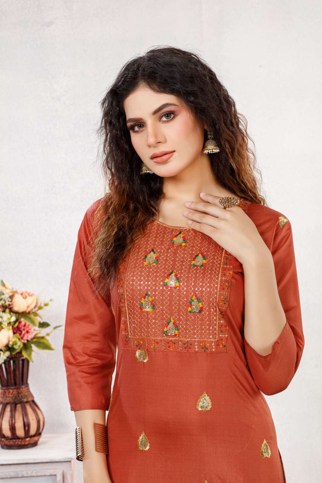 P R Clothing SHANAYAA Embroidery kurti Fabric: Heavy Chanderi silk with Malai crap full lining Work : Embroidery work Size: M, L, XL, XXL Length: 42” Price: 350/-rs + Gst *Delivery today * |