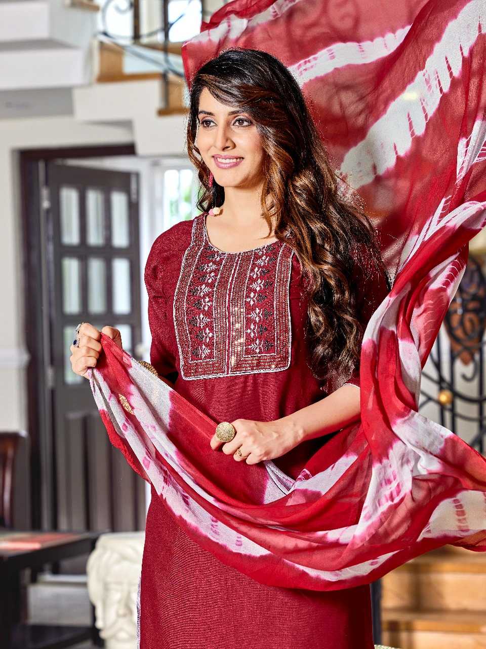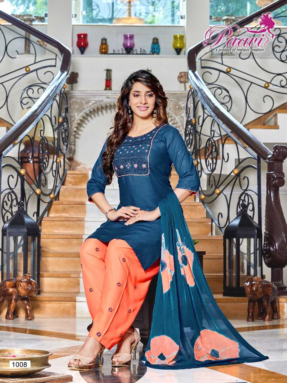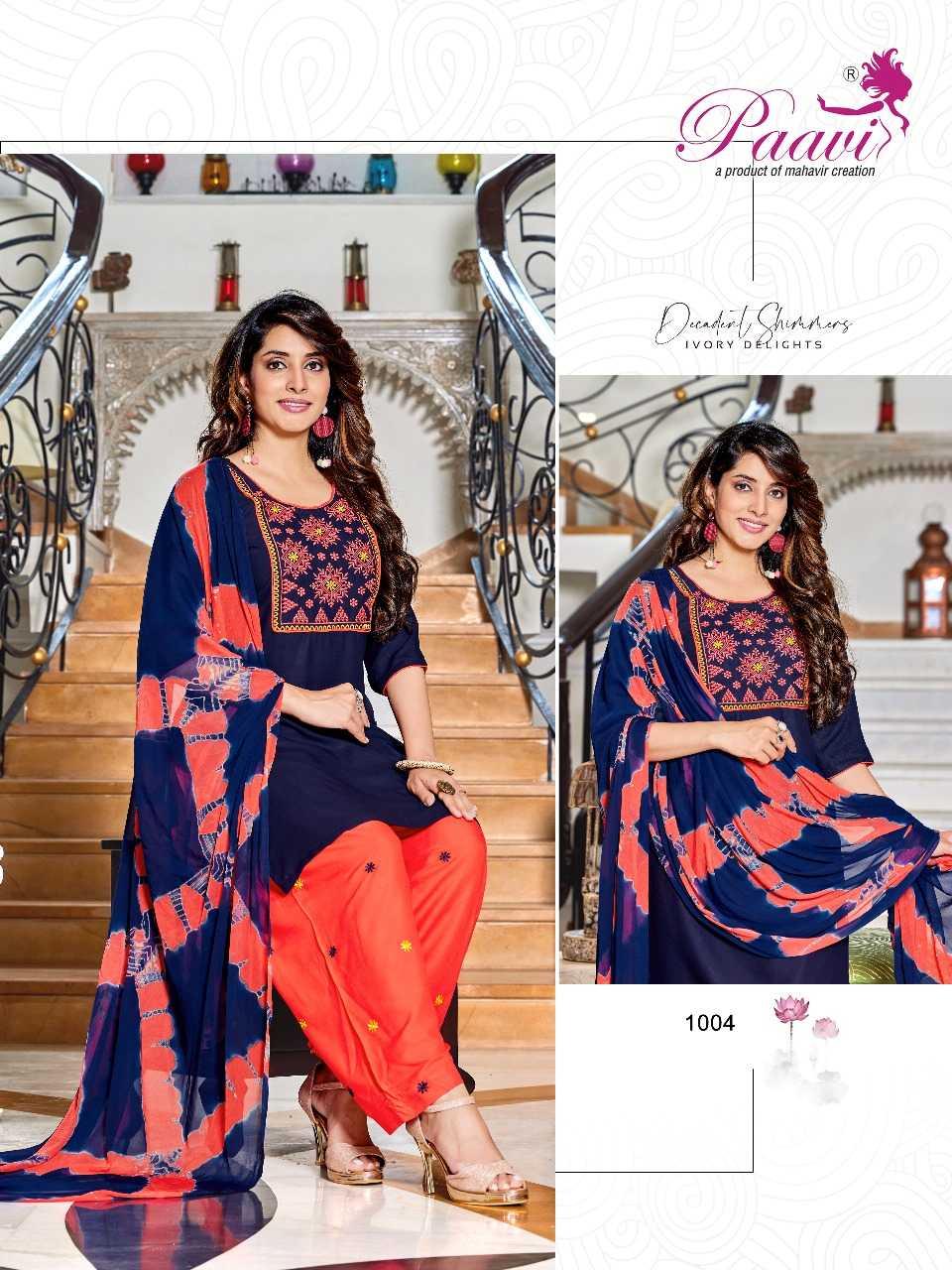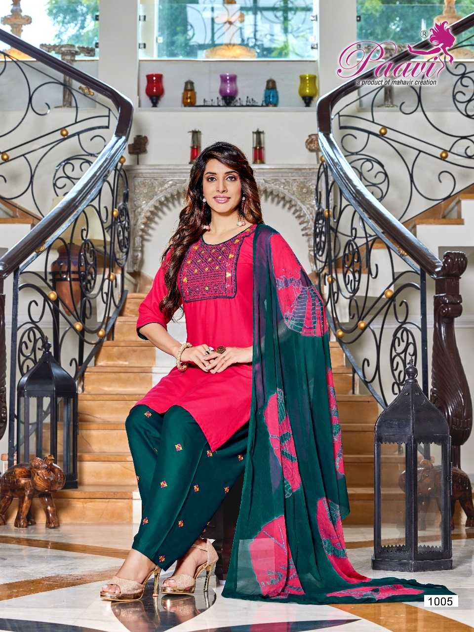 Dear Customers, Welcome to MAHAVIR CREATION KURTI 📕Catalogue:- Pankh Vol-5 👗CLOTH :- Top-riyon /patyala-reyon /dupatta nazmin saburi