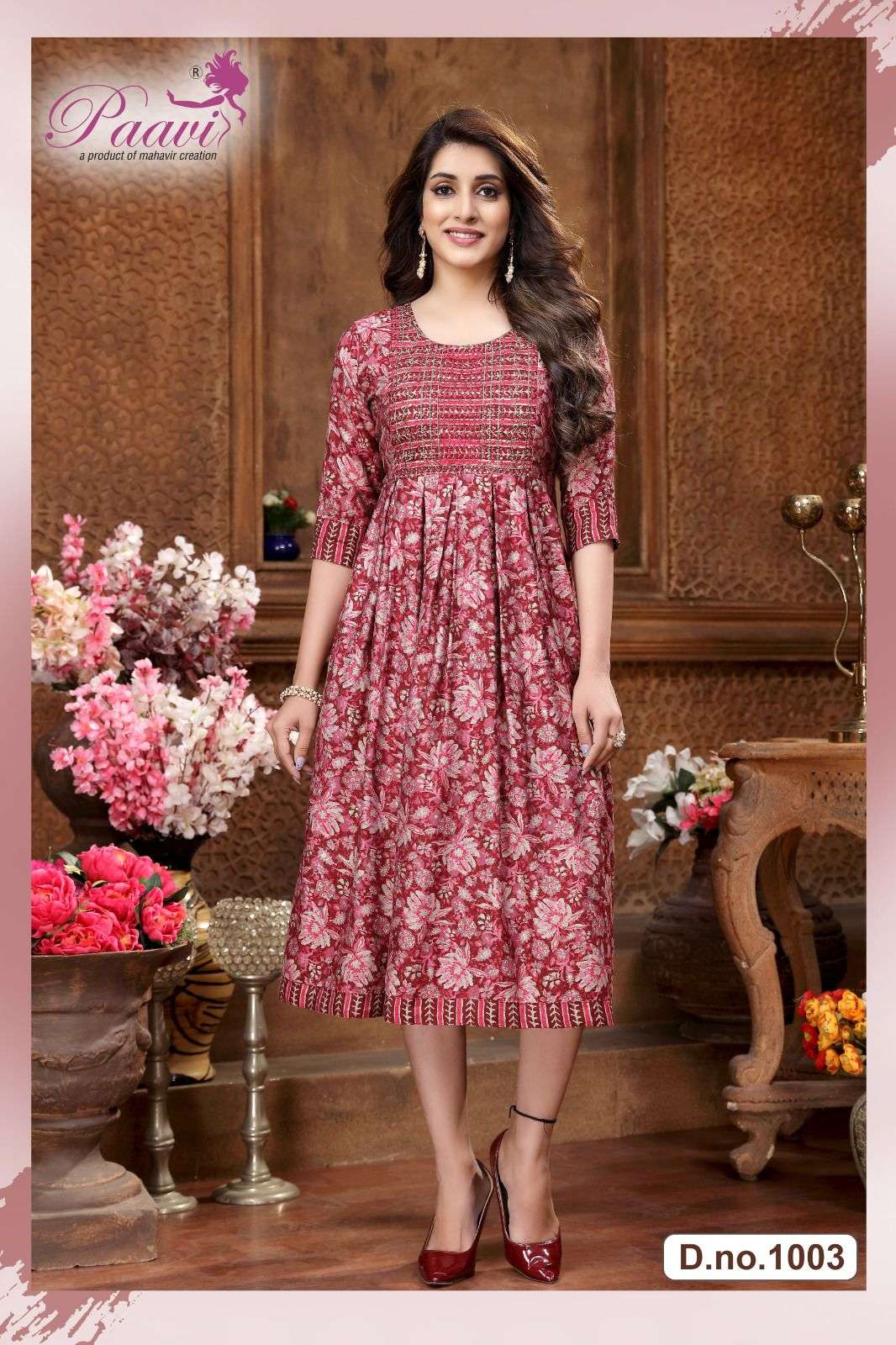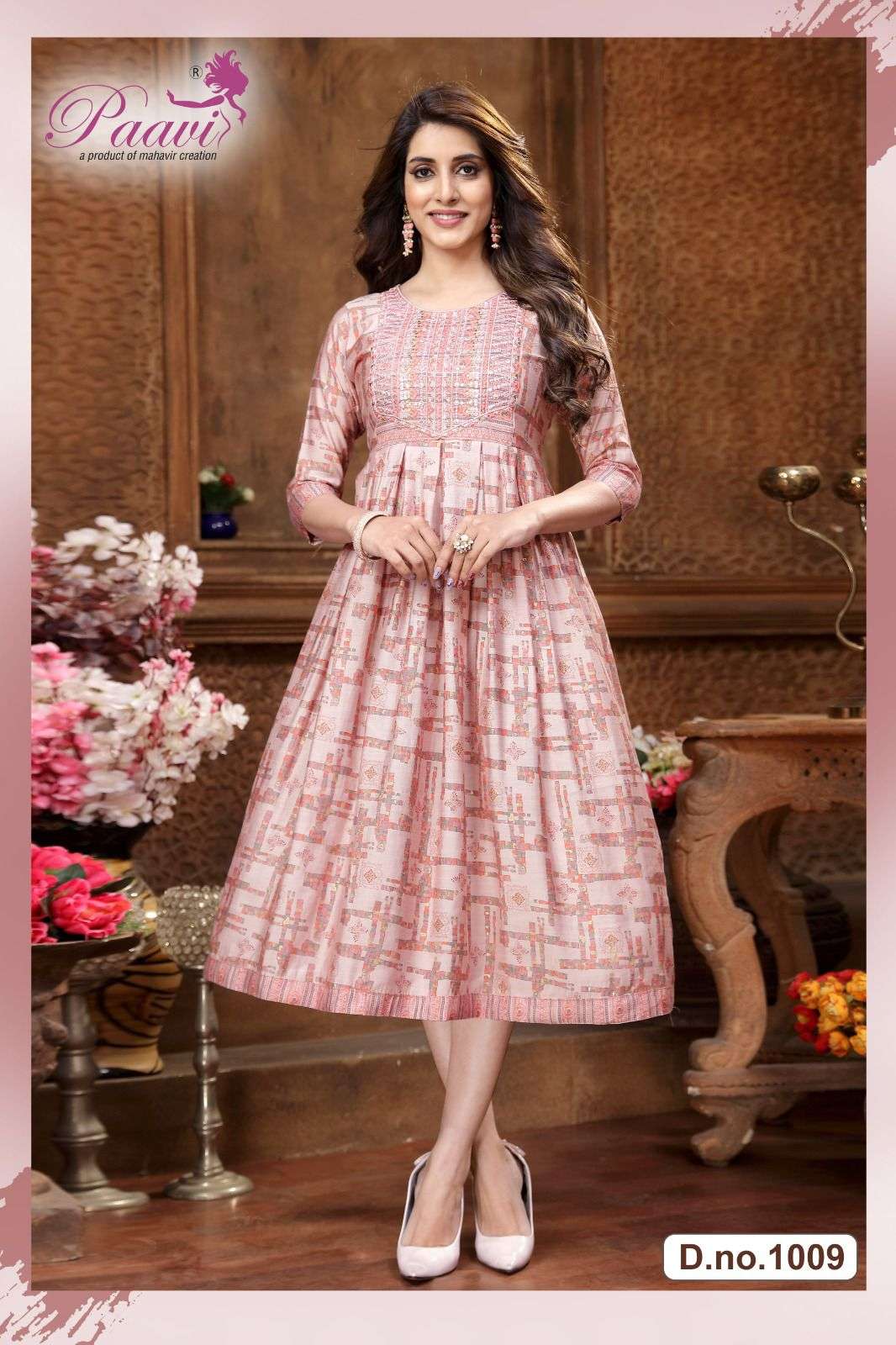 PAAVI RADHIKA top heavy modal print with Sequence embroidery KURTI CATALOG WHOLESALER BEST RATE