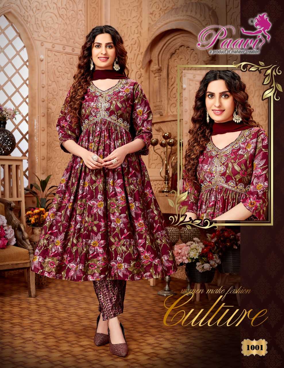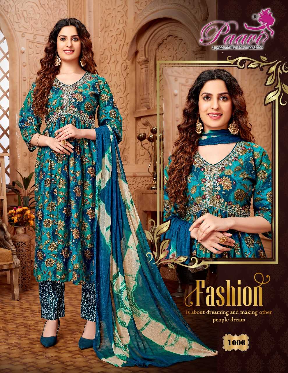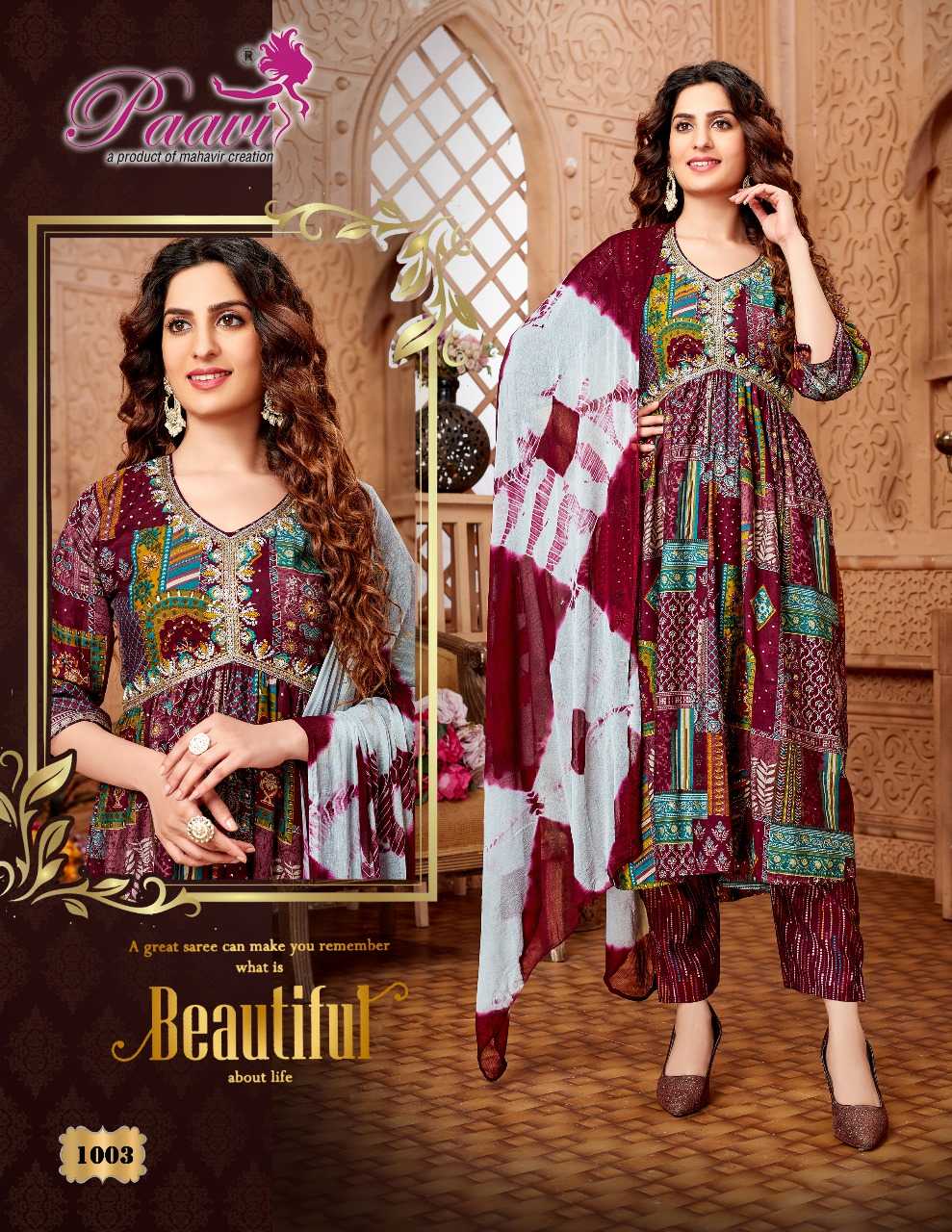 paavi zaara vol 3 beautiful fullstitch alia cut kurti pant dupatta set