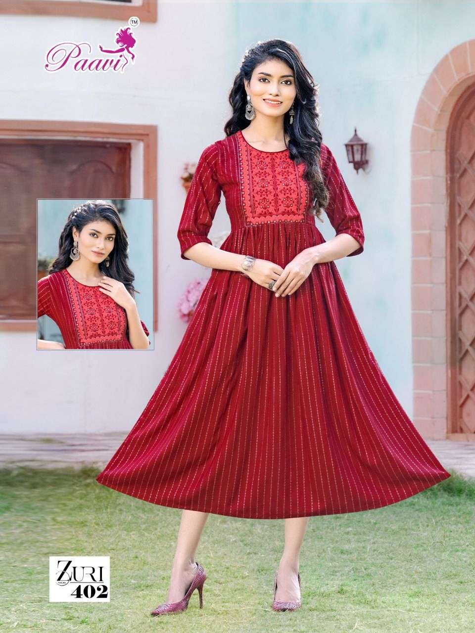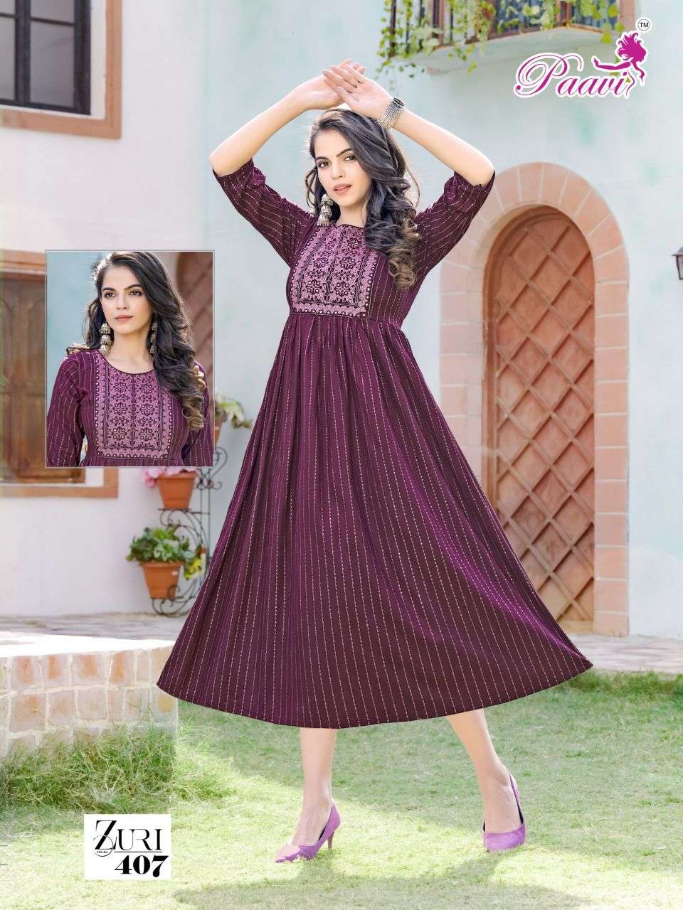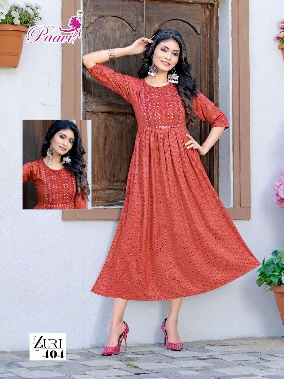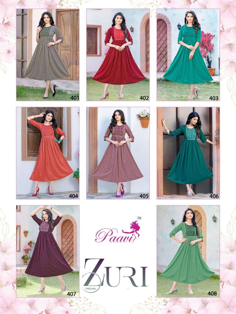 PAAVI ZURI VOL.4 Rayon JARI print KURTI CATALOG WHOLESALER BEST RATE