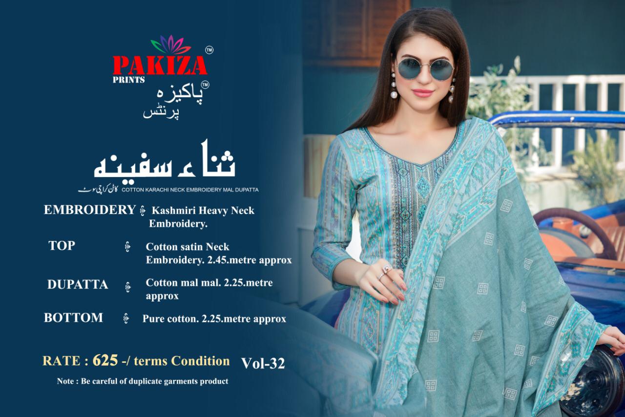 Pakiza Prints Vol 32 Cotton Satin Kashmiri Embroidery Dress Materials