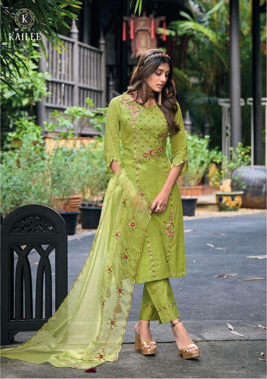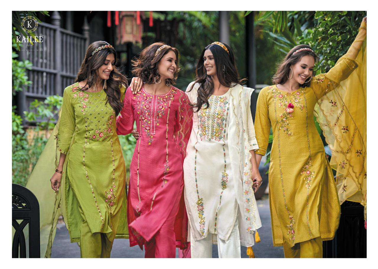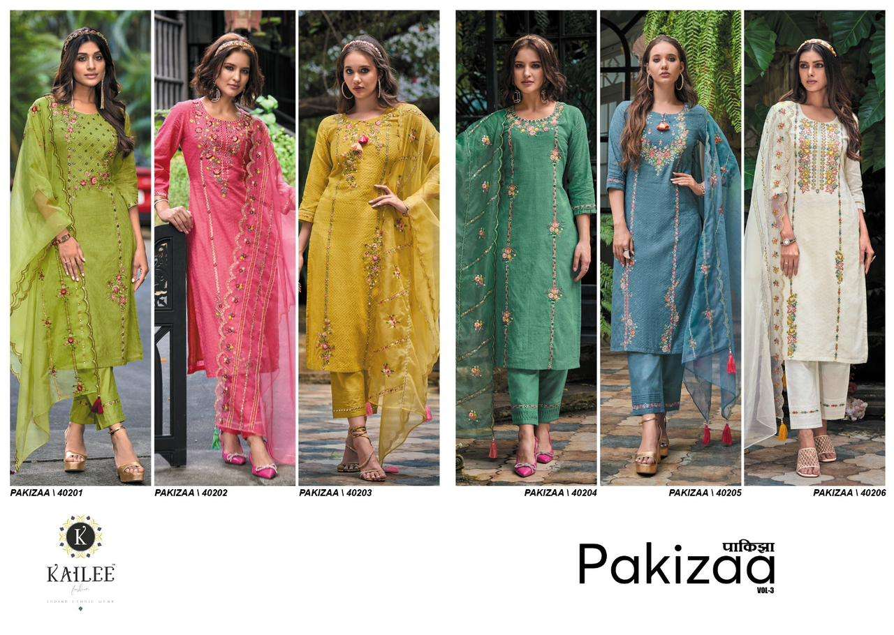 pakizaa vol 3 by kailee fashion fancy thread mirror work kurti with pant and dupatta