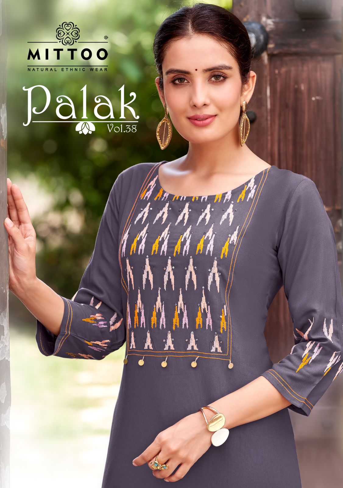 palak vol 38 by mittoo fancy embroidery work readymade long kurti