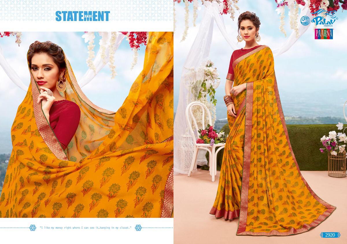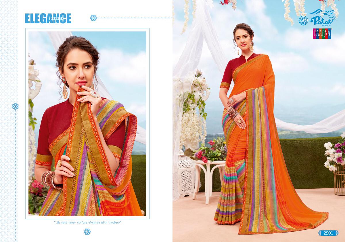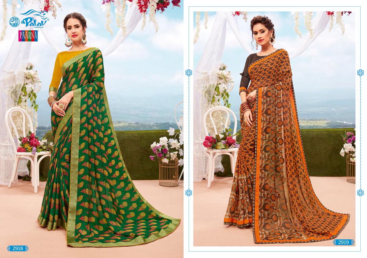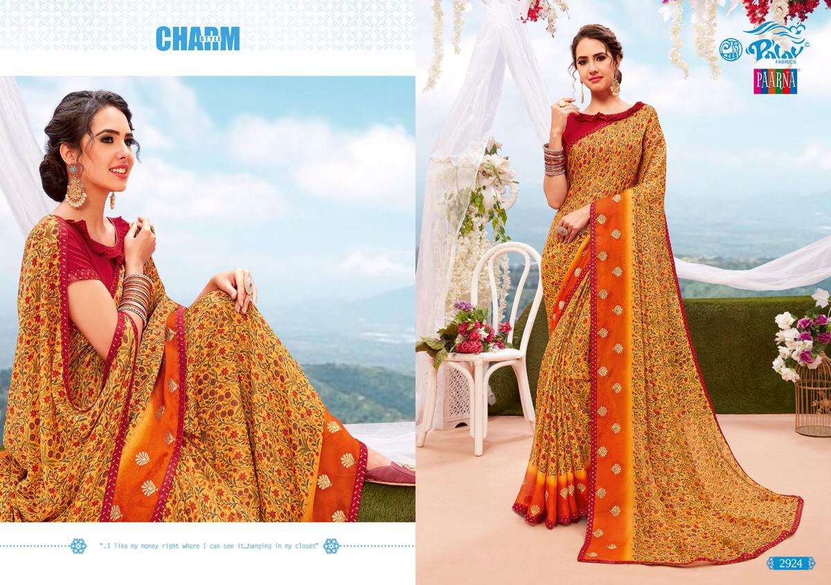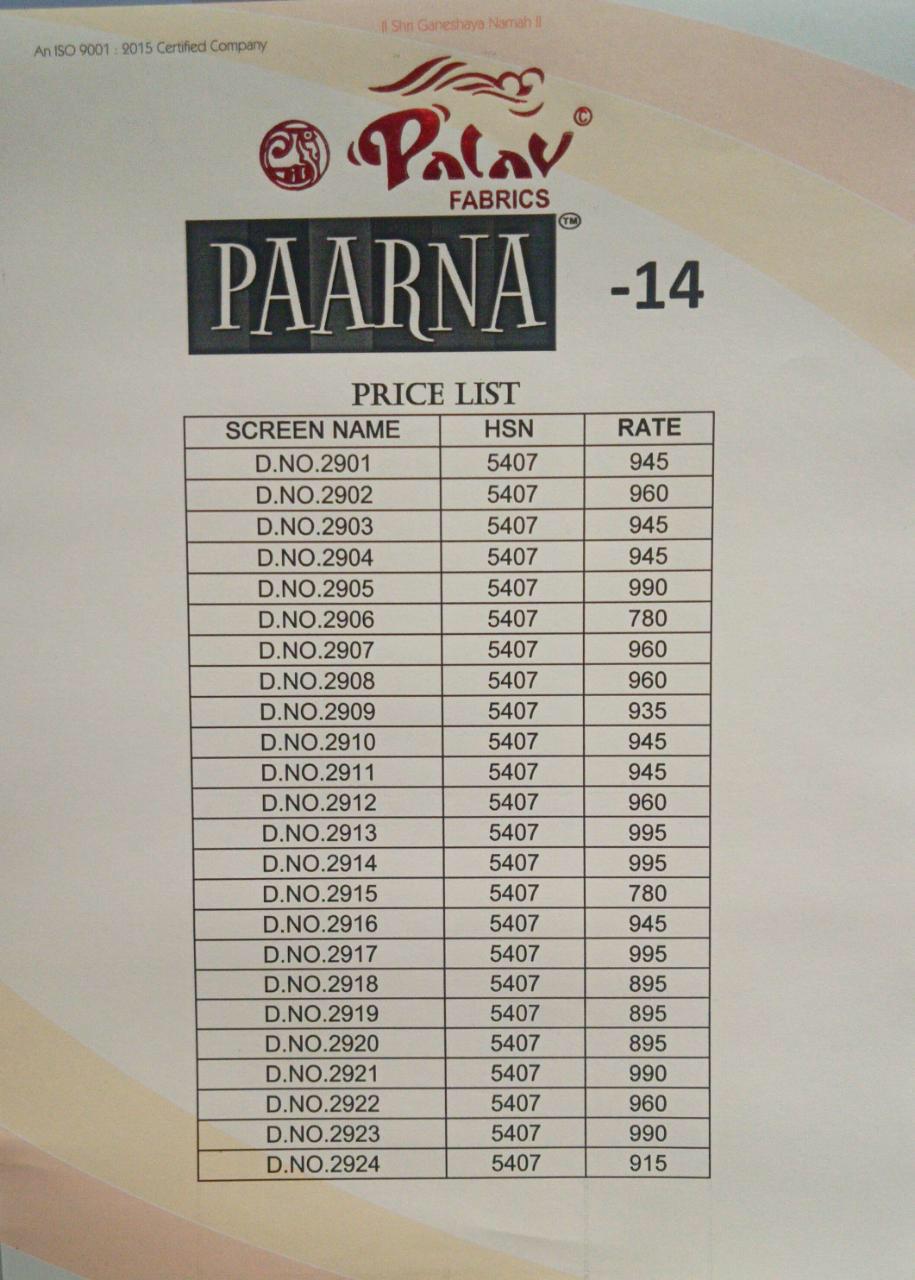 Brand - Palav . Type - Saree. Catlog Name - PAARNA -14. PRICE LIST HAS ATTACHED SET TO SET ONLY GST 5 Percent Extra. Delivery 3-4 days |