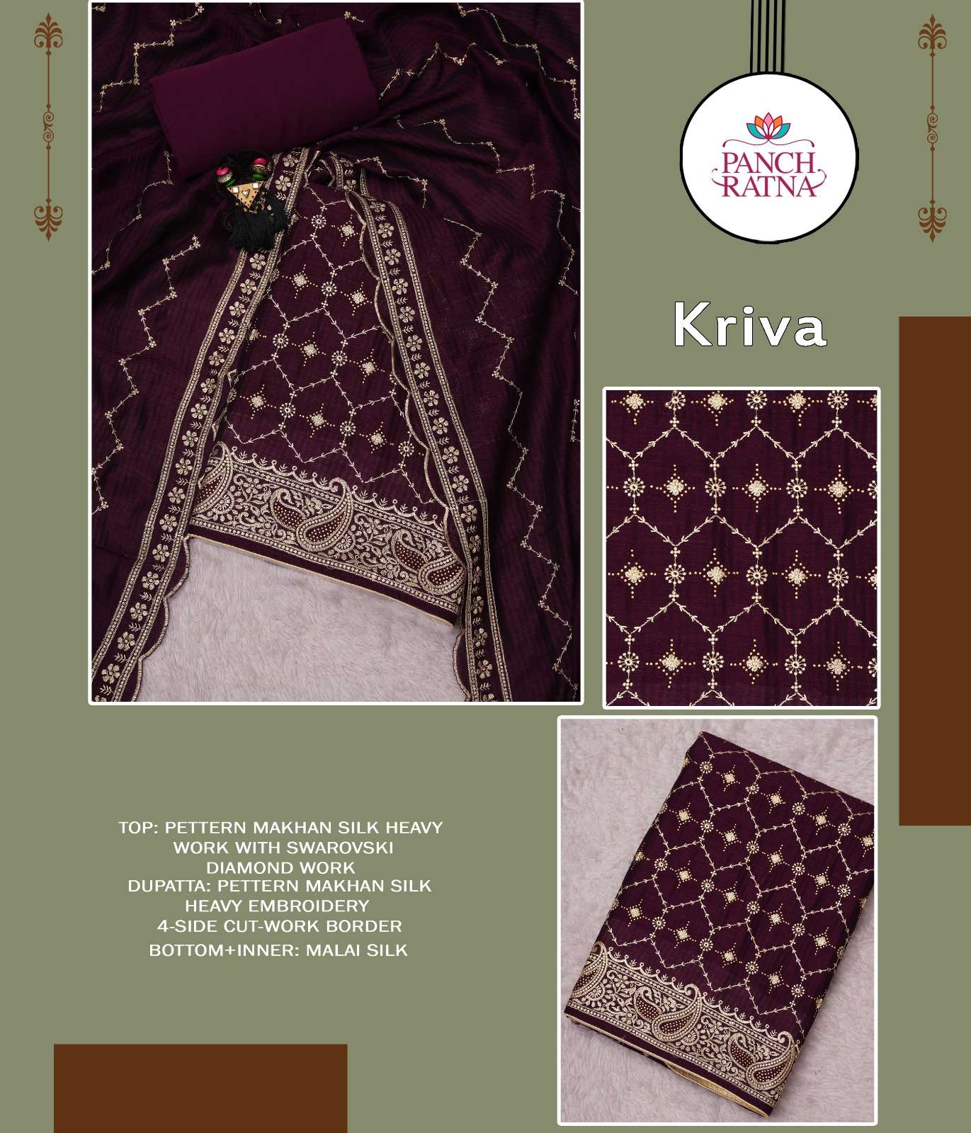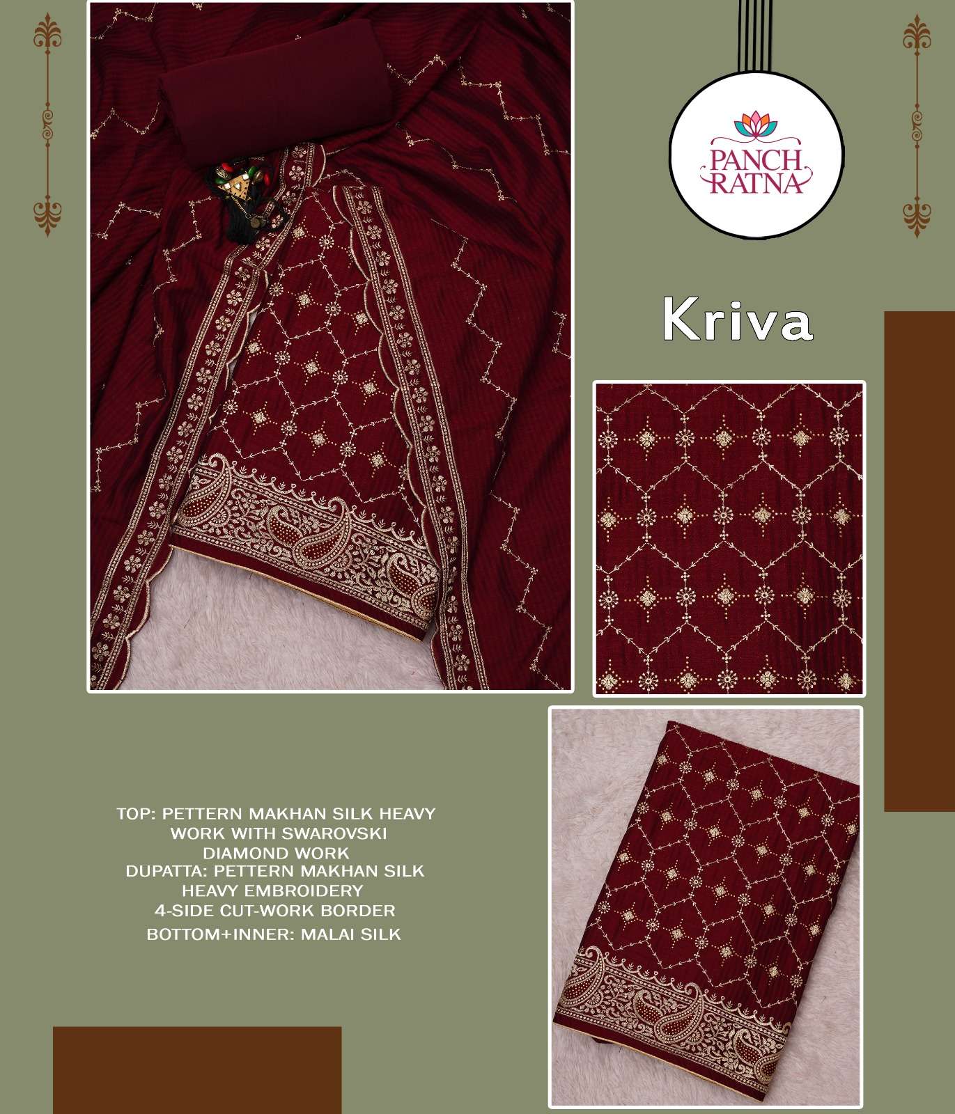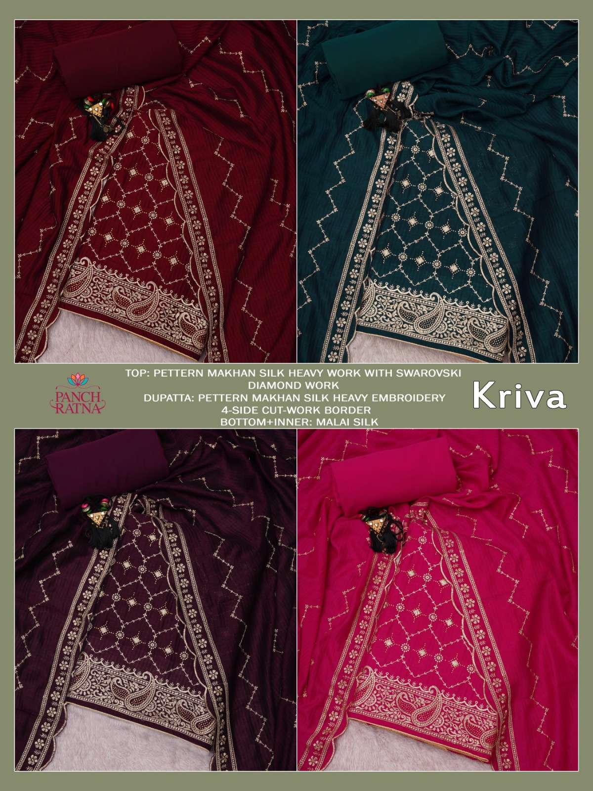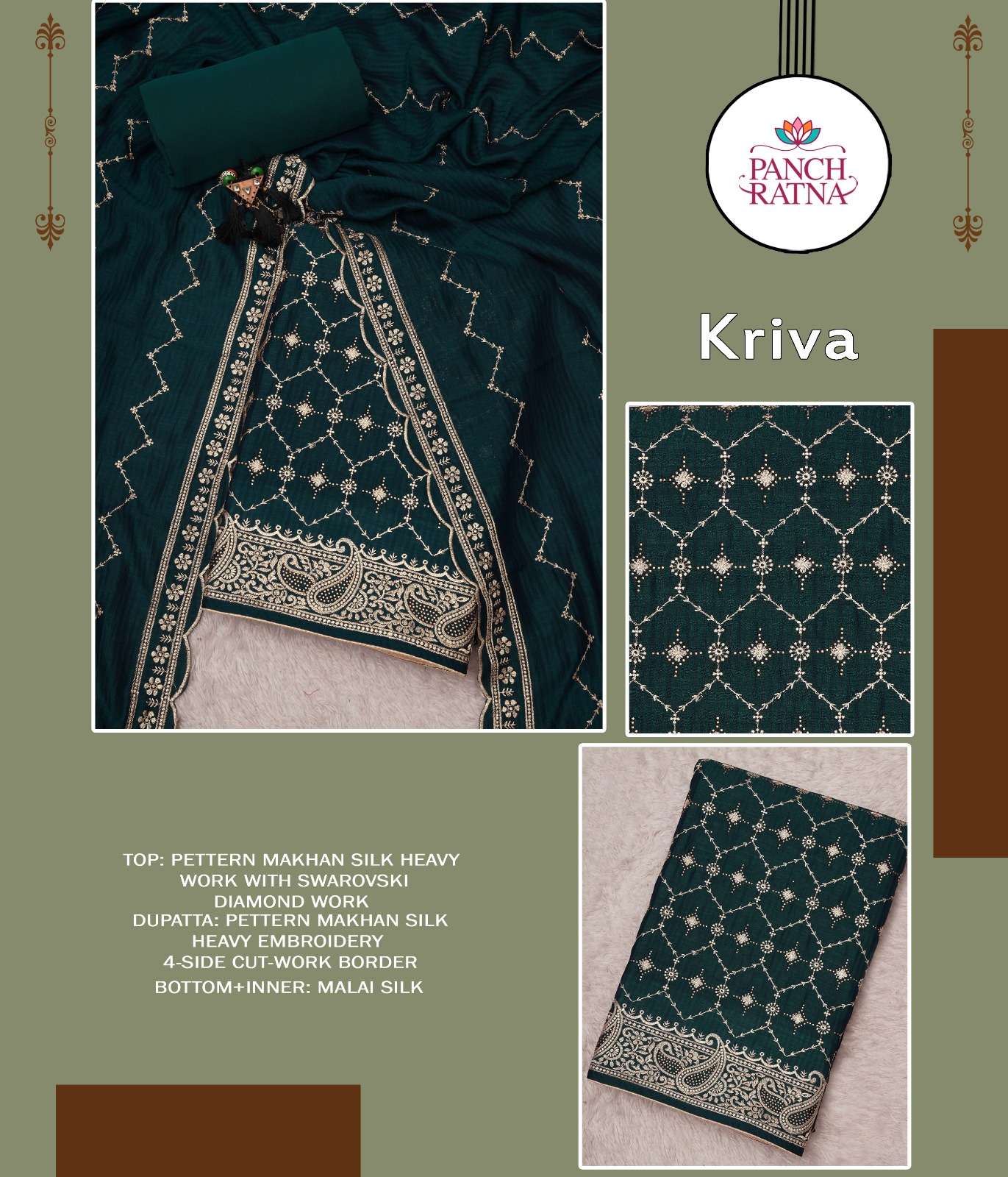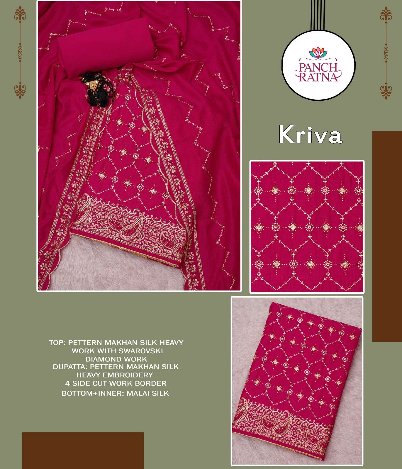 panch ratna present kriva designer work 3 peice dress material