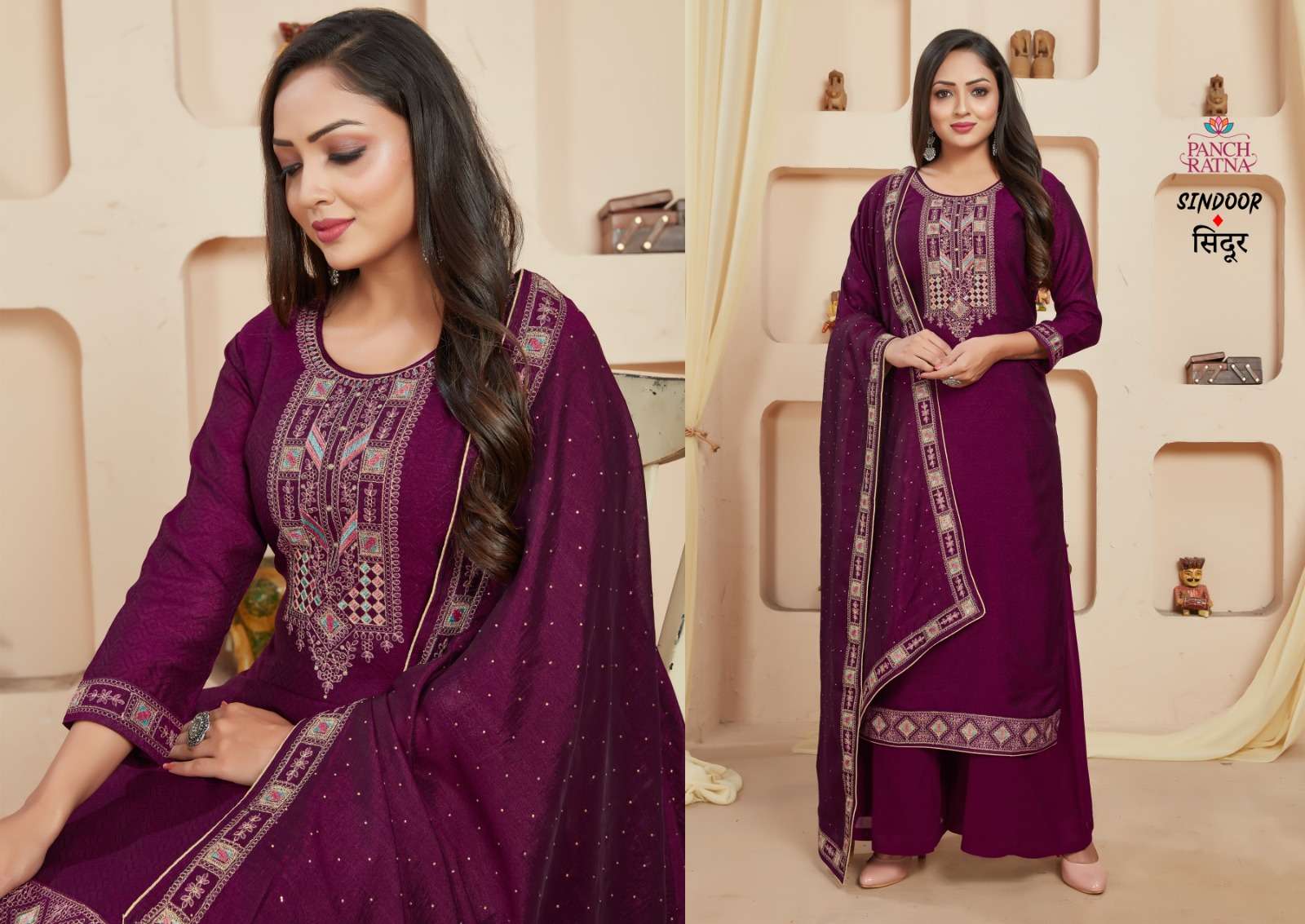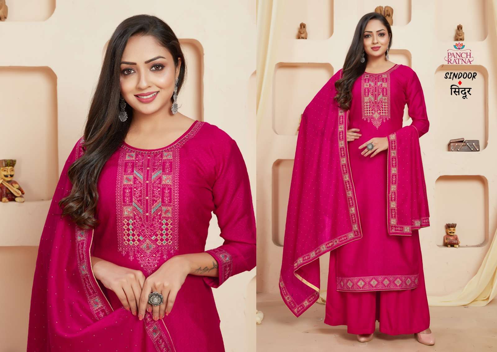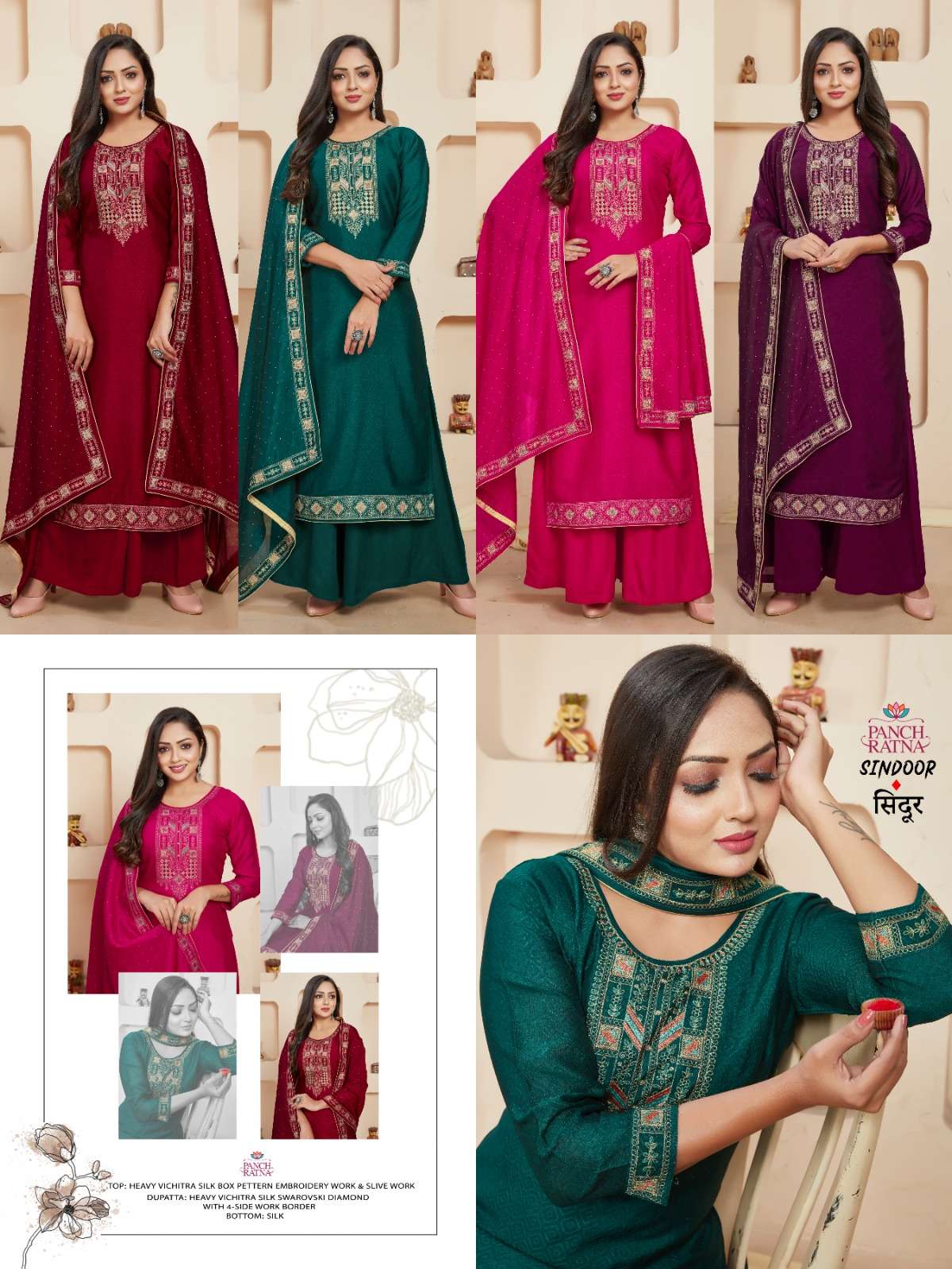 panch ratna present sindoor fancy vichitra silk 3 peice dress material