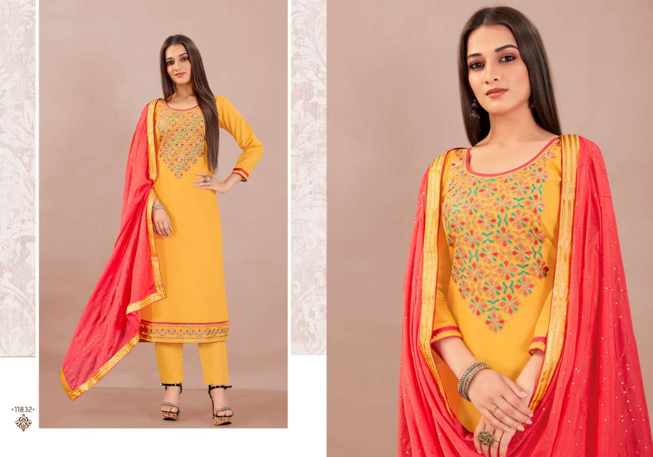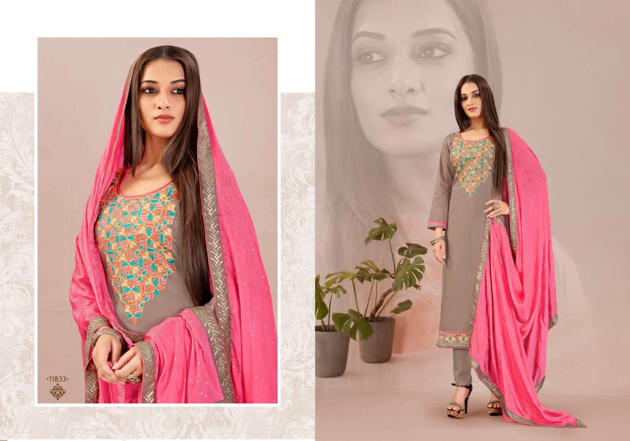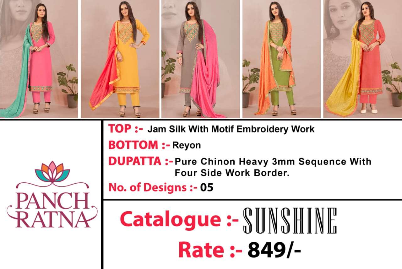 श्री गणेशाय नमः,🆕 Panch Ratna has launched 🔸 Fabric Details 🔸 ▪Top :- Jam Silk With Motif Embroidery Work ▪Bottom :- Reyon ▪Dupatta :- Pure Chinon Heavy 3mm Sequence With Four Side Work Border ▪️Rate :- 849/- |